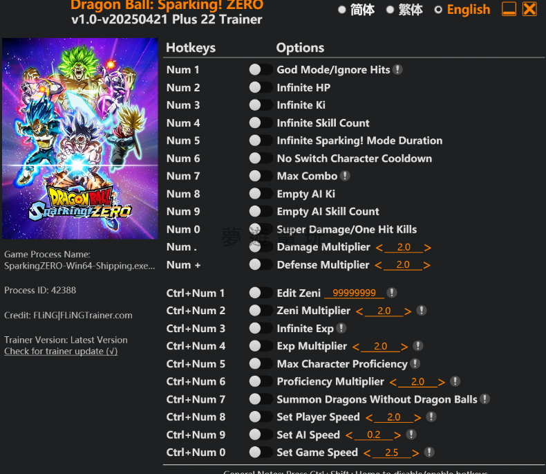 正文摘要:replyreload += ',' + 2384207; 《七龍珠電光炸裂!ZERO》修改器完整教學與免付費下載指南 Dragon Ball: Sparking! ZERO 風靈月影修改器介紹 想要在《七龍珠電光炸裂!ZERO》中體驗更多樂趣嗎?本篇教學將為您帶來最新的風靈月影修改器,支援遊戲版本 v1.0 至 v20250421+,讓您輕鬆解鎖遊戲中的各種強大功能!這款修改器提供了22種實用選項,從無敵模式到經驗值倍增,滿足各種遊戲需求。 修改器功能一覽 基本功能快捷鍵: - Num 1 – 上帝模式/無視傷害 - Num 2 – 無限血量 - Num 3 – 無限氣 - Num 4 – 無限技能次數 - Num 5 – 無限電光炸裂模式持續時間 - Num 6 – 取消切換角色冷卻時間 - Num 7 – 最大連擊 - Num 8 – 清空AI氣量 - Num 9 – 清空AI技能次數 - Num 0 – 超級傷害/一擊必殺 - Num . – 傷害倍數調整 - Num + – 防禦倍數調整 進階功能快捷鍵: - Ctrl+Num 1 – 編輯戰鬥幣(Zeni) - Ctrl+Num 2 – 戰鬥幣倍數調整 - Ctrl+Num 3 – 無限經驗值 - Ctrl+Num 4 – 經驗值倍數調整 - Ctrl+Num 5 – 最大角色熟練度 - Ctrl+Num 6 – 熟練度倍數調整 - Ctrl+Num 7 – 無需龍珠即可召喚神龍 - Ctrl+Num 8 – 設定玩家速度 - Ctrl+Num 9 – 設定AI速度 - Ctrl+Num 0 – 設定遊戲速度 修改器下載與安裝教學 1. 點擊下方連結下載最新版本的風靈月影修改器: 所有站內附件皆會附上安全掃描報告請會員查看純淨度百分比後判斷使用(adsbygoogle = window.adsbygoogle || []).push({});相關檔案須知:取得檔案前,請先詳細閱讀文章內容避免不必要錯誤與誤會發生。也可多參考文章討論樓層內容了解附件檔案相關討論資訊。 【此文章部分內容隱藏中】 解除隱藏說明教學點擊下方 繼續閱讀文章 後請仔細觀看文章內容 並依照指示進行下一步最後完成解除隱藏後系統會回到此文章自動顯示隱藏內容~繼續閱讀 2. 下載完成後,將修改器檔案解壓縮到您喜歡的資料夾中。 3. 在開啟修改器前,請先啟動《七龍珠電光炸裂!ZERO》遊戲。 4. 遊戲啟動後,再執行「Dragon Ball Sparking ZERO v1.0-v20250421 Plus 22 Trainer.exe」檔案。 5. 修改器成功連接遊戲後,您就可以使用上述快捷鍵來啟用各種功能了! 使用技巧與注意事項 - 建議在單人模式中使用修改器,避免在多人連線模式中使用,以免影響遊戲體驗或違反遊戲規則。 - 使用「上帝模式」時,您將不會受到任何傷害,適合新手玩家練習操作。 - 「無限氣」功能可以讓您連續釋放強力技能,體驗角色的全部招式。 - 「無需龍珠即可召喚神龍」功能非常適合想要快速體驗遊戲劇情的玩家。 - 使用修改器前,建議先備份您的遊戲存檔,以防萬一。 常見問題解答 問:修改器支援哪些遊戲版本? 答:本修改器支援《七龍珠電光炸裂!ZERO》v1.0 至 v20250421+ 版本,後續版本可能需要更新修改器。 問:使用修改器會被官方封號嗎? 答:建議僅在單人模式中使用修改器,在多人連線模式中使用可能會導致帳號被封禁。 問:為什麼我的修改器無法正常運作? 答:請確保您已以管理員身分執行修改器,並且遊戲版本與修改器相容。某些防毒軟體可能會阻止修改器運行,請嘗試暫時關閉防毒軟體或將修改器添加到例外清單中。 問:使用修改器後,我的遊戲存檔會受到影響嗎? 答:部分修改功能可能會影響遊戲存檔,建議在使用前先備份您的存檔資料。 問:如何關閉已啟用的修改功能? 答:只需再次按下相應的快捷鍵即可關閉已啟用的功能。例如,如果您已啟用「Num 1」的上帝模式,再次按下「Num 1」即可關閉此功能。 《七龍珠電光炸裂!ZERO》風靈月影修改器為您提供了豐富的遊戲體驗,讓您能夠以不同的方式享受這款精彩的格鬥遊戲。無論您是想要輕鬆通關、體驗全部角色技能,還是單純想要在遊戲中無拘無束地遊玩,這款修改器都能滿足您的需求。 記得遵循遊戲規則,在合適的場合使用修改器,祝您遊戲愉快! 👉 GM後台版 遊戲 推薦 ⬇️⬇️⬇️ 快速玩各種二次元動漫手遊app replyreload += ',' + 2384207; |