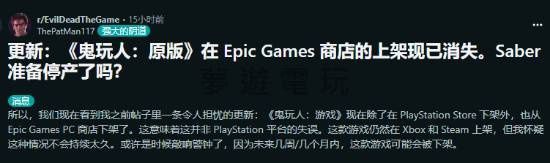 正文摘要:《鬼玩人:遊戲》悄然下架,PS Store與Epic Games Store首當其衝 根據Comicbook的觀察,有眼尖的玩家發現,《鬼玩人:遊戲》已經從PlayStation Store和Epic Games Store上消失了。這可不是簡單的頁面錯誤,而是遊戲本身已經無法在商店中被搜尋到。雖然目前在Xbox和Steam平台上還能找到它的蹤影,但Comicbook預測,這兩個平台的頁面也可能很快就會面臨同樣的命運。 免費遊戲的宿命?更新停擺與玩家流失 其實,《鬼玩人:遊戲》在2023年初就曾作為PS+的免費遊戲送給會員。如今的下架,或許並非完全出乎意料。畢竟,這款遊戲停止內容更新並取消Nintendo Switch版本的計畫已經將近兩年了。在Steam平台上,玩家人數也早已萎縮到兩位數。對於一款主要依賴線上多人遊玩的遊戲來說,缺乏內容更新和玩家流失,無疑是走向衰敗的關鍵因素。 這起事件再次提醒我們,即使是曾經的免費遊戲,也可能因為各種原因面臨下架甚至無法遊玩的窘境。對於那些依賴伺服器連線的遊戲,玩家更需要留意其營運狀況。 以下廣告滑動後還有帖子內容var custom_call_MIR = function (params) {if ( params === null || params.hasAd === false ) {var divRowSide;for (let index = 0; index < ONEADs.length; index++) {if (ONEADs[index].pub.player_mode === "mobile-inread") {divRowSide = ONEADs[index].pub.slotobj;}}var ins = document.createElement('ins');ins.className = 'clickforceads';ins.setAttribute('style', 'display:inline-block;');ins.setAttribute('data-ad-zone', '18264');divRowSide.appendChild(ins);var js = document.createElement('script');js.async = true;js.type = 'text/javascript';js.setAttribute('src', '//cdn.holmesmind.com/js/init.js');js.onload = function(){console.log('[ONEAD MIR] ClickForce Loaded');};divRowSide.appendChild(js);}};var _ONEAD = {};_ONEAD.pub = {};_ONEAD.pub.slotobj = document.getElementById("oneadMIRDFPTag");_ONEAD.pub.slots = ["div-onead-ad"];_ONEAD.pub.uid = "1000509";_ONEAD.pub.external_url = "https://onead.onevision.com.tw/";_ONEAD.pub.scopes = ["spotbuy", "speed"];_ONEAD.pub.player_mode_div = "div-onead-ad";_ONEAD.pub.player_mode = "mobile-inread";_ONEAD.pub.queryAdCallback = custom_call_MIR;var ONEAD_pubs = ONEAD_pubs || [];ONEAD_pubs.push(_ONEAD);var truvidScript = document.createElement('script'); truvidScript.async = true; truvidScript.setAttribute('data-cfasync','false'); truvidScript.type = 'text/javascript'; truvidScript.src = '//stg.truvidplayer.com/index.php?sub_user_id=597&widget_id=3309&playlist_id=2381&m=a&cb=' + (Math.random() * 10000000000000000); var currentScript = document.currentScript || document.scripts[document.scripts.length - 1]; currentScript.parentNode.insertBefore(truvidScript, currentScript.nextSibling); 常見問題Q&A 《鬼玩人:遊戲》下架對PS+會員有什麼影響? 如果你曾經在PS+上領取過《鬼玩人:遊戲》,一旦遊戲伺服器關閉,你將無法再進行遊戲,即使是單人模式。 為什麼《鬼玩人:遊戲》會下架? 主要原因可能與遊戲停止內容更新、玩家人數銳減以及開發商的營運策略有關。 《鬼玩人:遊戲》目前還能在哪些平台玩到? 目前報導指出Xbox和Steam平台仍可找到,但預計也可能很快下架。 如果我已經購買了《鬼玩人:遊戲》,下架後還能玩嗎? 如果遊戲需要全程連線伺服器,一旦伺服器關閉,即使你購買了遊戲,也將無法遊玩。 未來PS+的免費遊戲是否也會面臨同樣的風險? 任何依賴伺服器連線的遊戲都存在類似的風險,玩家在領取或購買這類遊戲時需要有所認知。 👉 GM後台版 遊戲 推薦 ⬇️⬇️⬇️ 快速玩各種二次元動漫手遊app |