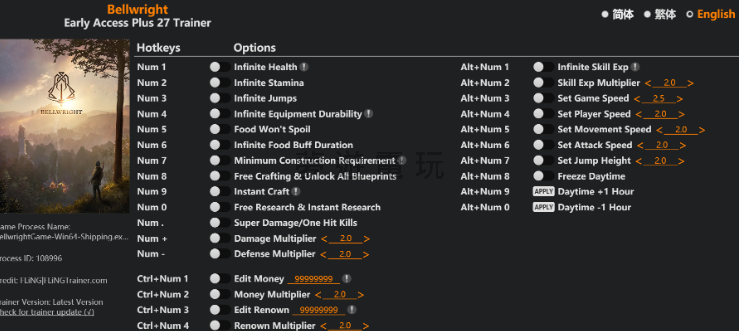正文摘要:replyreload += ',' + 2385243; 修改器功能介紹 本修改器支援遊戲版本:Early Access+ 最後更新日期:2025.04.29 共提供27種功能選項 基本功能 (數字鍵) • Num 1 – 無限生命值 • Num 2 – 無限耐力 • Num 3 – 無限跳躍 • Num 4 – 裝備耐久度不減 • Num 5 – 食物不會腐壞 • Num 6 – 無限食物增益持續時間 • Num 7 – 最低建造需求 • Num 8 – 免費製作與解鎖所有藍圖 • Num 9 – 即時製作 • Num 0 – 免費研究與即時研究 • Num . – 超級傷害/一擊必殺 • Num + – 傷害倍率調整 • Num - – 防禦倍率調整 進階功能 (Ctrl+數字鍵) • Ctrl+Num 1 – 修改金錢數量 • Ctrl+Num 2 – 金錢倍率調整 • Ctrl+Num 3 – 修改聲望值 • Ctrl+Num 4 – 聲望倍率調整 特殊功能 (Alt+數字鍵) • Alt+Num 1 – 無限技能經驗 • Alt+Num 2 – 技能經驗倍率調整 • Alt+Num 3 – 設定遊戲速度 • Alt+Num 4 – 設定玩家速度 • Alt+Num 5 – 設定移動速度 • Alt+Num 6 – 設定攻擊速度 • Alt+Num 7 – 設定跳躍高度 • Alt+Num 8 – 凍結時間 • Alt+Num 9 – 時間+1小時 • Alt+Num 0 – 時間-1小時 修改器使用教學 1. 下載修改器檔案 2. 運行遊戲,確保遊戲已經啟動 3. 執行修改器程式 4. 使用對應的快捷鍵啟用所需功能 5. 享受遊戲體驗! 注意事項: - 使用修改器前建議先備份存檔 - 某些防毒軟體可能會誤報,可以將修改器加入白名單 - 修改器僅支援Early Access+版本的遊戲,其他版本可能無法正常使用 下載連結 Bellwright Early Access Plus 27 Trainer Updated 2025.04.29.exe 所有站內附件皆會附上安全掃描報告請會員查看純淨度百分比後判斷使用(adsbygoogle = window.adsbygoogle || []).push({});相關檔案須知:取得檔案前,請先詳細閱讀文章內容避免不必要錯誤與誤會發生。也可多參考文章討論樓層內容了解附件檔案相關討論資訊。 【此文章部分內容隱藏中】 解除隱藏說明教學點擊下方 繼續閱讀文章 後請仔細觀看文章內容 並依照指示進行下一步最後完成解除隱藏後系統會回到此文章自動顯示隱藏內容~繼續閱讀 常見問題解答 Q1: 修改器無法正常運作怎麼辦? A1: 請確認您的遊戲版本是否為Early Access+,且修改器版本是最新的2025.04.29版本。如果版本不符,修改器可能無法正常運作。 Q2: 使用修改器會影響遊戲存檔嗎? A2: 一般情況下不會直接影響存檔,但為了安全起見,建議在使用修改器前先備份您的遊戲存檔。 Q3: 為什麼我的防毒軟體會攔截修改器? A3: 修改器程式會修改遊戲記憶體,因此可能被防毒軟體誤判為潛在威脅。您可以將修改器添加到防毒軟體的白名單中。 Q4: 如何使用倍率調整功能? A4: 按下對應的快捷鍵(如Num +調整傷害倍率)後,會彈出一個輸入框,您可以在其中輸入想要的倍率數值。例如,輸入2.0會使傷害提高為原來的兩倍。 Q5: 遊戲時間控制功能如何使用? A5: 按下Alt+Num 8可以凍結當前時間,Alt+Num 9可以將時間前進1小時,Alt+Num 0可以將時間後退1小時。這些功能對於需要在特定時間完成任務或避免夜晚危險的玩家特別有用。 👉 GM後台版 遊戲 推薦 ⬇️⬇️⬇️ 快速玩各種二次元動漫手遊appreplyreload += ',' + 2385243; |