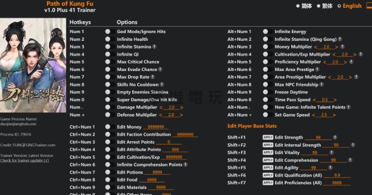 正文摘要:replyreload += ',' + 2385244; 修改器功能介紹 本修改器支援遊戲版本:v1.0+ 最後更新日期:2025.04.29 共提供41種功能選項 基本功能 (數字鍵) • Num 1 – 無敵模式/忽略傷害 • Num 2 – 無限生命值 • Num 3 – 無限耐力 • Num 4 – 無限氣力 • Num 5 – 最大暴擊機率 • Num 6 – 最大閃避機率 • Num 7 – 最大掉落率 • Num 8 – 技能無冷卻時間 • Num 9 – 清空敵人耐力 • Num 0 – 超級傷害/一擊必殺 • Num . – 傷害倍率調整 • Num + – 防禦倍率調整 進階功能 (Ctrl+數字鍵) • Ctrl+Num 1 – 修改金錢數量 • Ctrl+Num 2 – 修改門派貢獻 • Ctrl+Num 3 – 修改通緝點數 • Ctrl+Num 4 – 修改屬性點數 • Ctrl+Num 5 – 修改修為/經驗值 • Ctrl+Num 6 – 無限悟性點數 • Ctrl+Num 7 – 修改藥品數量 • Ctrl+Num 8 – 修改食物數量 • Ctrl+Num 9 – 修改材料數量 • Ctrl+Num 0 – 修改其他道具數量 特殊功能 (Alt+數字鍵) • Alt+Num 1 – 無限能量 • Alt+Num 2 – 無限輕功耐力 • Alt+Num 3 – 金錢倍率調整 • Alt+Num 4 – 修為/經驗倍率調整 • Alt+Num 5 – 熟練度倍率調整 • Alt+Num 6 – 最大地區聲望 • Alt+Num 7 – 地區聲望倍率調整 • Alt+Num 8 – 最大NPC好感度 • Alt+Num 9 – 凍結時間 • Alt+Num 0 – 時間流逝速度調整 • Alt+Num . – 新遊戲:無限天賦點數 • Alt+Num + – 設定遊戲速度 角色基礎屬性修改 (Shift+F鍵) • Shift+F1 – 修改力量 • Shift+F2 – 修改內力 • Shift+F3 – 修改體質 • Shift+F4 – 修改悟性 • Shift+F5 – 修改身法 • Shift+F6 – 修改資質(全部) • Shift+F7 – 修改熟練度(全部) 修改器使用教學 1. 下載修改器檔案 2. 運行遊戲,確保遊戲已經啟動 3. 執行修改器程式 4. 使用對應的快捷鍵啟用所需功能 5. 享受遊戲體驗! 注意事項: - 使用修改器前建議先備份存檔 - 某些防毒軟體可能會誤報,可以將修改器加入白名單 - 修改器僅支援v1.0+版本的遊戲,其他版本可能無法正常使用 下載連結 Path of Kung Fu v1.0 Plus 41 Trainer.exe 所有站內附件皆會附上安全掃描報告請會員查看純淨度百分比後判斷使用(adsbygoogle = window.adsbygoogle || []).push({});相關檔案須知:取得檔案前,請先詳細閱讀文章內容避免不必要錯誤與誤會發生。也可多參考文章討論樓層內容了解附件檔案相關討論資訊。 【此文章部分內容隱藏中】 解除隱藏說明教學點擊下方 繼續閱讀文章 後請仔細觀看文章內容 並依照指示進行下一步最後完成解除隱藏後系統會回到此文章自動顯示隱藏內容~繼續閱讀 常見問題解答 Q1: 修改器無法正常運作怎麼辦? A1: 請確認您的遊戲版本是否為v1.0+,且修改器版本是最新的2025.04.29版本。如果版本不符,修改器可能無法正常運作。 Q2: 使用修改器會影響遊戲存檔嗎? A2: 一般情況下不會直接影響存檔,但為了安全起見,建議在使用修改器前先備份您的遊戲存檔。 Q3: 為什麼我的防毒軟體會攔截修改器? A3: 修改器程式會修改遊戲記憶體,因此可能被防毒軟體誤判為潛在威脅。您可以將修改器添加到防毒軟體的白名單中。 Q4: 如何使用倍率調整功能? A4: 按下對應的快捷鍵(如Num .調整傷害倍率)後,會彈出一個輸入框,您可以在其中輸入想要的倍率數值。例如,輸入2.0會使傷害提高為原來的兩倍。 Q5: 修改角色屬性後會永久保存嗎? A5: 修改器對屬性的修改通常只在當前遊戲進程中有效,關閉遊戲後可能會恢復原始數值。如果您想永久保存修改後的屬性,建議在修改後進行一次遊戲存檔。 👉 GM後台版 遊戲 推薦 ⬇️⬇️⬇️ 快速玩各種二次元動漫手遊appreplyreload += ',' + 2385244; |