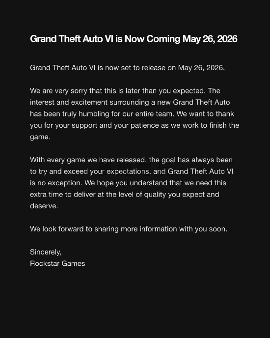 正文摘要:想必今天滑遊戲新聞的玩家們,都看到了R星大作《GTA6》延期的震撼彈!原本預計今年秋天就能在洛聖都(或該說萊昂希達?)街頭狂飆,現在卻得等到2026年5月26日。這消息一出,是不是讓你心碎一地?不過,根據外媒Push Square的最新調查,結果可能跟你想的不太一樣喔! 《GTA6》宣布延期,你真的感到遺憾嗎?或許,玩家們對於遊戲延期的態度已經越來越理性,比起趕鴨子上架的半成品,大家更願意等待一款打磨精良的遊戲。畢竟,好遊戲不怕晚,你說是不是呢? 以下廣告滑動後還有帖子內容var custom_call_MIR = function (params) {if ( params === null || params.hasAd === false ) {var divRowSide;for (let index = 0; index < ONEADs.length; index++) {if (ONEADs[index].pub.player_mode === "mobile-inread") {divRowSide = ONEADs[index].pub.slotobj;}}var ins = document.createElement('ins');ins.className = 'clickforceads';ins.setAttribute('style', 'display:inline-block;');ins.setAttribute('data-ad-zone', '18264');divRowSide.appendChild(ins);var js = document.createElement('script');js.async = true;js.type = 'text/javascript';js.setAttribute('src', '//cdn.holmesmind.com/js/init.js');js.onload = function(){console.log('[ONEAD MIR] ClickForce Loaded');};divRowSide.appendChild(js);}};var _ONEAD = {};_ONEAD.pub = {};_ONEAD.pub.slotobj = document.getElementById("oneadMIRDFPTag");_ONEAD.pub.slots = ["div-onead-ad"];_ONEAD.pub.uid = "1000509";_ONEAD.pub.external_url = "https://onead.onevision.com.tw/";_ONEAD.pub.scopes = ["spotbuy", "speed"];_ONEAD.pub.player_mode_div = "div-onead-ad";_ONEAD.pub.player_mode = "mobile-inread";_ONEAD.pub.queryAdCallback = custom_call_MIR;var ONEAD_pubs = ONEAD_pubs || [];ONEAD_pubs.push(_ONEAD);var truvidScript = document.createElement('script'); truvidScript.async = true; truvidScript.setAttribute('data-cfasync','false'); truvidScript.type = 'text/javascript'; truvidScript.src = '//stg.truvidplayer.com/index.php?sub_user_id=597&widget_id=3309&playlist_id=2381&m=a&cb=' + (Math.random() * 10000000000000000); var currentScript = document.currentScript || document.scripts[document.scripts.length - 1]; currentScript.parentNode.insertBefore(truvidScript, currentScript.nextSibling); 常見問題Q&A 《GTA6》延期到什麼時候? 《GTA6》目前宣布延期至2026年5月26日發售。 為什麼大部分玩家對《GTA6》延期無感? 根據Push Square的調查,許多玩家抱持著「出了就玩,沒出也無妨」的心態,或是認為有其他遊戲可以填補空窗期,甚至部分玩家對《GTA6》沒有興趣。 玩家對於《GTA6》是否會再次延期的看法如何? 有超過一半的玩家認為這次延期可能只是個開始,未來可能還會再次跳票,但也有近半數玩家相信R星會準時發售。 這次調查的樣本數有多少? 關於《GTA6》延期看法的投票,共有1583位玩家參與。 除了《GTA6》,還有哪些遊戲是玩家期待的? 文章中並未具體提及其他遊戲,但暗示玩家認為市面上有其他遊戲可以填補《GTA6》延期造成的空窗期。 👉 GM後台版 遊戲 推薦 ⬇️⬇️⬇️ 快速玩各種二次元動漫手遊app |