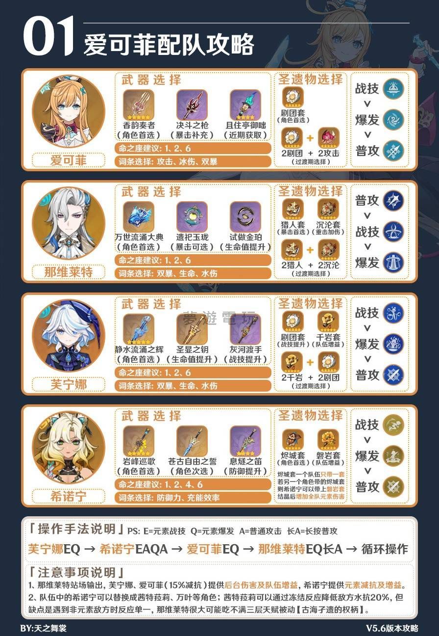 《原神》中的愛可菲是一位在5.6上半版本登場的新角色,關於她的隊伍搭配與操作技巧,本文將為您詳細整理,希望能幫助大家更有效地運用這位角色。 以下攻略內容,命座建議僅供參考,部分五星和四星角色即使是零