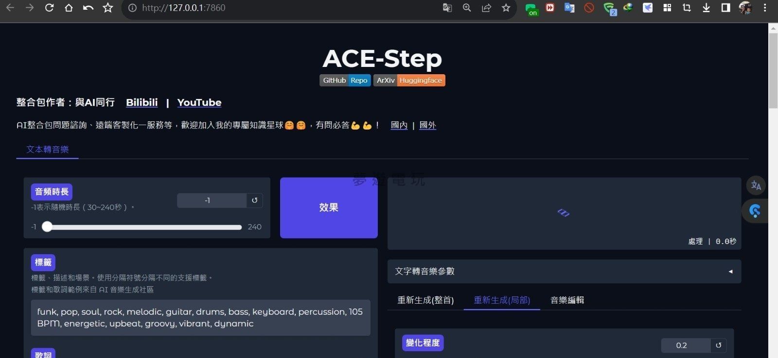 正文摘要:本次要分享的是一款強大的AI音樂生成軟體,ACE-Step V1.0。 ACE-Step 強大的功能讓您可以僅需 20 秒即可生成音樂,並支援中文、英文、日文、韓文等多種語言的音樂創作。此外,它還提供便利的音樂編輯功能,讓您隨心所欲地調整您的作品。 此軟體適用於 NVIDIA 6G 以上顯示卡,並支援 50 系列顯卡,確保流暢的使用體驗。 軟體詳細資訊 - 軟體名稱: ACE-Step (N卡6G以上適用) - 版本類型: 一鍵啟動 - 軟體版本: V1.0 - 軟體語言: 多語(網譯) - 檔案大小: 15.7GB - 本次更新日期: 今天 以下廣告滑動後還有帖子內容var custom_call_MIR = function (params) {if ( params === null || params.hasAd === false ) {var divRowSide;for (let index = 0; index < ONEADs.length; index++) {if (ONEADs[index].pub.player_mode === "mobile-inread") {divRowSide = ONEADs[index].pub.slotobj;}}var ins = document.createElement('ins');ins.className = 'clickforceads';ins.setAttribute('style', 'display:inline-block;');ins.setAttribute('data-ad-zone', '18264');divRowSide.appendChild(ins);var js = document.createElement('script');js.async = true;js.type = 'text/javascript';js.setAttribute('src', '//cdn.holmesmind.com/js/init.js');js.onload = function(){console.log('[ONEAD MIR] ClickForce Loaded');};divRowSide.appendChild(js);}};var _ONEAD = {};_ONEAD.pub = {};_ONEAD.pub.slotobj = document.getElementById("oneadMIRDFPTag");_ONEAD.pub.slots = ["div-onead-ad"];_ONEAD.pub.uid = "1000509";_ONEAD.pub.external_url = "https://onead.onevision.com.tw/";_ONEAD.pub.scopes = ["spotbuy", "speed"];_ONEAD.pub.player_mode_div = "div-onead-ad";_ONEAD.pub.player_mode = "mobile-inread";_ONEAD.pub.queryAdCallback = custom_call_MIR;var ONEAD_pubs = ONEAD_pubs || [];ONEAD_pubs.push(_ONEAD);var truvidScript = document.createElement('script'); truvidScript.async = true; truvidScript.setAttribute('data-cfasync','false'); truvidScript.type = 'text/javascript'; truvidScript.src = '//stg.truvidplayer.com/index.php?sub_user_id=597&widget_id=3309&playlist_id=2381&m=a&cb=' + (Math.random() * 10000000000000000); var currentScript = document.currentScript || document.scripts[document.scripts.length - 1]; currentScript.parentNode.insertBefore(truvidScript, currentScript.nextSibling); 下載鏈接 想要體驗這款強大的AI音樂生成軟體嗎?點擊下方下載鏈接即可免費獲取! 下載鏈接: [Free Download: ACE-Step V1.0 免費下載]https://katfile.com/f/poinj205swtbkr8a6g26p7lfuuo3xq1z 👉 GM後台版 遊戲 推薦 ⬇️⬇️⬇️ 快速玩各種二次元動漫手遊app |
