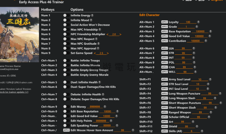 正文摘要:replyreload += ',' + 2386203; 《英雄立志傳:三國志》最新訓練器介紹 這款針對《英雄立志傳:三國志》的訓練器提供了多達46項強大功能,完美支援遊戲最新的Early Access+版本。本訓練器於2025年5月6日更新,能夠幫助玩家在遊戲中獲得更多自由度和樂趣。 主要功能列表 基本選項 (使用數字鍵) - Num 1 – 無限精力 - Num 2 – 無限心情 - Num 3 – 社交行動不會減少 - Num 4 – NPC友好度最大化 - Num 5 – NPC友好度倍增器 - Num 6 – NPC尊敬度最大化 - Num 7 – NPC感謝度最大化 - Num 8 – NPC認可度最大化 - Num 9 – 設定遊戲速度 戰鬥相關功能 (Ctrl+數字鍵) - Ctrl+Num 1 – 戰鬥:無限士兵 - Ctrl+Num 2 – 戰鬥:無限士氣 - Ctrl+Num 3 – 戰鬥:敵方士兵歸零 - Ctrl+Num 4 – 戰鬥:敵方士氣歸零 決鬥功能 - Ctrl+Num 5 – 決鬥:無限生命值 - Ctrl+Num 6 – 決鬥:超級傷害/一擊必殺 辯論功能 - Ctrl+Num 7 – 辯論:無限生命值 - Ctrl+Num 8 – 辯論:超級傷害/一擊必殺 資源編輯功能 - Ctrl+Num 9 – 編輯金錢 - Ctrl+Num 0 – 編輯基礎聲望 - Ctrl+Num . – 編輯善惡值 - Ctrl+Num + – 編輯神聖點數 - Ctrl+Num - – 編輯言語能力 - Ctrl+Num / – 編輯滑鼠懸停物品數量 角色屬性編輯功能 基本屬性 (Alt+數字鍵) - Alt+Num 1 – 忠誠度 - Alt+Num 2 – 等級 - Alt+Num 3 – 基礎聲望 - Alt+Num 4 – 善惡值 - Alt+Num 5 – 貢獻度 主要能力值 - Alt+Num 6 – 統率力 - Alt+Num 7 – 武力 - Alt+Num 8 – 智力 - Alt+Num 9 – 政治 - Alt+Num 0 – 魅力 - Alt+Num . – 意志 技能等級編輯 (Shift+F鍵) - Shift+F1 – 軍魂等級 - Shift+F2 – 力量魂等級 - Shift+F3 – 智力魂等級 - Shift+F4 – 長武器刺擊 - Shift+F5 – 長武器斬擊 - Shift+F6 – 短武器刺擊 - Shift+F7 – 短武器斬擊 - Shift+F8 – 遠程武器 - Shift+F9 – 儒官 - Shift+F10 – 藝術 - Shift+F11 – 盾牌 - Shift+F12 – 所有技能 使用方法 1. 下載訓練器檔案 2. 先啟動遊戲,等待遊戲完全載入 3. 執行訓練器程式 4. 使用對應的快捷鍵啟用你需要的功能 5. 享受遊戲過程中的各種便利 下載連結 Legend of Heroes Three Kingdoms Early Access Plus 46 Trainer Updated 2025.05.06.exe 所有站內附件皆會附上安全掃描報告請會員查看純淨度百分比後判斷使用(adsbygoogle = window.adsbygoogle || []).push({});相關檔案須知:取得檔案前,請先詳細閱讀文章內容避免不必要錯誤與誤會發生。也可多參考文章討論樓層內容了解附件檔案相關討論資訊。 【此文章部分內容隱藏中】 解除隱藏說明教學點擊下方 繼續閱讀文章 後請仔細觀看文章內容 並依照指示進行下一步最後完成解除隱藏後系統會回到此文章自動顯示隱藏內容~繼續閱讀 常見問題解答 Q1: 這個訓練器會影響遊戲存檔嗎? A1: 訓練器只是暫時修改遊戲記憶體中的數值,通常不會直接影響存檔。但建議在使用前先備份你的遊戲存檔,以防萬一。 Q2: 使用訓練器會被遊戲官方檢測到嗎? A2: 這款訓練器設計用於單人遊戲體驗,不會影響多人遊戲。在單人模式中使用通常是安全的,但若遊戲有線上功能,請謹慎使用。 Q3: 為什麼有些功能無法正常工作? A3: 可能是因為遊戲版本更新導致不相容。請確保你使用的是最新版訓練器,並且遊戲版本與訓練器相符。 Q4: 訓練器使用時出現防毒軟體警告,這是正常的嗎? A4: 是的,很多訓練器因為需要修改遊戲記憶體,會被防毒軟體誤判為潛在威脅。建議在使用前暫時關閉防毒軟體或添加例外。 Q5: 如何在遊戲更新後繼續使用訓練器? A5: 遊戲更新後,訓練器可能需要相應更新才能正常使用。請定期檢查是否有新版訓練器發布,或等待作者更新。 👉 GM後台版 遊戲 推薦 ⬇️⬇️⬇️ 快速玩各種二次元動漫手遊appreplyreload += ',' + 2386203; |