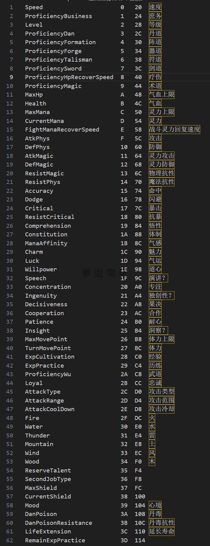 正文摘要:replyreload += ',' + 2386400; 本文將教您如何修改《宗門志》遊戲中的預設宗門設定,包括宗門傳承、掌門特質和宗門理念等。通過這些修改,您可以打造出更符合自己遊戲風格的宗門,提升遊戲體驗。 飛升宗門修改文件位置與基本說明 修改文件位置: C:\Users\Administrator\AppData\LocalLow\Joyrry\Acension\SectPreset 複製代碼主要修改文件:SectPreset.yaml 開啟方式建議:使用Notepad++開啟,避免使用記事本可能導致的錯行問題。 下載連結: 所有站內附件皆會附上安全掃描報告請會員查看純淨度百分比後判斷使用(adsbygoogle = window.adsbygoogle || []).push({});相關檔案須知:取得檔案前,請先詳細閱讀文章內容避免不必要錯誤與誤會發生。也可多參考文章討論樓層內容了解附件檔案相關討論資訊。 【此文章部分內容隱藏中】 解除隱藏說明教學點擊下方 繼續閱讀文章 後請仔細觀看文章內容 並依照指示進行下一步最後完成解除隱藏後系統會回到此文章自動顯示隱藏內容~繼續閱讀 密碼:7788 宗門志 宗門傳承修改教學 打開SectPreset.yaml文件,找到以下部分: SectTraits: - 121403 - 121402 複製代碼這些數字代碼就是宗門傳承ID,您可以根據需要添加或修改。 宗門傳承完整ID列表: - 121403 精於功法:宗門所有弟子修行速度+3% - 121420 庶務通徹:庶務+5 - 121418 陣道通徹:陣道+5 - 121416 符道通徹:符道+5 - 121414 器道通徹:器道+5 - 121410 武道通徹:武道+5 - 121408 術道通徹:術道+5 - 121406 劍道通徹:劍道+5 - 121412 丹道通徹:丹道+5 - 121421 精於建造:建造-5雜役力 - 121423 精於悟道:悟道值每回合+1 - 121404 驍勇善戰:宗門所有弟子體質+3 - 121401 靈石節制:門眾特質+1.0 - 121425 堅定道心:宗門所有弟子道心+3 - 121422 精於傳道:影響力每回合+2 - 121400 宗門齊心:凝聚力每回合+1 - 121424 精於探索 - 121402 有靈無患:靈石每回合+2 宗門志 掌門特質修改方法 在SectPreset.yaml文件中,找到類似以下部分: Age: 18 TalentTraitID: 121509 SelectedTraits: - 124072 - 124083 複製代碼SelectedTraits下方的數字代碼就是掌門特質ID,您可以根據需要添加或替換。 正面特質ID列表(部分): - 124095 一指成聖:武道+10 體質+10 - 124049 靈脈聖體:修為每回合+3% - 124093 獨心劍癡:劍道+15 劍道經驗增長速度每回合+20% 術道-15 武道-15 - 124071 庶務精通:庶務+20 庶務經驗增加速度每回合+20% - 124100 神秘器靈:氣運+20 - 124051 道體天成:修為每回合+2% - 124055 劍道聖體:劍道+2 劍道經驗增長速度+20% - 124097 天性淡然:心境每回合+1 道心+10 - 124029 悟性通神:悟性+10 - 124031 仙根道骨:體質+10 負面特質ID: - 124072 不善俗物 飛升宗門理念修改指南 在SectPreset.yaml文件中,找到: IdeologicalAID: 1200 IdeologicalBID: 121302 SectTraits: - 121403 複製代碼若要添加額外的宗門理念,只需在SectTraits下方添加相應ID即可,例如: SectTraits: - 121403 - 121307 複製代碼宗門理念ID列表: - 121302 有教無類 - 121308 道法自然 - 121307 謹小慎微 - 121300 靈石崇拜 - 121301 法不輕傳 - 121309 人定勝天 - 121303 參悟天機 - 121304 嫉惡如仇 - 121310 篤志於道 - 121305 廣結仙緣 - 121306 不沾世俗 - 121311 仙馭凡塵 宗門志 修改常見問題與解答 (FAQ) Q1: 修改後遊戲無法正常運行怎麼辦? A: 請確認修改格式正確,特別是縮排和標點符號。建議在修改前先備份原始文件,以便出現問題時恢復。 Q2: 可以同時添加多少個宗門傳承? A: 遊戲沒有明確限制,但建議不要過多,以免造成遊戲平衡性問題或潛在的穩定性問題。 Q3: 掌門特質可以全部添加嗎? A: 理論上可以添加多個,但過多特質可能導致遊戲難度降低。建議根據自己的遊戲風格適當選擇。 Q4: 修改後的設定會影響已有的存檔嗎? A: 這些修改主要影響新建立的宗門。已有的存檔通常不會受到影響,除非您直接修改該存檔相關文件。 Q5: 為什麼我修改後沒有生效? A: 請確認修改的文件路徑正確,並且在修改後已完全保存。某些情況下可能需要重新啟動遊戲才能生效。 Q6: 這些修改會被遊戲更新覆蓋嗎? A: 是的,遊戲更新後可能會覆蓋這些修改。建議在每次更新後重新進行修改,或保存一份修改好的文件備用。 👉 GM後台版 遊戲 推薦 ⬇️⬇️⬇️ 快速玩各種二次元動漫手遊app replyreload += ',' + 2386400; |