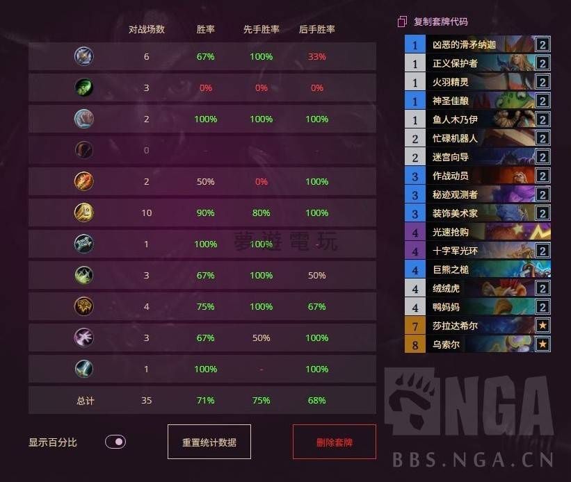 正文摘要:最近《爐石戰記》天梯標準模式裡,船歌聖騎士強勢到不行。如果你跟我一樣跟船歌聖沒什麼緣分,但又想快速爬分,這套「雜毛快攻聖」或許是個好選擇!有玩家分享自己用這套聖騎士牌組,一天之內就以70%的超高勝率衝上傳說,而且對上惡夢般的船歌聖居然全勝!如果你正想找一套好上手的快攻牌組,不妨參考看看這篇文章的攻略教學喔! 👉 GM後台版 遊戲 推薦 ⬇️⬇️⬇️ 快速玩各種二次元動漫手遊app 這副牌組的奧妙在哪?要怎麼操作才能快速上分?一起看下去就知道! 雜毛快攻聖牌組構成與留牌指南 這套雜毛快攻聖的牌組主要是利用大量低費手下鋪場,再搭配增益效果(Buff)快速打臉獲勝。以下是牌組清單: - 2x (1) 兇惡的滑矛納迦 - 2x (1) 正義守護者 - 2x (1) 火羽精靈 - 2x (1) 神聖佳釀 - 2x (1) 魚人木乃伊 - 2x (2) 忙碌的機器人 - 2x (2) 迷宮引導者 - 2x (3) 動員 - 2x (3) 秘法觀察者 - 2x (3) 裝飾藝術家 - 1x (4) 光速搶購 - 2x (4) 十字軍光環 - 1x (4) 巨熊之槌 - 2x (4) 絨絨虎 - 2x (4) 鴨媽媽 - 1x (7) 莎拉達希爾 - 1x (8) 烏索爾 想玩這副牌組,可以直接複製下面的牌組代碼,在遊戲中建立新套牌時貼上即可。 AAECAZ8FBN66Bsj/BrSBB5KDBw3JoASU9QWV9QXUngb9qAbRqQamswbBvwaf4Qbt5gbX8walhQe8mgcAAA== 雜毛快攻聖起手牌要留什麼? 不同的對戰組合,起手留牌策略也會有些差異,想知道要怎麼起手才能贏在起跑點?這部分的攻略教學很重要: 對非烏龜流牌組(例如快攻):- 主要留低費的手下牌,像是1費的手下。 - 「神聖佳釀」也可以留,在前期解掉船歌聖的關鍵手下特別有效。 - 如果有低費手下在手上,可以考慮留「裝飾藝術家」。 - 「忙碌的機器人」起手不留。 對烏龜流牌組(例如控制術士):- 起手可以考慮留武器,像是「巨熊之槌」。 - 其他留牌策略跟對非烏龜流牌組差不多。 雜毛快攻聖對戰策略整理 這套牌組的關鍵是如何有效地鋪場和利用增益效果。以下是一些對戰中的實用秘訣: 增益牌的使用時機:- 像是「十字軍光環」這類的 Buff 牌,只要能 Buff 到兩個手下就不虧。 - 「十字軍光環」可以搭配「鴨媽媽」或「絨絨虎」使用,效果更好。 攻擊目標:- 除了對上也是鋪場為主的牌組外,打其他大部分牌組時,主要目標都是直接攻擊對手的英雄臉。 - 前期利用「正義守護者」這類帶聖盾的手下,可以卡住對手的攻擊頻率,保護其他手下。 牌組調整建議 如果你想稍微修改這副牌組,可以考慮把「迷宮引導者」換成兩張2費的「黑暗之賜」,這也是不錯的選擇。 對戰優劣勢分析 這套牌組並非無敵,還是有比較難打的對局。以下分享一些對戰的優劣勢: 跳水瞎(惡魔獵人):很難打,幾乎只能靠對手卡手才有機會贏。 三血紅死亡騎士(非星艦):對手範圍清除(AOE)法術太多,比較難以應付。 大樹術士:同樣是範圍清除法術多的對局,比較難打。 其他牌組:對上其他大部分牌組都有優勢或至少是均勢。 以下廣告滑動後還有帖子內容var custom_call_MIR = function (params) {if ( params === null || params.hasAd === false ) {var divRowSide;for (let index = 0; index < ONEADs.length; index++) {if (ONEADs[index].pub.player_mode === "mobile-inread") {divRowSide = ONEADs[index].pub.slotobj;}}var ins = document.createElement('ins');ins.className = 'clickforceads';ins.setAttribute('style', 'display:inline-block;');ins.setAttribute('data-ad-zone', '18264');divRowSide.appendChild(ins);var js = document.createElement('script');js.async = true;js.type = 'text/javascript';js.setAttribute('src', '//cdn.holmesmind.com/js/init.js');js.onload = function(){console.log('[ONEAD MIR] ClickForce Loaded');};divRowSide.appendChild(js);}};var _ONEAD = {};_ONEAD.pub = {};_ONEAD.pub.slotobj = document.getElementById("oneadMIRDFPTag");_ONEAD.pub.slots = ["div-onead-ad"];_ONEAD.pub.uid = "1000509";_ONEAD.pub.external_url = "https://onead.onevision.com.tw/";_ONEAD.pub.scopes = ["spotbuy", "speed"];_ONEAD.pub.player_mode_div = "div-onead-ad";_ONEAD.pub.player_mode = "mobile-inread";_ONEAD.pub.queryAdCallback = custom_call_MIR;var ONEAD_pubs = ONEAD_pubs || [];ONEAD_pubs.push(_ONEAD);var truvidScript = document.createElement('script'); truvidScript.async = true; truvidScript.setAttribute('data-cfasync','false'); truvidScript.type = 'text/javascript'; truvidScript.src = '//stg.truvidplayer.com/index.php?sub_user_id=597&widget_id=3309&playlist_id=2381&m=a&cb=' + (Math.random() * 10000000000000000); var currentScript = document.currentScript || document.scripts[document.scripts.length - 1]; currentScript.parentNode.insertBefore(truvidScript, currentScript.nextSibling); 《爐石戰記》雜毛快攻聖常見問題Q&A Q:雜毛快攻聖的核心思路是什麼? A:核心思路是利用大量低費手下快速鋪場,並搭配增益效果(Buff)直接攻擊對手英雄的臉,爭取在前期就結束遊戲。 Q:為什麼這套牌對戰船歌聖有優勢? A:這套牌組前期鋪場速度快,且神聖佳釀等牌可以有效解掉船歌聖的關鍵手下,壓制對手的節奏。 Q:起手一定要留低費牌嗎? A:是的,起手盡量找1費或2費的手下,確保前期能夠順利鋪場。對上慢速牌組可以考慮留武器。 Q:什麼時候使用十字軍光環最划算? A:當場上有至少兩個手下可以吃到 Buff 時使用,搭配絨絨虎或鴨媽媽效果更好。 Q:如果對手AOE很多怎麼辦? A:對上AOE多的牌組(如大樹術、三血紅DK)是這套牌的劣勢對局。盡量不要一次下太多重要手下,並保留一些手牌進行二次鋪場的機會。 |
