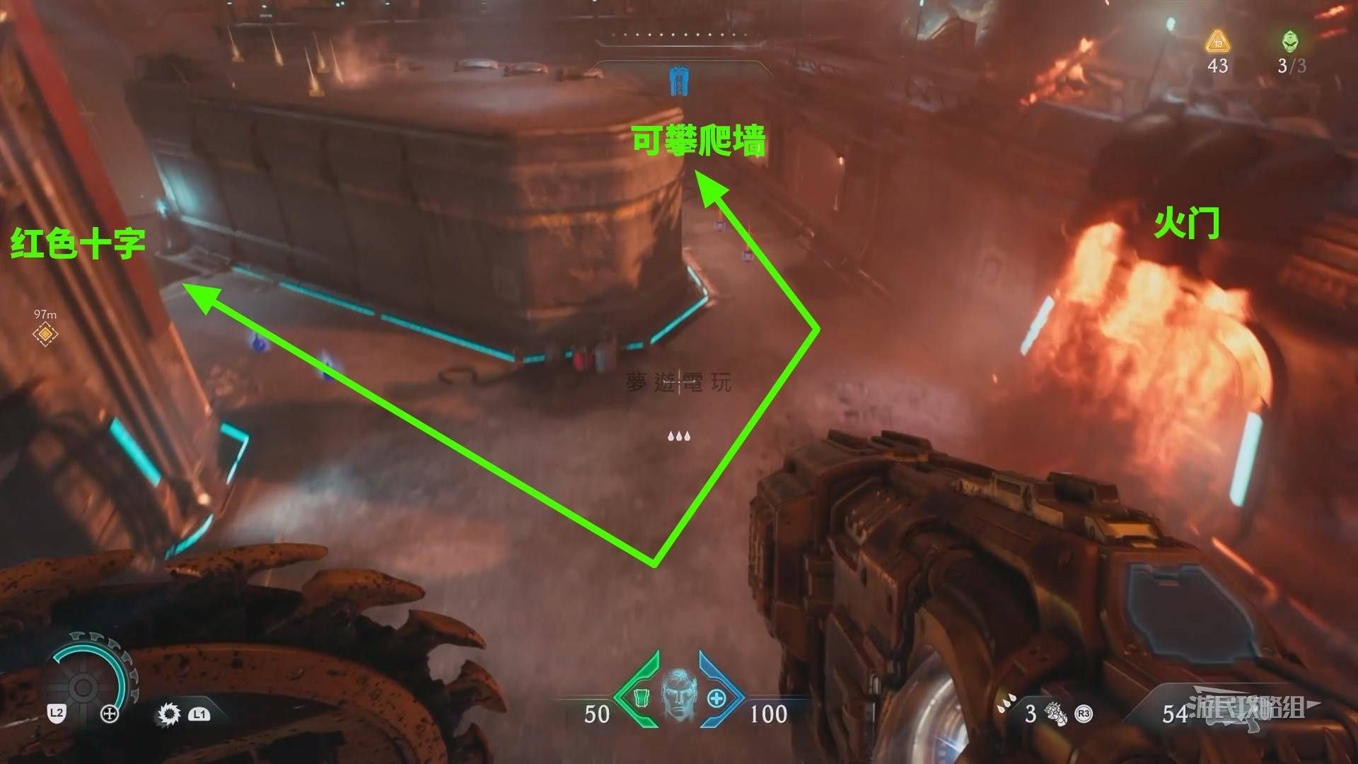 正文摘要:赫貝斯火門怎麼開啟? 在《毀滅戰士黑暗時代》第二章「赫貝斯」關卡裡,有個火門擋住去路,很多玩家可能不知道要怎麼打開。這篇攻略就要來教大家怎麼開啟赫貝斯火門,讓你順利通過! 👉 GM後台版 遊戲 推薦 ⬇️⬇️⬇️ 快速玩各種二次元動漫手遊app 看到火門後,你可以看到兩條路:左邊那條可以到一個紅色十字,右邊那條則是通往可以攀爬的牆壁。 首先,走到火門正對面(下圖左邊)的小通道,抬頭往上看,你會看到一個紅色的十字架。 以下廣告滑動後還有帖子內容var custom_call_MIR = function (params) {if ( params === null || params.hasAd === false ) {var divRowSide;for (let index = 0; index < ONEADs.length; index++) {if (ONEADs[index].pub.player_mode === "mobile-inread") {divRowSide = ONEADs[index].pub.slotobj;}}var ins = document.createElement('ins');ins.className = 'clickforceads';ins.setAttribute('style', 'display:inline-block;');ins.setAttribute('data-ad-zone', '18264');divRowSide.appendChild(ins);var js = document.createElement('script');js.async = true;js.type = 'text/javascript';js.setAttribute('src', '//cdn.holmesmind.com/js/init.js');js.onload = function(){console.log('[ONEAD MIR] ClickForce Loaded');};divRowSide.appendChild(js);}};var _ONEAD = {};_ONEAD.pub = {};_ONEAD.pub.slotobj = document.getElementById("oneadMIRDFPTag");_ONEAD.pub.slots = ["div-onead-ad"];_ONEAD.pub.uid = "1000509";_ONEAD.pub.external_url = "https://onead.onevision.com.tw/";_ONEAD.pub.scopes = ["spotbuy", "speed"];_ONEAD.pub.player_mode_div = "div-onead-ad";_ONEAD.pub.player_mode = "mobile-inread";_ONEAD.pub.queryAdCallback = custom_call_MIR;var ONEAD_pubs = ONEAD_pubs || [];ONEAD_pubs.push(_ONEAD);var truvidScript = document.createElement('script'); truvidScript.async = true; truvidScript.setAttribute('data-cfasync','false'); truvidScript.type = 'text/javascript'; truvidScript.src = '//stg.truvidplayer.com/index.php?sub_user_id=597&widget_id=3309&playlist_id=2381&m=a&cb=' + (Math.random() * 10000000000000000); var currentScript = document.currentScript || document.scripts[document.scripts.length - 1]; currentScript.parentNode.insertBefore(truvidScript, currentScript.nextSibling); 《毀滅戰士黑暗時代》赫貝斯火門 常見問題Q&A - 赫貝斯火門要怎麼解開? 你需要先找到並打掉紅色的十字標記,然後找到通往火門後方區域的通道,並關閉閥門才能開啟火門。 - 紅色十字標記在哪裡? 紅色十字標記在火門正對面小道的上方。 - 打掉紅色十字後會發生什麼? 打掉紅色十字後,會出現一個可以跳進去的洞。 - 要怎麼關掉噴火? 進入打掉紅色十字後出現的洞裡,與裡面管線上的閥門互動即可關閉噴火。 - 進入火門後的區域有什麼? 進入火門後方的區域,有敵人、黃金、符文、彈藥和血量補給可以拾取。 |