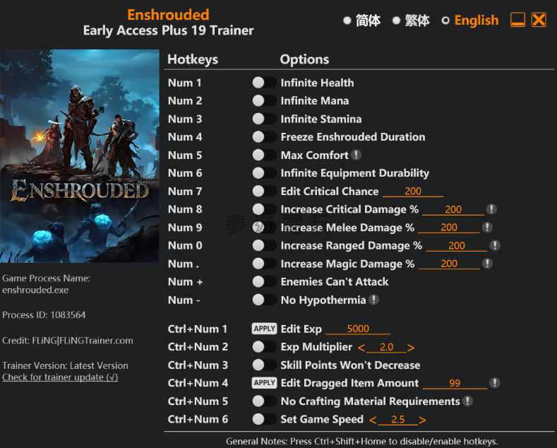 正文摘要:replyreload += ',' + 2387449; Enshrouded 霧鎖王國修改器介紹 《Enshrouded 霧鎖王國》風靈月影修改器已更新至最新版本,提供19項強大功能,幫助您在單人遊戲中獲得更好的遊戲體驗。此修改器僅適用於單人遊戲模式,支援Early Access+版本,最後更新時間為2025年5月16日。 Enshrouded 修改器功能列表 基本功能 (數字鍵): - Num 1 – 無限生命值 - Num 2 – 無限魔力值 - Num 3 – 無限耐力 - Num 4 – 凍結霧氣持續時間 - Num 5 – 最大舒適度 - Num 6 – 裝備無限耐久度 - Num 7 – 編輯暴擊機率 - Num 8 – 增加暴擊傷害百分比 - Num 9 – 增加近戰傷害百分比 - Num 0 – 增加遠程傷害百分比 - Num . – 增加魔法傷害百分比 - Num + – 敵人無法攻擊 - Num - – 防止失溫 進階功能 (Ctrl+數字鍵): - Ctrl+Num 1 – 編輯經驗值 - Ctrl+Num 2 – 經驗值倍數調整 - Ctrl+Num 3 – 技能點不會減少 - Ctrl+Num 4 – 編輯拖曳物品數量 - Ctrl+Num 5 – 無需製作材料需求 - Ctrl+Num 6 – 設定遊戲速度 Enshrouded 修改器下載與安裝教學 1. 點擊下方連結下載最新版修改器 2. 解壓縮下載的檔案 3. 啟動《Enshrouded 霧鎖王國》遊戲 4. 運行修改器程式 5. 使用對應的按鍵啟用您需要的功能 下載連結: 所有站內附件皆會附上安全掃描報告請會員查看純淨度百分比後判斷使用(adsbygoogle = window.adsbygoogle || []).push({});相關檔案須知:取得檔案前,請先詳細閱讀文章內容避免不必要錯誤與誤會發生。也可多參考文章討論樓層內容了解附件檔案相關討論資訊。 【此文章部分內容隱藏中】 解除隱藏說明教學點擊下方 繼續閱讀文章 後請仔細觀看文章內容 並依照指示進行下一步最後完成解除隱藏後系統會回到此文章自動顯示隱藏內容~繼續閱讀 Enshrouded 修改器使用注意事項 - 此修改器僅適用於單人遊戲模式,多人遊戲中使用可能導致遊戲異常或帳號風險 - 建議在使用修改器前先備份您的遊戲存檔 - 部分功能可能會影響遊戲平衡性,請根據個人喜好合理使用 - 修改器隨遊戲版本更新可能需要重新下載最新版本 常見問題與解答 (FAQ) Q1: 此修改器是否支援多人遊戲模式? A1: 不支援,此修改器僅適用於單人遊戲模式,在多人遊戲中使用可能導致遊戲異常或帳號風險。 Q2: 使用修改器會影響遊戲存檔嗎? A2: 有可能會影響,建議在使用修改器前先備份您的遊戲存檔,以防不測。 Q3: 如何啟用/關閉修改器功能? A3: 只需按下對應的按鍵組合即可啟用或關閉相應功能,再次按下相同按鍵可切換功能狀態。 Q4: 遊戲更新後修改器還能使用嗎? A4: 遊戲更新後可能需要下載最新版本的修改器,請關注修改器的更新情況。 Q5: 使用「無需製作材料需求」功能後會影響遊戲進度嗎? A5: 此功能僅影響製作物品時的材料需求,不會直接影響主線任務進度,但可能會改變遊戲體驗的平衡性。 Q6: 修改器無法正常運作怎麼辦? A6: 請確認您的遊戲版本與修改器版本相符,並以管理員身份運行修改器程式,同時關閉可能干擾的防毒軟體。 👉 GM後台版 遊戲 推薦 ⬇️⬇️⬇️ 快速玩各種二次元動漫手遊appreplyreload += ',' + 2387449; |