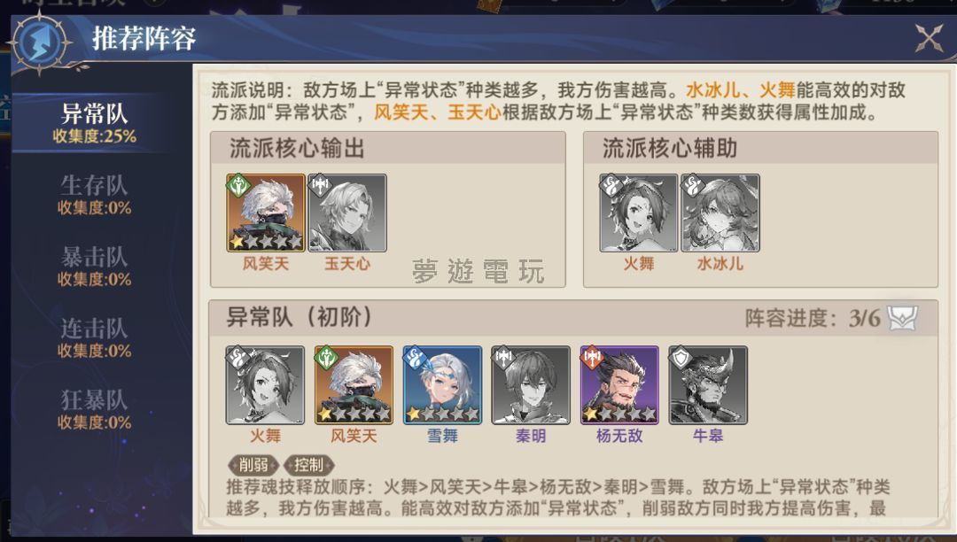 剛加入《斗羅大陸:逆轉時空》的傳承者們可能對於如何組態隊伍感到困惑,今天就來分享初期開荒的基礎配隊思路,讓你快速上手遊戲! 流派與通用陣容整理 寧風致普攻可為血量最低的魂師提供治療,魂技可提供全