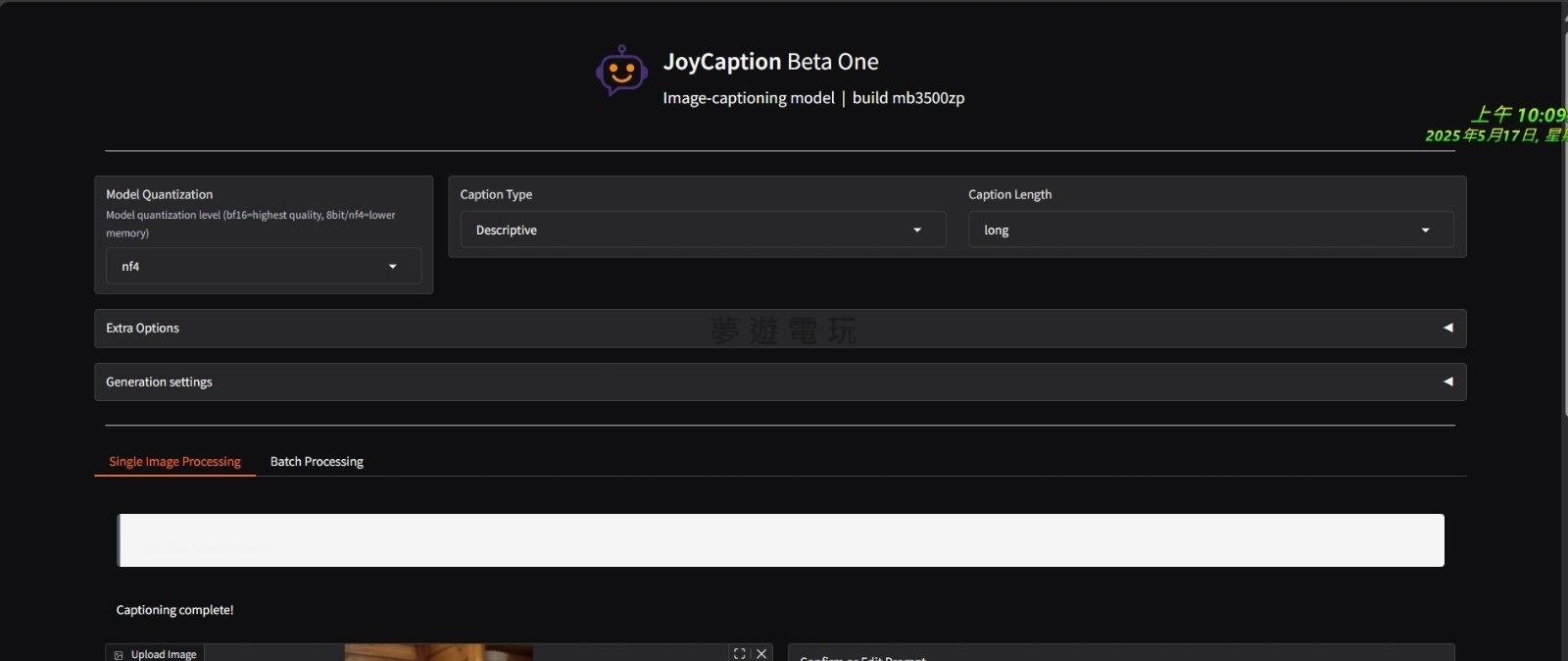正文摘要:版本:v20250515 更新日期:2024年05月18日 功能特色與亮點 你是否也常遇到詞窮,不知道該寫什麼提示詞?現在有了 AI-JoyCaption,這款工具可以幫助你反推圖片提示詞與圖像描述,讓你不再煩惱! 檔案資訊 檔案名稱:Joy-caption20250515 版本類型: 免裝, 一鍵啟動 (附影片介紹) 版本: 20250515 語言: 可網譯 檔案大小: 23.6GB 下載鏈接 Free Download: Joy-caption v20250515 下載 https://katfile.com/f/fbqb49d05tjae0bv6r719kvhp84exab5 👉 GM後台版 遊戲 推薦 ⬇️⬇️⬇️ 快速玩各種二次元動漫手遊app |