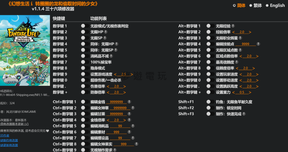 正文摘要:replyreload += ',' + 2388888; 這款《幻想生活i 轉圈圈的龍和偷取時間的少女》修改器支援遊戲版本 v1.1.4+,而且如果沒意外的話,大部分功能也會支援後續更新版本。不過要特別注意的是,這遊戲有使用 EasyAntiCheat 反作弊保護,所以想要使用修改器的話,必須先把 EAC 給關掉才行。 👉 GM後台版 遊戲 推薦 ⬇️⬇️⬇️ 快速玩各種二次元動漫手遊app 修改器功能完整列表 這個修改器總共提供了 36 個不同的功能選項,讓玩家可以根據自己的需求來調整遊戲體驗: 基礎戰鬥功能: - Num 1:無敵模式/忽略攻擊 - Num 2:無限 HP - Num 3:無限 SP - Num 4:同伴無限 HP - Num 5:同伴無限 SP - Num 6:消耗品不會減少 - Num 7:100% 掉落率 - Num 8:隱身模式 - Num 9:設定遊戲速度 - Num 0:超級傷害/一擊必殺 - Num .:傷害倍率 - Num +:防禦倍率 資源編輯功能: - Ctrl+Num 1:編輯金錢 - Ctrl+Num 2:編輯天界禮物 - Ctrl+Num 3:編輯堅果幣 - Ctrl+Num 4:金錢倍率 - Ctrl+Num 5:編輯消耗品 - Ctrl+Num 6:編輯材料 - Ctrl+Num 7:編輯物品/裝飾品 - Ctrl+Num 8:編輯女神果實 - Ctrl+Num 9:忽略製作需求 角色成長功能: - Alt+Num 1:無限經驗值 - Alt+Num 2:經驗值倍率 - Alt+Num 3:無限生活挑戰星星 - Alt+Num 4:編輯總技能點數 - Alt+Num 5:無限區域點數 - Alt+Num 6:區域點數倍率 - Alt+Num 7:最大同伴好感度 - Alt+Num 8:同伴好感度倍率 - Alt+Num 9:設定玩家速度 - Alt+Num 0:設定移動速度 - Alt+Num .:設定跳躍高度 - Alt+Num +:設定重力 特殊活動功能: - Shift+F1:釣魚竿無限耐久度 - Shift+F2:製作時間凍結 - Shift+F3:快速完成製作 如何正確啟動遊戲並使用修改器 由於這款遊戲有 EasyAntiCheat 保護機制,所以需要先關閉 EAC 才能使用修改器。這裡提供兩種方法: 方法一(推薦): 1. 把 "EACLauncher.exe" 檔案複製到遊戲根目錄中,覆蓋原有檔案 2. 直接啟動遊戲就可以了 方法二: 1. 打開遊戲根目錄中的 "GameBootstrapper.ini" 檔案 2. 把第一行改成:ApplicationPath=Game\Binaries\Win64\NFL1-Win64-Shipping.exe 3. 儲存檔案 4. 啟動遊戲 修改器下載與安裝 修改器檔案名稱為:FANTASY.LIFE.i.The.Girl.Who.Steals.Time.v1.1.4.Plus.36.Trainer-FLiNG.rar 下載連結: 所有站內附件皆會附上安全掃描報告請會員查看純淨度百分比後判斷使用(adsbygoogle = window.adsbygoogle || []).push({});相關檔案須知:取得檔案前,請先詳細閱讀文章內容避免不必要錯誤與誤會發生。也可多參考文章討論樓層內容了解附件檔案相關討論資訊。 【此文章部分內容隱藏中】 解除隱藏說明教學點擊下方 繼續閱讀文章 後請仔細觀看文章內容 並依照指示進行下一步最後完成解除隱藏後系統會回到此文章自動顯示隱藏內容~繼續閱讀 下載完成後解壓縮,然後按照上面的步驟關閉 EAC 保護,就可以開始使用修改器了。記得要先啟動修改器,再啟動遊戲,這樣功能才會正常運作。 《幻想生活i 轉圈圈的龍和偷取時間的少女》修改器常見問題Q&A Q1:為什麼修改器無法正常運作? A1:最常見的原因是沒有正確關閉 EAC 反作弊保護。請確認有按照教學步驟覆蓋 EACLauncher.exe 檔案,或是修改 GameBootstrapper.ini 設定檔。 Q2:使用修改器會不會被封帳號? A2:由於需要關閉 EAC 才能使用修改器,基本上是離線狀態,所以不太會有封帳號的問題。不過還是建議謹慎使用。 Q3:修改器支援哪些遊戲版本? A3:目前確定支援 v1.1.4+ 版本,而且大部分功能應該也會支援後續更新版本。 Q4:可以只使用部分功能嗎? A4:當然可以!修改器提供 36 個不同功能,玩家可以根據需求選擇性啟用,不用全部都開啟。 Q5:修改器使用時遊戲會變得很卡嗎? A5:一般來說不會,但如果同時開啟太多功能(特別是倍率類功能),可能會影響遊戲效能。建議適度使用。 replyreload += ',' + 2388888; |