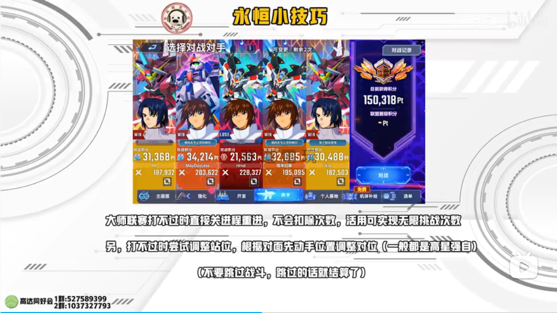 正文摘要:🎮【SD鋼彈G世紀永恆】大師聯賽PVP小撇步懶人包🎮 🏆 核心概念:無限挑戰技巧 • 遇到高戰力對手別慌張 • 發現打不贏就退出程式 💡 關鍵技巧 • 不跳過戰鬥直接參與 • 局面不利時立即退出程式 • 重啟後挑戰次數不會扣除 🎯 實用價值 • 可調整站位重新嘗試 • 能更換機體配置再戰 省流:大師聯賽打不贏就退程式,次數不扣還能重新調整! 《SD鋼彈G世紀永恆》大師聯賽PVP無限挑戰攻略:高戰力對戰必勝技巧與實戰應用 .video-container { position: relative; padding-bottom: 56.25%; padding-top: 30px; height: 0; overflow: hidden;}.video-container iframe,.video-container object,.video-container embed { position: absolute; top: 0; left: 0; width: 100%; height: 100%;}外連至此bilibili影片連結 大師聯賽挑戰基礎概念 在《SD鋼彈G世紀永恆》的大師聯賽中,玩家經常會遇到戰力遠超自己的強敵。面對這種情況,許多玩家會選擇直接跳過戰鬥,但其實有更聰明的應對方式。 重新啟動遊戲後,你會驚喜地發現挑戰次數並未被扣除。這是因為遊戲系統在正常戰鬥結算時才會記錄挑戰次數的消耗,而強制退出程式會中斷這個記錄過程。 利用這個機制,玩家可以針對同一個對手進行多次嘗試,每次都能調整不同的戰術配置。無論是重新安排機體站位,還是更換不同的機體組合,都能在不消耗寶貴挑戰次數的前提下進行實驗。 戰術調整與優化策略 每次重新挑戰時,建議根據前次戰鬥的觀察結果進行針對性調整。可以嘗試更換機體的武器配置、調整隊伍的攻擊順序,或是改變整體的戰術思路。這種反覆試驗的過程,不僅能提升勝率,更能深化對遊戲戰鬥系統的理解。 實戰應用注意事項 使用此技巧時需要注意操作的時機點。過早退出可能無法獲得足夠的戰況資訊,過晚退出則可能已經被系統記錄為挑戰失敗。建議在戰鬥進行到中段,能夠明確判斷勝負趨勢時執行退出操作。 此外,這個技巧特別適用於面對戰力差距較大的對手時使用。對於實力相近的對手,正常挑戰往往就能取得不錯的戰果,無需頻繁使用此方法。 以下廣告滑動後還有帖子內容var custom_call_MIR = function (params) {if ( params === null || params.hasAd === false ) {var divRowSide;for (let index = 0; index < ONEADs.length; index++) {if (ONEADs[index].pub.player_mode === "mobile-inread") {divRowSide = ONEADs[index].pub.slotobj;}}var ins = document.createElement('ins');ins.className = 'clickforceads';ins.setAttribute('style', 'display:inline-block;');ins.setAttribute('data-ad-zone', '18264');divRowSide.appendChild(ins);var js = document.createElement('script');js.async = true;js.type = 'text/javascript';js.setAttribute('src', '//cdn.holmesmind.com/js/init.js');js.onload = function(){console.log('[ONEAD MIR] ClickForce Loaded');};divRowSide.appendChild(js);}};var _ONEAD = {};_ONEAD.pub = {};_ONEAD.pub.slotobj = document.getElementById("oneadMIRDFPTag");_ONEAD.pub.slots = ["div-onead-ad"];_ONEAD.pub.uid = "1000509";_ONEAD.pub.external_url = "https://onead.onevision.com.tw/";_ONEAD.pub.scopes = ["spotbuy", "speed"];_ONEAD.pub.player_mode_div = "div-onead-ad";_ONEAD.pub.player_mode = "mobile-inread";_ONEAD.pub.queryAdCallback = custom_call_MIR;var ONEAD_pubs = ONEAD_pubs || [];ONEAD_pubs.push(_ONEAD);var truvidScript = document.createElement('script'); truvidScript.async = true; truvidScript.setAttribute('data-cfasync','false'); truvidScript.type = 'text/javascript'; truvidScript.src = '//stg.truvidplayer.com/index.php?sub_user_id=597&widget_id=3309&playlist_id=2381&m=a&cb=' + (Math.random() * 10000000000000000); var currentScript = document.currentScript || document.scripts[document.scripts.length - 1]; currentScript.parentNode.insertBefore(truvidScript, currentScript.nextSibling); 常見問題Q&A Q1: 使用程式退出法會不會對遊戲資料造成影響? A1: 正常情況下不會對遊戲資料造成損害,但建議適度使用,避免頻繁強制關閉程式。 Q2: 每次重新挑戰時敵方配置會改變嗎? A2: 敵方的機體配置通常保持不變,但AI的行動模式可能會有些微差異。 Q3: 這個技巧適用於所有PVP模式嗎? A3: 此技巧主要適用於大師聯賽,其他PVP模式的機制可能有所不同。 Q4: 如何判斷最佳的退出時機? A4: 建議在戰鬥進行2-3回合後,能夠清楚看出勝負趨勢時進行判斷。 Q5: 重新挑戰時應該優先調整什麼? A5: 建議優先調整機體站位和武器選擇,這些調整對戰局影響最為直接。 |