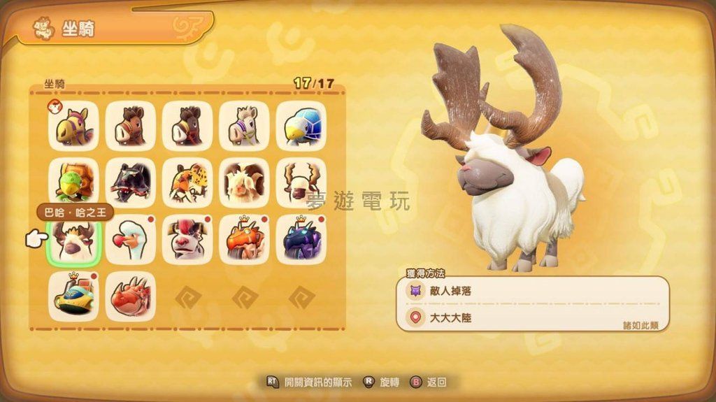 正文摘要:嗨!各位《幻想生活i》的玩家們,是不是也對遊戲中那隻擁有巨大犄角的「巴哈哈之王」坐騎充滿好奇,卻不知道該怎麼將牠納入自己的收藏呢?這篇攻略就是要來手把手教你如何取得這隻霸氣十足的坐騎,讓你輕鬆掌握它的入手方式,趕快跟著我們的腳步,一起征服這隻超吸睛的坐騎吧! 巴哈哈之王坐騎怎麼取得? 想把「巴哈哈之王」坐騎帶回家,其實它是由遊戲中「大大大陸」區域裡的「大肚大平原西邊」地圖,所棲息的一隻等級5的強敵「巴哈˙哈之王」擊敗後掉落取得。 👉 GM後台版 遊戲 推薦 ⬇️⬇️⬇️ 快速玩各種二次元動漫手遊app 以下廣告滑動後還有帖子內容var custom_call_MIR = function (params) {if ( params === null || params.hasAd === false ) {var divRowSide;for (let index = 0; index < ONEADs.length; index++) {if (ONEADs[index].pub.player_mode === "mobile-inread") {divRowSide = ONEADs[index].pub.slotobj;}}var ins = document.createElement('ins');ins.className = 'clickforceads';ins.setAttribute('style', 'display:inline-block;');ins.setAttribute('data-ad-zone', '18264');divRowSide.appendChild(ins);var js = document.createElement('script');js.async = true;js.type = 'text/javascript';js.setAttribute('src', '//cdn.holmesmind.com/js/init.js');js.onload = function(){console.log('[ONEAD MIR] ClickForce Loaded');};divRowSide.appendChild(js);}};var _ONEAD = {};_ONEAD.pub = {};_ONEAD.pub.slotobj = document.getElementById("oneadMIRDFPTag");_ONEAD.pub.slots = ["div-onead-ad"];_ONEAD.pub.uid = "1000509";_ONEAD.pub.external_url = "https://onead.onevision.com.tw/";_ONEAD.pub.scopes = ["spotbuy", "speed"];_ONEAD.pub.player_mode_div = "div-onead-ad";_ONEAD.pub.player_mode = "mobile-inread";_ONEAD.pub.queryAdCallback = custom_call_MIR;var ONEAD_pubs = ONEAD_pubs || [];ONEAD_pubs.push(_ONEAD);var truvidScript = document.createElement('script'); truvidScript.async = true; truvidScript.setAttribute('data-cfasync','false'); truvidScript.type = 'text/javascript'; truvidScript.src = '//stg.truvidplayer.com/index.php?sub_user_id=597&widget_id=3309&playlist_id=2381&m=a&cb=' + (Math.random() * 10000000000000000); var currentScript = document.currentScript || document.scripts[document.scripts.length - 1]; currentScript.parentNode.insertBefore(truvidScript, currentScript.nextSibling); 《幻想生活i》巴哈哈之王坐騎常見問題Q&A Q1:巴哈哈之王坐騎只能透過打怪掉落嗎? A1:是的,目前在《幻想生活i》中,巴哈哈之王坐騎只能透過擊敗特定的強敵「巴哈˙哈之王」後,纔有機會掉落取得。 Q2:巴哈˙哈之王會在遊戲的哪個區域出現? A2:巴哈˙哈之王主要會出現在「大大大陸」的「大肚大平原西邊」地圖區域。 Q3:為什麼我傳送到大肚大平原西邊,卻找不到巴哈˙哈之王? A3:建議您傳送到「大肚大平原西邊」區域內的「野牛的據點」,這樣巴哈˙哈之王出現的機率會比較高喔! |