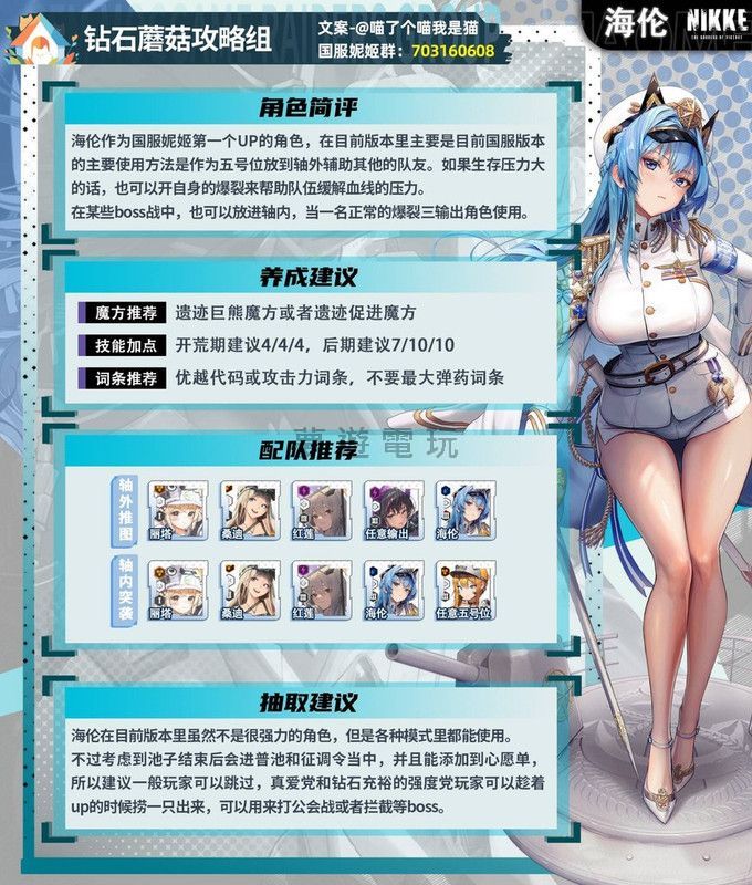 《勝利女神:新的希望》在近期更新後,遊戲內新增了包含限定角色「海倫」在內的十六名SSR角色。相信不少指揮官們都想知道,這位全新加入的「海倫」要怎麼培養才能發揮最大戰力?而這次一同登場的SSR角色們,她們的強