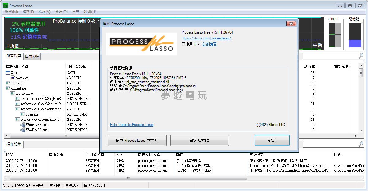 正文摘要:replyreload += ',' + 2390004;版本:v15.1.1.26 更新日期:2024年07月26日 告別卡頓!Process Lasso 讓你的電腦重獲新生! 你的電腦是不是常常卡頓、反應慢半拍?想找一款真正有用的電腦優化軟體,讓系統跑得更順暢嗎?今天就要來為大家介紹一款超實用的【電腦處理程序最佳化】神器—— Process Lasso v15.1.1.26 安裝版!這款軟體專為 Windows 系統設計,不僅能專業管理、精準微調你的電腦處理程序,更能顯著提升系統反應速度與整體穩定性,讓你告別電腦當機、程式無回應的惡夢! Process Lasso 的核心技術在於它獨家專利的 ProBalance 演算法,這項「過載抑制」功能可以智慧地自動調整背景執行程式的優先順序,有效防止它們佔用過多系統資源,從而避免 CPU 資源被單一程式耗盡、系統卡頓甚至當機的狀況。不管你是專業級玩家還是日常使用,Process Lasso 都能提供卓越的效能控制,讓你的電腦保持在最佳狀態! 👉 GM後台版 遊戲 推薦 ⬇️⬇️⬇️ 快速玩各種二次元動漫手遊app 軟體名稱:Process Lasso 軟體版本:v15.1.1.26 版本類型:安裝版 軟體語言:多語繁中 檔案大小:5.70MB 作業系統:Windows 軟體官方網站:https://bitsum.com/ Process Lasso 強大功能與特色一覽 除了獨家的 ProBalance 技術,Process Lasso 還擁有一系列讓人驚豔的強大功能,絕對是電腦玩家的「必備密技」: ProBalance 動態優先順序最佳化:核心功能,智慧調整程式優先級,確保系統流暢。 CPU 親和性設定:自訂程式使用哪些 CPU 核心,精準分配資源。 禁止執行處理程序:一勞永逸地阻止特定程式啟動。 執行個體計數限制:控制同一程式同時運行的數量,避免資源浪費。 系統反應速度圖表:視覺化監控系統效能變化,數據一目了然。 處理程序監控:即時掌握所有運行中的程式狀態。 自動重新啟動與保持喚醒:確保重要程式持續運行,不會因閒置而休眠。 區分 svchost.exe 執行個體:詳細識別 svchost.exe 的不同服務,方便管理。 極低資源消耗:軟體本身佔用資源極少(獨立處理引擎甚至不到 1 MB RAM),不影響系統效能。 事件記錄:詳細記錄軟體操作與系統優化過程。 這些功能共同確保 Process Lasso 能為你帶來高效的處理程序管理,讓電腦運作順暢無阻。想了解更多更新資訊,可以前往 Process Lasso 版本更新歷史 查看。 Process Lasso v15.1.1.26 安裝與使用指南 Process Lasso v15.1.1.26 為「安裝版」軟體,這意味著你下載後需要執行安裝程序。整個安裝流程非常簡單,跟一般 Windows 軟體安裝步驟大同小異,只要依照安裝精靈的指示一步步操作即可完成。 重要提醒:由於這類系統優化軟體,有時可能會被部分防毒軟體誤判為威脅。如果你在下載或安裝過程中遇到防毒軟體提示,建議可以暫時關閉防毒軟體,待安裝完成並確認安全後再重新開啟。請務必從可靠來源下載,並理解潛在風險。 立即免費下載:Process Lasso v15.1.1.26 安裝版 想要親身體驗 Process Lasso 帶來的電腦效能提升嗎?立即透過以下連結免費下載這款強大的電腦處理程序最佳化軟體吧! Free Download: Process Lasso v15.1.1.26 電腦處理程序最佳化 下載 所有站內附件皆會附上安全掃描報告請會員查看純淨度百分比後判斷使用(adsbygoogle = window.adsbygoogle || []).push({});相關檔案須知:取得檔案前,請先詳細閱讀文章內容避免不必要錯誤與誤會發生。也可多參考文章討論樓層內容了解附件檔案相關討論資訊。 【此文章部分內容隱藏中】 解除隱藏說明教學點擊下方 繼續閱讀文章 後請仔細觀看文章內容 並依照指示進行下一步最後完成解除隱藏後系統會回到此文章自動顯示隱藏內容~繼續閱讀 replyreload += ',' + 2390004; |