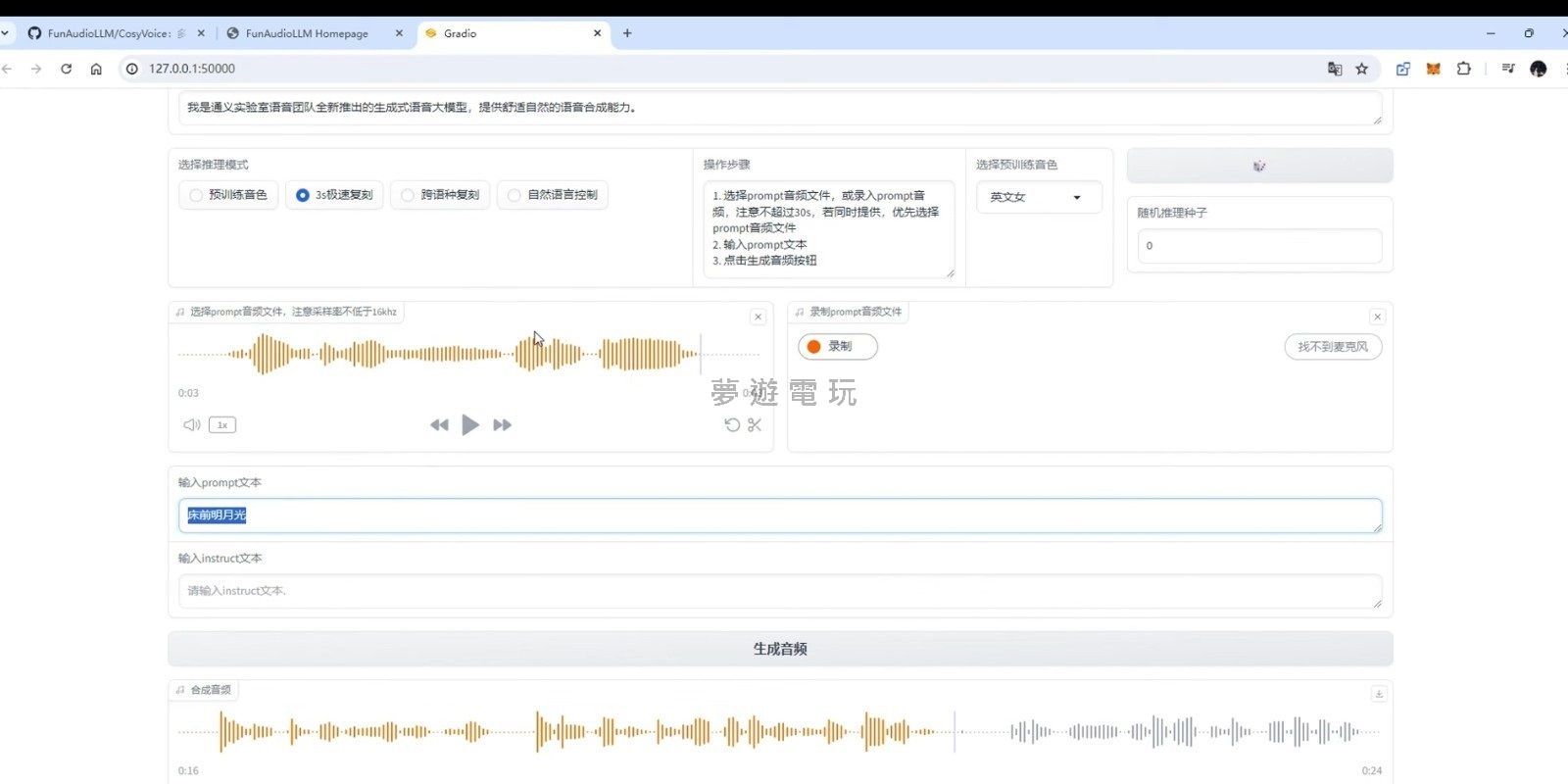 正文摘要:replyreload += ',' + 2390008;版本:優化版 更新日期:2024年07月26日 關於 CosyVoice 優化版:AI 聲音克隆的未來 你是不是也曾經幻想過,只需短短幾秒就能完美複製任何人的聲音?現在,這個夢想成為了現實!我們今天要介紹的正是近期在網路上討論度超高的《CosyVoice 優化版》,這是一款功能強大到不可思議的 AI 聲音克隆軟體,特別設計成「一鍵啟動包」,讓你輕鬆上手,無需複雜的如何安裝步驟,就能體驗到頂尖的語音技術。 👉 GM後台版 遊戲 推薦 ⬇️⬇️⬇️ 快速玩各種二次元動漫手遊app CosyVoice 優化版:AI 聲音克隆的驚人功能與密技 《CosyVoice 優化版》之所以能脫穎而出,主要在於它一系列令人驚豔的密技功能: 超神AI聲音克隆:僅需提供短短 3 秒的音訊,CosyVoice 就能極速複製目標聲音的特徵,重現出幾乎一模一樣的語音。這個功能對於需要免費聲音素材、語音替換或是個人化語音助理的使用者來說,簡直是夢寐以求的工具。 支援多語種與跨語種克隆:不論是中文、英文還是其他語言,CosyVoice 都能輕鬆應對。更厲害的是,它還支援「跨語種」克隆,這意味著你可以用母語的聲音特徵,去生成另一種語言的內容,效果令人讚嘆! 精準語氣標籤控制:除了聲音本身的複製,CosyVoice 還能讓你透過語氣標籤來精細調整生成語音的情緒和語氣,讓輸出更自然、更富有表現力。 30秒免費AI變聲:想要快速體驗 AI 變聲的魅力嗎?《CosyVoice 優化版》提供 30 秒的免費AI變聲功能,讓你即刻感受聲音複製的教學效果,保證「像到爆」! CosyVoice 優化版檔案資訊一覽 在下載之前,讓我們先來看看這款強大軟體的相關檔案細節: 軟體名稱: CosyVoice 軟體版本: 優化版 軟體類型: 一鍵啟動包 (極簡安裝教學) 軟體語言: 多語 (支援多種語言介面與語音生成) 檔案大小: 8.3 GB 如何快速免費下載 CosyVoice 優化版 (一鍵啟動教學) 想要立即體驗《CosyVoice 優化版》的強大功能嗎?以下是步驟心得分享,教你如何安裝並開始使用這個 AI 聲音克隆工具。由於這是一個「一鍵啟動包」,你不需要進行傳統的繁瑣安裝步驟,只需簡單下載、解壓縮即可! - 點擊下方提供的下載鏈接。 - 等待檔案下載完成。請注意,檔案大小為 8.3 GB,可能需要一些時間,具體取決於你的網路速度。 下載完成後,找到壓縮檔案並進行解壓縮。 - 解壓縮完成後,你會在資料夾中找到啟動程式。通常,這類「一鍵啟動包」會有一個明確的執行檔,雙擊即可啟動軟體。 - 現在,你就可以開始享受《CosyVoice 優化版》帶來的免費AI聲音克隆樂趣了! 下載鏈接 Free Download: CosyVoice 優化版 AI 聲音克隆 免費下載 所有站內附件皆會附上安全掃描報告請會員查看純淨度百分比後判斷使用(adsbygoogle = window.adsbygoogle || []).push({});相關檔案須知:取得檔案前,請先詳細閱讀文章內容避免不必要錯誤與誤會發生。也可多參考文章討論樓層內容了解附件檔案相關討論資訊。 【此文章部分內容隱藏中】 解除隱藏說明教學點擊下方 繼續閱讀文章 後請仔細觀看文章內容 並依照指示進行下一步最後完成解除隱藏後系統會回到此文章自動顯示隱藏內容~繼續閱讀 replyreload += ',' + 2390008; |