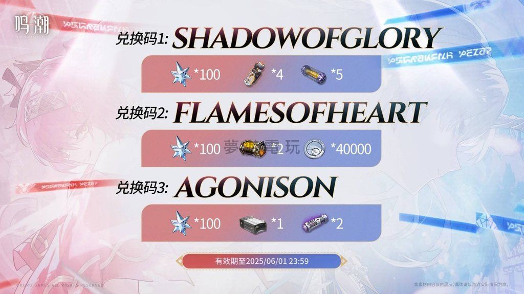 正文摘要:《鳴潮》2.4版本前瞻兌換碼全攻略:輕鬆入手星聲獎勵! 各位漂泊者們好!《鳴潮》2.4版本的「前瞻通訊」直播活動已經圓滿落幕囉。在這次的直播中,官方也特別釋出了超佛心的兌換碼,讓大家能夠輕鬆領取一定數量的星聲獎勵。這篇攻略將為大家整理這次2.4版本前瞻活動釋出的所有兌換碼,並教你怎麼快速領取,助你輕鬆累積資源! 這次2.4版本前瞻通訊所提供的兌換碼,各位漂泊者們可千萬別錯過囉!趕快打開遊戲,輸入以下序號就能領取獎勵: 【SHADOWOFGLORY】 【FLAMESOFHEART】 【AGONISON】 這些兌換碼的有效期限只到2025年6月1日23:59為止,時間相當有限,建議大家看完攻略後,馬上到遊戲內進行兌換領取,以免錯過。 👉 GM後台版 遊戲 推薦 ⬇️⬇️⬇️ 快速玩各種二次元動漫手遊app 《鳴潮》2.4前瞻兌換碼 常見問題Q&A Q1:《鳴潮》2.4前瞻兌換碼有哪些? A1:這次2.4版本前瞻直播中釋出的兌換碼包含:SHADOWOFGLORY、FLAMESOFHEART、AGONISON。 Q2:這些兌換碼可以獲得什麼獎勵? A2:輸入兌換碼後,玩家可以獲得一定數量的星聲獎勵。 Q3:兌換碼要怎麼領取? A3:請漂泊者們開啟《鳴潮》遊戲,直接在遊戲內找到兌換碼輸入介面並輸入序號即可領取獎勵。 Q4:兌換碼有使用期限嗎? A4:是的,這些兌換碼的有效期限至2025年6月1日23:59截止,逾期將無法使用,請務必盡快兌換。 以下廣告滑動後還有帖子內容var custom_call_MIR = function (params) {if ( params === null || params.hasAd === false ) {var divRowSide;for (let index = 0; index < ONEADs.length; index++) {if (ONEADs[index].pub.player_mode === "mobile-inread") {divRowSide = ONEADs[index].pub.slotobj;}}var ins = document.createElement('ins');ins.className = 'clickforceads';ins.setAttribute('style', 'display:inline-block;');ins.setAttribute('data-ad-zone', '18264');divRowSide.appendChild(ins);var js = document.createElement('script');js.async = true;js.type = 'text/javascript';js.setAttribute('src', '//cdn.holmesmind.com/js/init.js');js.onload = function(){console.log('[ONEAD MIR] ClickForce Loaded');};divRowSide.appendChild(js);}};var _ONEAD = {};_ONEAD.pub = {};_ONEAD.pub.slotobj = document.getElementById("oneadMIRDFPTag");_ONEAD.pub.slots = ["div-onead-ad"];_ONEAD.pub.uid = "1000509";_ONEAD.pub.external_url = "https://onead.onevision.com.tw/";_ONEAD.pub.scopes = ["spotbuy", "speed"];_ONEAD.pub.player_mode_div = "div-onead-ad";_ONEAD.pub.player_mode = "mobile-inread";_ONEAD.pub.queryAdCallback = custom_call_MIR;var ONEAD_pubs = ONEAD_pubs || [];ONEAD_pubs.push(_ONEAD);var truvidScript = document.createElement('script'); truvidScript.async = true; truvidScript.setAttribute('data-cfasync','false'); truvidScript.type = 'text/javascript'; truvidScript.src = '//stg.truvidplayer.com/index.php?sub_user_id=597&widget_id=3309&playlist_id=2381&m=a&cb=' + (Math.random() * 10000000000000000); var currentScript = document.currentScript || document.scripts[document.scripts.length - 1]; currentScript.parentNode.insertBefore(truvidScript, currentScript.nextSibling); |