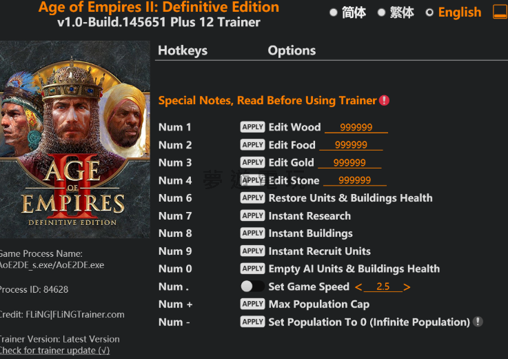 正文摘要:replyreload += ',' + 2390652; 想在《世紀帝國II:決定版》中體驗更自由的遊戲方式嗎?風靈月影修改器讓你可以輕鬆調整遊戲內的各種數值,包括木材、食物、黃金、石頭等資源,還能實現即時建造和研究功能。這款修改器專為單人遊戲設計,支援最新的遊戲版本,讓你在練習或娛樂時更加得心應手。 👉 GM後台版 遊戲 推薦 ⬇️⬇️⬇️ 快速玩各種二次元動漫手遊app 修改器基本資訊 這款風靈月影修改器提供了12種不同的功能選項,適用於《世紀帝國II:決定版》v1.0-Build.145651以上版本。最新更新日期為2025年6月1日,確保與遊戲的相容性。 重要提醒:此修改器僅適用於單人遊戲模式,無法在多人連線遊戲中使用。 修改器功能詳細說明 以下是修改器提供的所有功能及對應的快捷鍵: Num 1 – 編輯木材數量Num 2 – 編輯食物數量Num 3 – 編輯黃金數量Num 4 – 編輯石頭數量Num 6 – 恢復單位與建築物血量Num 7 – 即時研究科技Num 8 – 即時建造建築物Num 9 – 即時招募單位Num 0 – 清空AI單位與建築物血量Num . – 設定遊戲速度Num + – 最大人口上限Num - – 設定人口為0(無限人口) 修改器下載與安裝步驟 首先,確認你的《世紀帝國II:決定版》版本為v1.0-Build.145651或更新版本點擊下方連結下載修改器檔案:Age of Empires II Definitive Edition v1.0-Build.145651 Plus 12 Trainer.exe下載連結:下方下載完成後,將修改器檔案放置在方便存取的資料夾中執行遊戲前,先以系統管理員身分執行修改器接著啟動《世紀帝國II:決定版》並進入單人遊戲模式在遊戲中按下對應的數字鍵即可啟用相應功能 下載連結: 所有站內附件皆會附上安全掃描報告請會員查看純淨度百分比後判斷使用(adsbygoogle = window.adsbygoogle || []).push({});相關檔案須知:取得檔案前,請先詳細閱讀文章內容避免不必要錯誤與誤會發生。也可多參考文章討論樓層內容了解附件檔案相關討論資訊。 【此文章部分內容隱藏中】 解除隱藏說明教學點擊下方 繼續閱讀文章 後請仔細觀看文章內容 並依照指示進行下一步最後完成解除隱藏後系統會回到此文章自動顯示隱藏內容~繼續閱讀 使用注意事項 使用修改器時需要特別注意以下幾點: 修改器僅支援單人遊戲模式,請勿在多人遊戲中使用建議在使用修改器前先備份遊戲存檔部分防毒軟體可能會誤判修改器為惡意程式,請將其加入白名單如果修改器無法正常運作,請確認遊戲版本是否相符使用修改器可能會影響遊戲成就的解鎖 世紀帝國II決定版修改器常見問題Q&A Q:修改器可以在多人遊戲中使用嗎? 不可以,這款修改器僅適用於單人遊戲模式,在多人遊戲中使用可能會導致遊戲異常或被系統偵測。 Q:為什麼按下快捷鍵後沒有反應? 請確認修改器是否以系統管理員身分執行,並檢查遊戲版本是否符合要求。另外,確保你在單人遊戲模式中使用。 Q:使用修改器會影響遊戲存檔嗎? 修改器主要影響當前遊戲進程中的數值,但建議在使用前先備份重要的遊戲存檔以防萬一。 Q:修改器支援哪些遊戲版本? 目前支援《世紀帝國II:決定版》v1.0-Build.145651以上版本,如果你的遊戲版本較舊,可能無法正常使用。 Q:防毒軟體一直提示修改器有問題怎麼辦? 這是常見的誤判情況,你可以將修改器檔案加入防毒軟體的白名單中,或暫時關閉即時防護來使用修改器。 Q:可以同時使用多個功能嗎? 可以的,你可以根據需要同時啟用多個修改功能,例如同時修改資源數量和啟用即時建造功能。 replyreload += ',' + 2390652; |