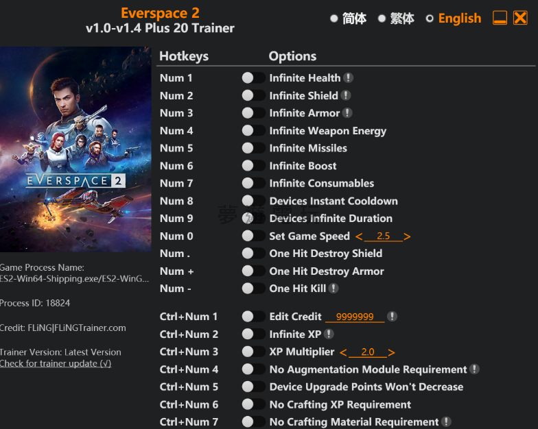 正文摘要:replyreload += ',' + 2390655; 想在《永恆空間2》(Everspace 2)中體驗更輕鬆的遊戲過程嗎?風靈月影修改器為你提供了多達20種不同的修改功能,從基本的無限生命值到進階的一擊必殺,讓你可以自由調整遊戲難度,享受更順暢的太空冒險體驗! 👉 GM後台版 遊戲 推薦 ⬇️⬇️⬇️ 快速玩各種二次元動漫手遊app 修改器基本資訊 這款風靈月影修改器支援《永恆空間2》v1.0到v1.4以上版本,最後更新日期為2025年5月31日,確保與遊戲最新版本的相容性。修改器提供20種不同的功能選項,涵蓋戰鬥、資源管理、升級系統等各個遊戲面向。 戰鬥系統修改功能 基礎防禦強化 修改器提供三重防護系統的無限化功能: Num 1 - 無限生命值:當生命值下降時自動生效Num 2 - 無限護盾:當護盾受損時自動恢復Num 3 - 無限裝甲:當裝甲減少時立即補充 武器與裝備強化 讓你的戰鬥更加持久且有效: Num 4 - 無限武器能量:再也不用擔心能量耗盡Num 5 - 無限飛彈:飛彈數量永遠充足Num 6 - 無限推進器:隨時保持高速移動Num 7 - 無限消耗品:各種補給品用不完 裝置系統優化 Num 8 - 裝置瞬間冷卻:所有裝置技能立即可用Num 9 - 裝置無限持續時間:技能效果永久維持 進階戰鬥功能 遊戲速度控制 Num 0 - 設定遊戲速度:可以調整整體遊戲進行的速度,讓你更好掌控戰鬥節奏。 一擊必殺系統 這套功能讓你可以快速解決敵人: Num . - 一擊破壞護盾:瞬間摧毀敵人護盾Num + - 一擊破壞裝甲:立即破壞敵人裝甲Num - - 一擊必殺:在敵人護盾和裝甲都被摧毀後生效 要達到真正的一擊必殺效果,建議搭配使用「一擊破壞護盾」和「一擊破壞裝甲」功能。 資源與升級系統修改 貨幣與經驗值管理 Ctrl+Num 1 - 編輯信用點:打開背包時生效,讓你擁有充足資金Ctrl+Num 2 - 無限經驗值:擊毀敵艦時獲得大量經驗Ctrl+Num 3 - 經驗值倍數:自訂經驗值獲得倍率 需要注意的是,等級上限可能會根據遊戲版本有所不同,通常為14級或更高。 升級系統優化 Ctrl+Num 4 - 無需強化模組:啟用後可以直接升級飛船,不需要強化模組Ctrl+Num 5 - 裝置升級點數不減少:升級裝置時點數不會被消耗 製作系統便利功能 Ctrl+Num 6 - 無需製作經驗值:製作物品時不需要滿足經驗值需求Ctrl+Num 7 - 無需製作材料:即使沒有材料也能製作物品(如果有材料會正常消耗) 修改器下載與安裝 你可以透過以下連結下載風靈月影修改器: 檔案名稱:Everspace 2 v1.0-v1.4 Plus 20 Trainer.exe 所有站內附件皆會附上安全掃描報告請會員查看純淨度百分比後判斷使用(adsbygoogle = window.adsbygoogle || []).push({});相關檔案須知:取得檔案前,請先詳細閱讀文章內容避免不必要錯誤與誤會發生。也可多參考文章討論樓層內容了解附件檔案相關討論資訊。 【此文章部分內容隱藏中】 解除隱藏說明教學點擊下方 繼續閱讀文章 後請仔細觀看文章內容 並依照指示進行下一步最後完成解除隱藏後系統會回到此文章自動顯示隱藏內容~繼續閱讀 下載完成後,只需要執行修改器檔案,然後啟動遊戲即可開始使用各項功能。記得在使用修改器前先備份存檔,以免發生意外狀況。 永恆空間2修改器_常見問題Q&A Q:修改器支援哪些遊戲版本? 支援《永恆空間2》v1.0到v1.4以上的所有版本,並會持續更新以相容新版本。 Q:使用修改器會影響遊戲存檔嗎? 建議在使用前先備份存檔,雖然修改器設計安全,但備份能確保資料安全。 Q:一擊必殺功能為什麼有時候無效? 一擊必殺功能只在敵人護盾和裝甲都被摧毀後才會生效,建議搭配護盾和裝甲破壞功能使用。 Q:經驗值修改有等級上限嗎? 是的,等級上限會根據遊戲版本而定,通常為14級或更高,具體上限依遊戲版本而異。 Q:製作材料修改功能如何運作? 啟用後即使沒有材料也能製作物品,但如果背包中有相應材料,系統仍會正常消耗這些材料。 replyreload += ',' + 2390655; |