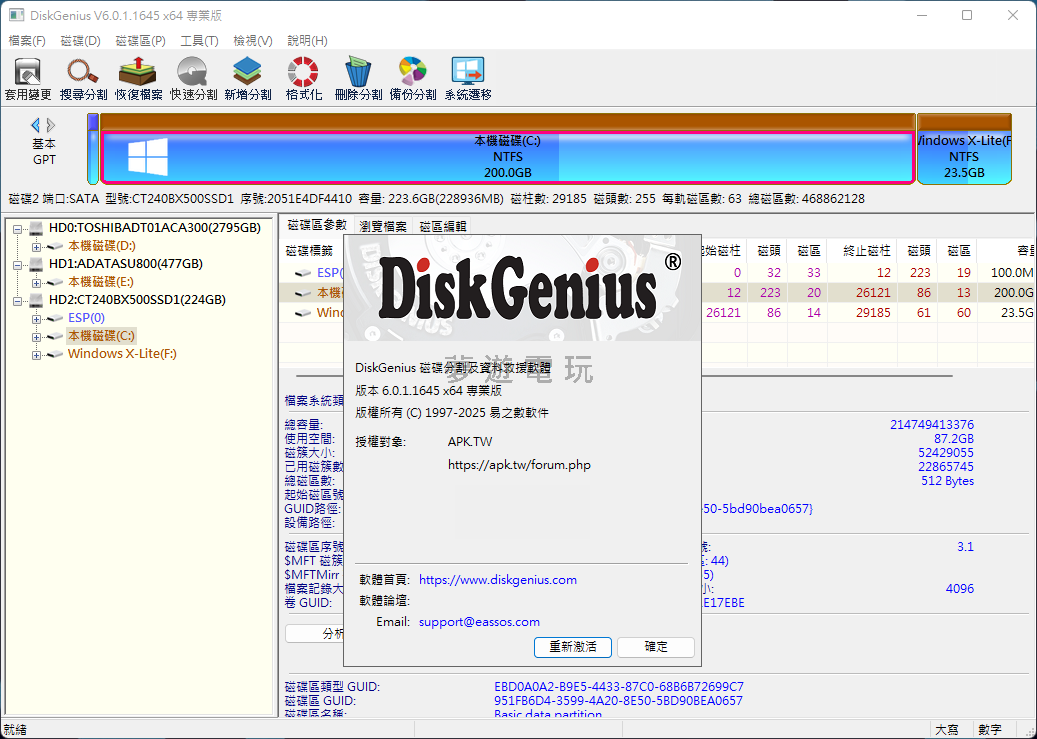 replyreload += ',' + 2390735;版本:6.0.1.1645 雙位元 更新日期:2024年05月18日 您的專業級磁碟好幫手:DiskGenius Pro 免安裝版 在數位時代,管理硬碟、分割磁區,甚至是搶救意外遺失的寶貴資料,是許多電腦使