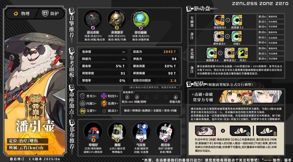 正文摘要:《絕區零》潘引壺養成配裝指南:打造最強防護型輔助 在《絕區零》的世界裡,潘引壺是一位A級的物理屬性防護型代理人,專門為隊伍提供堅實的防護與輔助。如果你還不確定潘引壺該怎麼培養、音擎跟驅動盤要怎麼搭配,這篇攻略為你整理了重點資訊,讓你輕鬆掌握潘引壺的養成方向! 潘引壺核心培養思路:攻擊力與能量回復 潘引壺的攻擊力並非單純用於輸出,它能將一部分攻擊力轉化成貫通加成,為隊友提供強力的輔助效果。通常建議潘引壺的攻擊力需達到一定數值以上才算合格,這點在培養思維上與耀嘉音有幾分相似之處。 一旦潘引壺的攻擊力達到預期目標,接下來的培養重點就是疊加能量回復詞條。這麼做的目的,是為了確保她能夠穩定且頻繁地釋放強化特殊技,為整個隊伍帶來持續的增益與保護。 至於其他詞條,例如暴擊、穿透、衝擊力等,你可以根據自己的隊伍配置與實戰需求來彈性選擇搭配,並沒有強制性的要求。 潘引壺音擎與驅動盤推薦搭配 想知道潘引壺的音擎該選哪一把?驅動盤又該怎麼搭配才能發揮最大效益嗎?下方這張重點整理圖將為你提供最直觀的推薦,包含詳細的配置建議,讓你一目瞭然! 👉 GM後台版 遊戲 推薦 ⬇️⬇️⬇️ 快速玩各種二次元動漫手遊app 《絕區零》潘引壺常見問題Q&A 以下廣告滑動後還有帖子內容var custom_call_MIR = function (params) {if ( params === null || params.hasAd === false ) {var divRowSide;for (let index = 0; index < ONEADs.length; index++) {if (ONEADs[index].pub.player_mode === "mobile-inread") {divRowSide = ONEADs[index].pub.slotobj;}}var ins = document.createElement('ins');ins.className = 'clickforceads';ins.setAttribute('style', 'display:inline-block;');ins.setAttribute('data-ad-zone', '18264');divRowSide.appendChild(ins);var js = document.createElement('script');js.async = true;js.type = 'text/javascript';js.setAttribute('src', '//cdn.holmesmind.com/js/init.js');js.onload = function(){console.log('[ONEAD MIR] ClickForce Loaded');};divRowSide.appendChild(js);}};var _ONEAD = {};_ONEAD.pub = {};_ONEAD.pub.slotobj = document.getElementById("oneadMIRDFPTag");_ONEAD.pub.slots = ["div-onead-ad"];_ONEAD.pub.uid = "1000509";_ONEAD.pub.external_url = "https://onead.onevision.com.tw/";_ONEAD.pub.scopes = ["spotbuy", "speed"];_ONEAD.pub.player_mode_div = "div-onead-ad";_ONEAD.pub.player_mode = "mobile-inread";_ONEAD.pub.queryAdCallback = custom_call_MIR;var ONEAD_pubs = ONEAD_pubs || [];ONEAD_pubs.push(_ONEAD);var truvidScript = document.createElement('script'); truvidScript.async = true; truvidScript.setAttribute('data-cfasync','false'); truvidScript.type = 'text/javascript'; truvidScript.src = '//stg.truvidplayer.com/index.php?sub_user_id=597&widget_id=3309&playlist_id=2381&m=a&cb=' + (Math.random() * 10000000000000000); var currentScript = document.currentScript || document.scripts[document.scripts.length - 1]; currentScript.parentNode.insertBefore(truvidScript, currentScript.nextSibling); Q:潘引壺在隊伍中扮演什麼角色? 潘引壺是《絕區零》裡一位A級的物理屬性防護型代理人,主要職責是為隊伍提供防護能力,並透過攻擊力轉化為隊友提供貫通加成輔助。 Q:潘引壺在培養時最優先的屬性是什麼? 潘引壺在培養時,最優先需要關注的是她的攻擊力,因為攻擊力會直接影響她能提供的貫通輔助效果。 Q:為什麼潘引壺的攻擊力很重要? 潘引壺的攻擊力會按一定比例轉化為貫通加成,這個加成可以直接輔助隊友,提升隊伍的整體輸出能力。 Q:能量回復詞條對潘引壺來說有什麼幫助? 當潘引壺的攻擊力達標後,能量回復詞條變得非常重要。它能幫助潘引壺更快地積攢能量,穩定地釋放她的強化特殊技,確保隊伍能持續獲得增益效果。 Q:潘引壺的音擎跟驅動盤要怎麼選擇? 關於潘引壺的音擎(武器)和驅動盤(裝備)的具體推薦搭配,請參考文章中提供的「潘引壺音擎與驅動盤推薦搭配」圖片,裡面有詳細的圖文說明。 Q:除了攻擊和能量回復,潘引壺還能考慮哪些其他詞條? 在攻擊力和能量回復達標後,你可以根據個人喜好或隊伍需求,彈性考慮暴擊、穿透、衝擊力等詞條,這些都是可選的配置。 |