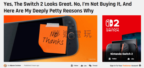 資深編輯的「Switch 2」糾結:是拒絕還是真香預警? 近期,資深遊戲媒體 THEGAMER 的編輯艾莉森·考克蘭(Allyson Cochran)發表了一篇充滿個人情緒與幽默感的文章,她以八個「小小抱怨」點,生動地闡述了自己當前