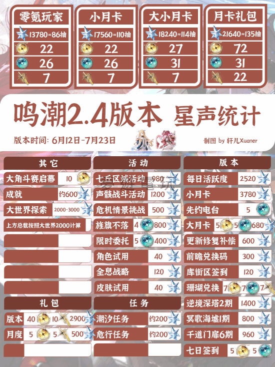 正文摘要:各位《鳴潮》的漂泊者們大家好!是不是很期待在最新的2.4版本中,究竟能累積到多少珍貴的「星聲」呢?這些「星聲」可是你在遊戲中抽取限定角色、強力聲骸或珍稀武器的關鍵資源!別擔心,今天這篇攻略將為你整理出2.4版本預計可以獲得的星聲總數量。 如果你正好奇在2.4版本中,能夠存到多少星聲,好為接下來的抽卡計畫做準備,那麼這篇資訊就非常適合你參考。我們將帶你快速掌握版本內各項活動、任務以及日常累積可獲得的星聲概況。 👉 GM後台版 遊戲 推薦 ⬇️⬇️⬇️ 快速玩各種二次元動漫手遊app 想了解更多《鳴潮》的最新資訊與深度攻略,歡迎持續關注官方專區,那裡會有更多關於遊戲的最新動態與實用內容喔! 以下廣告滑動後還有帖子內容var custom_call_MIR = function (params) {if ( params === null || params.hasAd === false ) {var divRowSide;for (let index = 0; index < ONEADs.length; index++) {if (ONEADs[index].pub.player_mode === "mobile-inread") {divRowSide = ONEADs[index].pub.slotobj;}}var ins = document.createElement('ins');ins.className = 'clickforceads';ins.setAttribute('style', 'display:inline-block;');ins.setAttribute('data-ad-zone', '18264');divRowSide.appendChild(ins);var js = document.createElement('script');js.async = true;js.type = 'text/javascript';js.setAttribute('src', '//cdn.holmesmind.com/js/init.js');js.onload = function(){console.log('[ONEAD MIR] ClickForce Loaded');};divRowSide.appendChild(js);}};var _ONEAD = {};_ONEAD.pub = {};_ONEAD.pub.slotobj = document.getElementById("oneadMIRDFPTag");_ONEAD.pub.slots = ["div-onead-ad"];_ONEAD.pub.uid = "1000509";_ONEAD.pub.external_url = "https://onead.onevision.com.tw/";_ONEAD.pub.scopes = ["spotbuy", "speed"];_ONEAD.pub.player_mode_div = "div-onead-ad";_ONEAD.pub.player_mode = "mobile-inread";_ONEAD.pub.queryAdCallback = custom_call_MIR;var ONEAD_pubs = ONEAD_pubs || [];ONEAD_pubs.push(_ONEAD);var truvidScript = document.createElement('script'); truvidScript.async = true; truvidScript.setAttribute('data-cfasync','false'); truvidScript.type = 'text/javascript'; truvidScript.src = '//stg.truvidplayer.com/index.php?sub_user_id=597&widget_id=3309&playlist_id=2381&m=a&cb=' + (Math.random() * 10000000000000000); var currentScript = document.currentScript || document.scripts[document.scripts.length - 1]; currentScript.parentNode.insertBefore(truvidScript, currentScript.nextSibling); 《鳴潮》2.4星聲數量統計常見問題Q&A Q:星聲在《鳴潮》遊戲中主要用來做什麼? 星聲是《鳴潮》遊戲裡最重要的抽卡代幣,可以用來抽取限定角色、武器、聲骸,或是兌換其他遊戲內珍稀資源。 Q:除了版本更新統計外,平時要怎麼獲得星聲? 平時可以透過完成日常任務、主線與支線任務、參與活動、探索地圖、開啟寶箱、提升等級以及深境螺旋等挑戰模式來穩定獲得星聲。 Q:2.4版本中的星聲數量統計包含哪些項目? 通常會包含版本更新獎勵、新開放的活動任務、新增的地圖探索、深境螺旋更新、每日活躍獎勵、以及版本期間可能推出的特殊禮包或補償。 Q:如果我想在2.4版本集中抽取特定角色,應該怎麼規劃星聲的使用? 建議先評估該角色的強度與自身隊伍的需求,並參考預計的星聲總量。可以優先抽取角色本身,若星聲充足再考慮抽取專屬武器或命座。 Q:錯過2.4版本活動的星聲獎勵,還有機會補領嗎? 大部分限時活動的星聲獎勵,一旦錯過就無法補領。因此建議漂泊者們務必留意遊戲內活動時間,準時參與以確保不會錯過任何獎勵。 |
