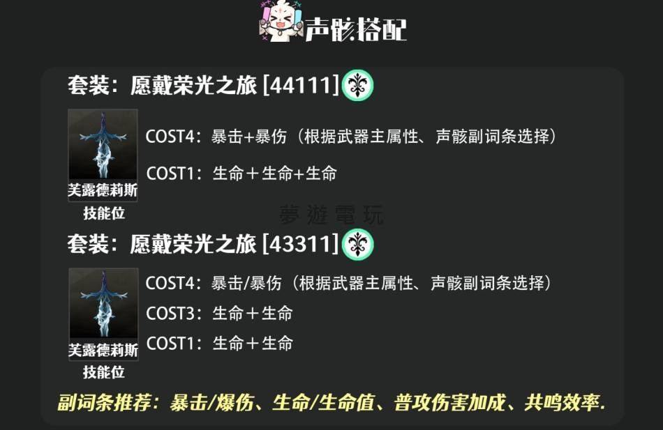 正文摘要:《鳴潮》2.4版本推出了全新角色卡提希婭,許多玩家都在好奇,這位新角色的聲骸究竟該怎麼搭配,才能完美發揮她的技能組。這篇攻略將為大家整理卡提希婭的聲骸選擇推薦,希望能幫助大家快速上手! 👉 GM後台版 遊戲 推薦 ⬇️⬇️⬇️ 快速玩各種二次元動漫手遊app 以下廣告滑動後還有帖子內容var custom_call_MIR = function (params) {if ( params === null || params.hasAd === false ) {var divRowSide;for (let index = 0; index < ONEADs.length; index++) {if (ONEADs[index].pub.player_mode === "mobile-inread") {divRowSide = ONEADs[index].pub.slotobj;}}var ins = document.createElement('ins');ins.className = 'clickforceads';ins.setAttribute('style', 'display:inline-block;');ins.setAttribute('data-ad-zone', '18264');divRowSide.appendChild(ins);var js = document.createElement('script');js.async = true;js.type = 'text/javascript';js.setAttribute('src', '//cdn.holmesmind.com/js/init.js');js.onload = function(){console.log('[ONEAD MIR] ClickForce Loaded');};divRowSide.appendChild(js);}};var _ONEAD = {};_ONEAD.pub = {};_ONEAD.pub.slotobj = document.getElementById("oneadMIRDFPTag");_ONEAD.pub.slots = ["div-onead-ad"];_ONEAD.pub.uid = "1000509";_ONEAD.pub.external_url = "https://onead.onevision.com.tw/";_ONEAD.pub.scopes = ["spotbuy", "speed"];_ONEAD.pub.player_mode_div = "div-onead-ad";_ONEAD.pub.player_mode = "mobile-inread";_ONEAD.pub.queryAdCallback = custom_call_MIR;var ONEAD_pubs = ONEAD_pubs || [];ONEAD_pubs.push(_ONEAD);var truvidScript = document.createElement('script'); truvidScript.async = true; truvidScript.setAttribute('data-cfasync','false'); truvidScript.type = 'text/javascript'; truvidScript.src = '//stg.truvidplayer.com/index.php?sub_user_id=597&widget_id=3309&playlist_id=2381&m=a&cb=' + (Math.random() * 10000000000000000); var currentScript = document.currentScript || document.scripts[document.scripts.length - 1]; currentScript.parentNode.insertBefore(truvidScript, currentScript.nextSibling); 《鳴潮》卡提希婭聲骸搭配常見問題Q&A Q:鳴潮的聲骸系統是什麼? A:聲骸是《鳴潮》中類似於裝備的系統,玩家可以透過討伐敵人獲得聲骸,每個聲骸都帶有不同的主詞條與副詞條,並且會提供特殊的技能效果,讓角色能力大幅提升。 Q:卡提希婭的聲骸搭配重點是什麼? A:通常角色聲骸搭配會圍繞著角色本身的技能特性與定位來選擇。例如,輸出型角色會著重攻擊、暴擊等屬性,輔助型角色則可能偏向充能、生命或防禦。卡提希婭的具體搭配則需根據其詳細技能組來判斷。 Q:聲骸的主詞條和副詞條怎麼選? A:主詞條是聲骸固定位置上的主要屬性,通常對角色提升最大,選擇與角色傷害類型(如攻擊加成、屬性傷害加成)或功能(如能量回復效率)最相關的詞條。副詞條則是在強化聲骸過程中隨機生成,應優先選擇對角色有益的攻擊、暴擊率、暴擊傷害、能量回復等屬性。 Q:如何有效率地刷取聲骸? A:刷取聲骸主要透過討伐世界地圖上的精英怪物與地圖BOSS。遊戲通常會提供聲骸掉落機率加成的活動或道具,玩家可以關注遊戲內公告,並根據自身角色需求,選擇效益最高的路線或敵人進行重複挑戰。 Q:卡提希婭的聲骸等級上限是多少? A:聲骸的等級上限與其稀有度有關,稀有度越高的聲骸等級上限也越高,能提供的屬性加成也越多。玩家可以使用其他多餘的聲骸作為材料,或是專用的聲骸經驗道具來提升聲骸等級。 |