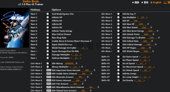 正文摘要:replyreload += ',' + 2393057; 想要在《Stellar Blade 星劍》中體驗更自由的遊戲方式嗎?這款由風靈月影製作的修改器提供了多達43種不同的功能,讓你可以輕鬆調整遊戲難度、修改角色數值,甚至控制遊戲速度。無論你是想要無壓力地欣賞劇情,還是想要快速刷經驗升級,這個修改器都能滿足你的需求。 👉 GM後台版 遊戲 推薦 ⬇️⬇️⬇️ 快速玩各種二次元動漫手遊app 修改器基本資訊 這款修改器支援《Stellar Blade 星劍》v1.1.0以上版本,最後更新時間為2025年6月16日,確保與最新版本的遊戲相容。修改器包含43個不同的功能選項,涵蓋了戰鬥、物品、角色屬性等各個方面。 戰鬥相關功能 修改器提供了豐富的戰鬥輔助功能,讓你在面對強敵時更有優勢: Num 1 - 無敵模式/忽略傷害Num 2 - 無限生命值Num 3 - 無限護盾值Num 4 - 無限爆發能量Num 5 - 無限爆發單位Num 6 - 無限Tachy能量Num 7 - 最大暴擊機率Num 8 - 最大掉落率Num 9 - 使用道具和彈藥不會減少Num 0 - 超強護盾傷害Num . - 護盾傷害倍率Num + - 超強傷害/一擊必殺Num - - 傷害倍率Num / - 防禦倍率 物品與資源管理 如果你想要專注於遊戲體驗而不想被資源限制束縛,這些功能會非常實用: Ctrl+Num 1 - 編輯金錢數量Ctrl+Num 2 - 金錢倍率Ctrl+Num 3 - 編輯重要道具數量Ctrl+Num 4 - 編輯使用道具數量Ctrl+Num 5 - 編輯材料數量Ctrl+Num 6 - 編輯彈藥數量Ctrl+Num 7 - 編輯魚類數量Ctrl+Num 8 - 編輯雜項道具數量Ctrl+Num 9 - 編輯點擊道具數量 角色屬性調整 想要打造更強的角色?這些功能讓你可以自由調整角色的各項屬性: Alt+Num 1 - 無限經驗值Alt+Num 2 - 經驗值倍率Alt+Num 3 - 編輯技能點數Alt+Num 4 - 編輯最大生命值Alt+Num 5 - 編輯最大護盾值Alt+Num 6 - 編輯最大爆發能量Alt+Num 7 - 編輯攻擊力Alt+Num 8 - 編輯對護盾傷害Alt+Num 9 - 編輯暴擊率Alt+Num 0 - 編輯暴擊傷害Alt+Num . - 編輯生命恢復Alt+Num + - 編輯護盾恢復 遊戲速度控制 這些功能讓你可以調整遊戲的各種速度設定,創造出獨特的遊戲體驗: Shift+F1 - 設定遊戲速度Shift+F2 - 設定玩家速度Shift+F3 - 設定AI速度Shift+F4 - 設定移動速度Shift+F5 - 設定攻擊速度Shift+F6 - 無限跳躍Shift+F7 - 設定跳躍高度Shift+F8 - 設定重力 修改器下載 修改器檔案名稱:Stellar Blade v1.1.0 Plus 43 Trainer.exe 下載連結: 所有站內附件皆會附上安全掃描報告請會員查看純淨度百分比後判斷使用(adsbygoogle = window.adsbygoogle || []).push({});相關檔案須知:取得檔案前,請先詳細閱讀文章內容避免不必要錯誤與誤會發生。也可多參考文章討論樓層內容了解附件檔案相關討論資訊。 【此文章部分內容隱藏中】 解除隱藏說明教學點擊下方 繼續閱讀文章 後請仔細觀看文章內容 並依照指示進行下一步最後完成解除隱藏後系統會回到此文章自動顯示隱藏內容~繼續閱讀 使用注意事項 在使用修改器之前,建議先備份你的遊戲存檔,以防萬一出現問題時可以恢復。另外,使用修改器可能會影響遊戲的成就解鎖,如果你在意成就系統的話,請謹慎使用。 Stellar Blade 星劍修改器常見問題Q&A Q:修改器支援哪些版本的遊戲? 支援《Stellar Blade 星劍》v1.1.0以上的所有版本。 Q:使用修改器會不會影響遊戲存檔? 建議在使用前先備份存檔,雖然修改器通常不會損壞存檔,但預防措施總是好的。 Q:可以只使用部分功能嗎? 當然可以,你可以根據需要選擇性地啟用不同的功能,不需要全部使用。 Q:修改器會被防毒軟體誤判嗎? 有些防毒軟體可能會將修改器識別為可疑檔案,這是正常現象,可以將其加入白名單。 Q:使用修改器後還能正常進行多人遊戲嗎? 建議在單人模式下使用修改器,避免在多人遊戲中使用以免影響其他玩家的體驗。 replyreload += ',' + 2393057; |