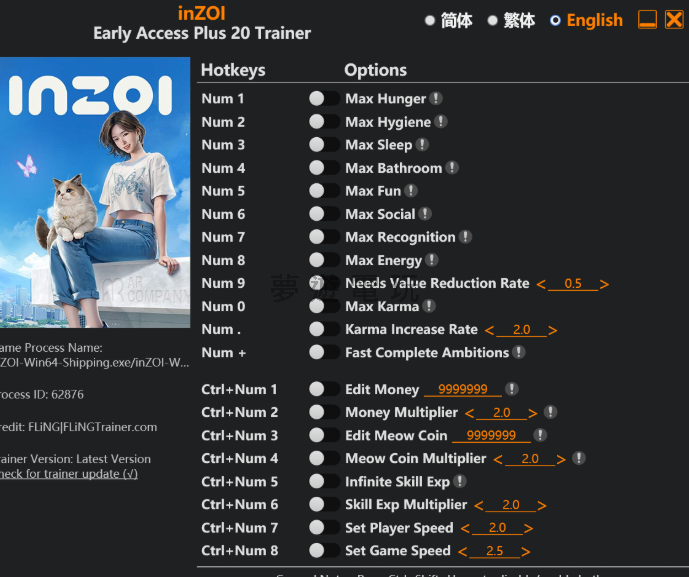正文摘要:replyreload += ',' + 2393062; inZOI這款生活模擬遊戲讓玩家體驗虛擬人生,但有時候想要更輕鬆地享受遊戲樂趣,修改器就是個不錯的選擇!今天要跟大家分享一款功能超強的inZOI修改器,讓你可以輕鬆調整角色需求、無限金錢,還有各種實用功能。 👉 GM後台版 遊戲 推薦 ⬇️⬇️⬇️ 快速玩各種二次元動漫手遊app 修改器基本資訊 這款inZOI修改器是由貪婪大地製作,專門針對Early Access版本設計,總共提供了20種不同的修改功能。最新版本更新日期是2025年6月16日,確保與遊戲版本的相容性。 修改器功能詳細介紹 角色需求相關功能 修改器提供了完整的角色需求調整功能,讓你的角色永遠保持最佳狀態: Num 1 - 飢餓值滿格:讓角色永遠不會餓肚子Num 2 - 衛生值滿格:保持角色清潔狀態Num 3 - 睡眠值滿格:不用擔心角色疲勞Num 4 - 如廁需求滿格:解決生理需求問題Num 5 - 娛樂值滿格:讓角色心情愉快Num 6 - 社交值滿格:滿足社交需求Num 7 - 聲望值滿格:提升角色知名度Num 8 - 精力值滿格:讓角色充滿活力Num 9 - 需求下降速度調整:控制需求值減少的速度 道德與目標系統 Num 0 - 道德值滿格:讓角色成為道德模範Num . - 道德值增加速度:加快道德值提升Num + - 快速完成願望:瞬間達成角色目標 金錢與遊戲幣功能 Ctrl+Num 1 - 編輯金錢:直接修改遊戲內金錢數量Ctrl+Num 2 - 金錢倍數:設定金錢獲得倍率Ctrl+Num 3 - 編輯喵喵幣:修改遊戲特殊貨幣Ctrl+Num 4 - 喵喵幣倍數:設定喵喵幣獲得倍率 技能與遊戲速度 Ctrl+Num 5 - 無限技能經驗:技能經驗永不減少Ctrl+Num 6 - 技能經驗倍數:加快技能學習速度Ctrl+Num 7 - 設定角色移動速度:調整角色行走速度Ctrl+Num 8 - 設定遊戲速度:控制整體遊戲進行速度 修改器下載與安裝教學 首先,你需要下載修改器檔案。檔案名稱為 inZOI Early Access Plus 20 Trainer Updated 2025.06.16.exe。 下載連結: 所有站內附件皆會附上安全掃描報告請會員查看純淨度百分比後判斷使用(adsbygoogle = window.adsbygoogle || []).push({});相關檔案須知:取得檔案前,請先詳細閱讀文章內容避免不必要錯誤與誤會發生。也可多參考文章討論樓層內容了解附件檔案相關討論資訊。 【此文章部分內容隱藏中】 解除隱藏說明教學點擊下方 繼續閱讀文章 後請仔細觀看文章內容 並依照指示進行下一步最後完成解除隱藏後系統會回到此文章自動顯示隱藏內容~繼續閱讀 安裝步驟 點擊上方下載連結,前往檔案下載頁面下載完成後,找到下載的exe檔案先關閉inZOI遊戲(如果正在執行的話)以系統管理員身分執行修改器檔案啟動inZOI遊戲進入遊戲後,按下對應的快捷鍵來啟用功能 使用注意事項 使用修改器時有幾個重點需要注意: 記得要先啟動修改器,再開啟遊戲,這樣修改器才能正常運作。每次使用新功能時,建議先在不重要的存檔上測試,確保功能正常後再用於主要存檔。 由於修改器會改變遊戲的正常運作方式,建議在使用前先備份重要的存檔,避免意外情況發生。 inZOI修改器常見問題Q&A Q:修改器無法啟動怎麼辦? 確認是否以系統管理員身分執行修改器,並檢查防毒軟體是否阻擋了檔案執行。 Q:按了快捷鍵但功能沒有作用? 請確認修改器是在遊戲啟動前就已經開啟,並且遊戲版本與修改器相容。 Q:使用修改器會影響遊戲存檔嗎? 建議使用前先備份存檔,雖然修改器通常不會損壞存檔,但預防措施總是好的。 Q:修改器支援最新版本的inZOI嗎? 這個修改器支援Early Access版本,更新日期為2025年6月16日,應該能支援大部分版本。 Q:可以同時使用多個修改功能嗎? 可以的,你可以根據需要同時啟用多個功能,但建議循序漸進地測試各項功能。 Q:金錢倍數功能要怎麼設定? 先按Ctrl+Num 2啟用功能,然後在遊戲中賺取金錢時就會看到倍數效果。 replyreload += ',' + 2393062; |