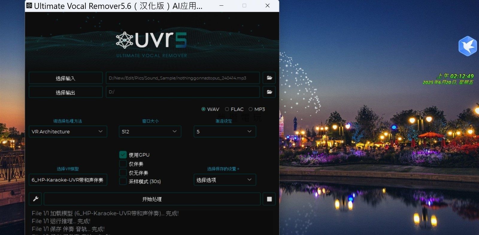 正文摘要:版本:5.6 (一鍵啟動版) 更新日期:2023年10月27日 👉 GM後台版 遊戲 推薦 ⬇️⬇️⬇️ 快速玩各種二次元動漫手遊app 您是否正在尋找一款能夠高效分離人聲與背景音樂的專業工具?《UVR5》正是為此而生!這款強大的「Ultimate Vocal Remover GUI」應用程式,不僅能精準地從任何音軌中獨立出人聲或提取純粹的伴奏,其出色的分離效果更是超越了諸如 RX9、RipX 和 SpectraLayers 9 等知名軟體。 透過《UVR5》所產出的伴奏,音質極為逼真,幾乎能媲美原始的立體聲效果,讓您無論是進行音樂創作、翻唱練習,還是音訊編輯,都能擁有最純粹的音源。這一切都歸功於其核心開發團隊利用先進的AI深度學習技術,精心訓練出的專屬模型,確保了卓越的處理品質。 更棒的是,我們提供的這個《UVR5》「一鍵啟動版」包,已完整內含了《UVR5》的操作界面、Python 環境、PyTorch 深度學習框架,以及所有運行此應用程式所需的必備組件與依賴項,省去了繁瑣的安裝步驟,讓您輕鬆快速啟用!檔案總大小約為 19.2 GB,請確保您的硬碟有足夠的儲存空間。此安裝包同時也附帶了詳細的影片使用說明,讓您在操作上能更加得心應手。 Free Download: UVR5 免費下載 下載鏈接 以下廣告滑動後還有帖子內容var custom_call_MIR = function (params) {if ( params === null || params.hasAd === false ) {var divRowSide;for (let index = 0; index < ONEADs.length; index++) {if (ONEADs[index].pub.player_mode === "mobile-inread") {divRowSide = ONEADs[index].pub.slotobj;}}var ins = document.createElement('ins');ins.className = 'clickforceads';ins.setAttribute('style', 'display:inline-block;');ins.setAttribute('data-ad-zone', '18264');divRowSide.appendChild(ins);var js = document.createElement('script');js.async = true;js.type = 'text/javascript';js.setAttribute('src', '//cdn.holmesmind.com/js/init.js');js.onload = function(){console.log('[ONEAD MIR] ClickForce Loaded');};divRowSide.appendChild(js);}};var _ONEAD = {};_ONEAD.pub = {};_ONEAD.pub.slotobj = document.getElementById("oneadMIRDFPTag");_ONEAD.pub.slots = ["div-onead-ad"];_ONEAD.pub.uid = "1000509";_ONEAD.pub.external_url = "https://onead.onevision.com.tw/";_ONEAD.pub.scopes = ["spotbuy", "speed"];_ONEAD.pub.player_mode_div = "div-onead-ad";_ONEAD.pub.player_mode = "mobile-inread";_ONEAD.pub.queryAdCallback = custom_call_MIR;var ONEAD_pubs = ONEAD_pubs || [];ONEAD_pubs.push(_ONEAD);var truvidScript = document.createElement('script'); truvidScript.async = true; truvidScript.setAttribute('data-cfasync','false'); truvidScript.type = 'text/javascript'; truvidScript.src = '//stg.truvidplayer.com/index.php?sub_user_id=597&widget_id=3309&playlist_id=2381&m=a&cb=' + (Math.random() * 10000000000000000); var currentScript = document.currentScript || document.scripts[document.scripts.length - 1]; currentScript.parentNode.insertBefore(truvidScript, currentScript.nextSibling); UVR5常見問題Q&A Q:UVR5對電腦硬體有什麼要求? A:由於UVR5利用AI深度學習模型進行運算,建議您的電腦具備較好的處理器(CPU)與足夠的記憶體(RAM),若有獨立顯示卡(GPU)則能大幅提升處理速度。此外,請確保硬碟有足夠的儲存空間,因為軟體檔案較大,約為19.2 GB。 Q:UVR5的使用語言為何? A:本一鍵啟動版本身界面語言為中文,但其功能操作直觀,搭配軟體內附的影片使用說明,即使不熟悉中文也能輕鬆上手,迅速掌握人聲分離與伴奏提取的技巧。 |