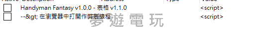 正文摘要:在《Handyman Fantasy》這款遊戲中,玩家扮演穿越到異世界的水電工,需要在冒險者公會、鐵匠鋪、酒館等地打工,同時還要服務當地的太太和少女們。為了讓玩家能更輕鬆地享受遊戲樂趣,今天要為大家介紹一款功能強大的修改器,讓你可以獲得無限金錢、解鎖所有圖庫內容,還有各種戰鬥輔助功能! 👉 GM後台版 遊戲 推薦 ⬇️⬇️⬇️ 快速玩各種二次元動漫手遊app 遊戲介紹與Steam連結 《Handyman Fantasy》是一款Unity引擎製作的遊戲,描述穿越來到異世界的水電工也逃離不了被壓榨的命運。在冒險者公會、鐵匠鋪、酒館等打著好幾份工的同時,還得騰出空來服務地方的太太及少女們,並定期向他的上司"魅魔"上繳精氣以滿足業績需求。 https://store.steampowered.com/a ... _source=steamwidget 修改器功能特色 這款修改器採用模式掃描技術,會自動更新偏移量,因此可以支援遊戲的後續更新版本。以下是完整的功能列表: 基礎功能腳本 無限玩家生命值/能量無限金錢騷擾操縱器(工作期間使用)忍耐功能瞬間滿足欲望欲望乘數(一般場景中) 各場所專用功能 教堂/圖書館: 冰凍計時器 鐵匠鋪: 冰凍計時器瞬間完成工作 酒館: 冰凍計時器 冒險者遊戲/地牢戰鬥: 不受傷害一擊擊敗敵人 圖庫解鎖功能 解鎖主選單圖庫(進入主選單前啟用)解鎖所有女孩CG解鎖所有事件 指針功能 GameController指針PlayerInfo指針金錢數值能量數值技能經驗值技能點數 安裝與使用教學 下載檔案 修改器提供兩個版本供玩家下載: 中文版修改器: https://pixeldrain.com/u/hUffFvb3 英文版修改器: https://pixeldrain.com/u/u1RXecjq 使用步驟 首先,確保你已經安裝了最新版本的Cheat Engine,並且以系統管理員身分執行用Cheat Engine開啟下載的修改器檔案(.CT檔)啟動《Handyman Fantasy》遊戲,等待進入主選單在修改器中啟用初始化腳本(表格中第一個帶有遊戲名稱和表格版本的腳本)等待Cheat Engine連接遊戲並載入mono功能,這個過程可能需要一分鐘時間連接成功後,就可以根據需要啟用各項功能了 實用提示 你可以使用Cheat Engine內建的加速功能來加快或減慢遊戲速度,有助於更快進行遊戲所有圖庫腳本會永久解鎖內容到你的存檔中如果想備份進度,可以備份 %userprofile%/AppData/LocalLow/SupaShinKen/HandymanFantasy/SavesDir_ 資料夾要讓主選單圖庫解鎖腳本正常運作,可以在標題畫面啟用它,或載入存檔後返回主選單 以下廣告滑動後還有帖子內容var custom_call_MIR = function (params) {if ( params === null || params.hasAd === false ) {var divRowSide;for (let index = 0; index < ONEADs.length; index++) {if (ONEADs[index].pub.player_mode === "mobile-inread") {divRowSide = ONEADs[index].pub.slotobj;}}var ins = document.createElement('ins');ins.className = 'clickforceads';ins.setAttribute('style', 'display:inline-block;');ins.setAttribute('data-ad-zone', '18264');divRowSide.appendChild(ins);var js = document.createElement('script');js.async = true;js.type = 'text/javascript';js.setAttribute('src', '//cdn.holmesmind.com/js/init.js');js.onload = function(){console.log('[ONEAD MIR] ClickForce Loaded');};divRowSide.appendChild(js);}};var _ONEAD = {};_ONEAD.pub = {};_ONEAD.pub.slotobj = document.getElementById("oneadMIRDFPTag");_ONEAD.pub.slots = ["div-onead-ad"];_ONEAD.pub.uid = "1000509";_ONEAD.pub.external_url = "https://onead.onevision.com.tw/";_ONEAD.pub.scopes = ["spotbuy", "speed"];_ONEAD.pub.player_mode_div = "div-onead-ad";_ONEAD.pub.player_mode = "mobile-inread";_ONEAD.pub.queryAdCallback = custom_call_MIR;var ONEAD_pubs = ONEAD_pubs || [];ONEAD_pubs.push(_ONEAD);var truvidScript = document.createElement('script'); truvidScript.async = true; truvidScript.setAttribute('data-cfasync','false'); truvidScript.type = 'text/javascript'; truvidScript.src = '//stg.truvidplayer.com/index.php?sub_user_id=597&widget_id=3309&playlist_id=2381&m=a&cb=' + (Math.random() * 10000000000000000); var currentScript = document.currentScript || document.scripts[document.scripts.length - 1]; currentScript.parentNode.insertBefore(truvidScript, currentScript.nextSibling); 疑難排解 如果初始化腳本出現問題,可以嘗試以下解決方法: 確保已從官方網站安裝最新版本的Cheat Engine,也可以嘗試完全移除後重新安裝在選單列的編輯→選項→一般設定中,確保「總是強制載入模組」選項是停用的如果初始化腳本一直無法啟用,請重新啟動Cheat Engine,並在啟用腳本前手動連接到遊戲程序 Handyman Fantasy常見問題Q&A Q:修改器支援哪些平台? 因為遊戲使用Unity引擎製作,所以修改器應該可以在所有平台上正常運作。 Q:遊戲更新後修改器還能用嗎? 修改器使用模式掃描技術並會自動更新偏移量,所以應該可以支援較新的遊戲版本。 Q:為什麼初始化腳本需要這麼久時間? Cheat Engine需要時間連接遊戲並載入mono功能,通常需要一分鐘左右。如果時間過長,建議重新開啟CE再試一次。 Q:圖庫解鎖功能是永久的嗎? 是的,所有圖庫腳本會將解鎖內容永久保存到你的存檔中。 Q:可以在遊戲進行中途啟用修改器嗎? 建議在遊戲主選單時啟用初始化腳本,這樣可以確保所有功能正常運作。 Q:修改器會影響遊戲存檔嗎? 圖庫解鎖功能會永久修改存檔,其他功能主要是即時修改遊戲數值,不會對存檔造成永久影響。 |
