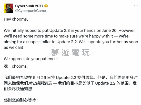 各位夜城居民注意了!知名遊戲大廠 CD Projekt Red (CDPR) 針對備受期待的 《電馭叛客2077》2.3版更新 投下震撼彈:原訂的上市日期將延後。究竟這次的延期,是為了帶給玩家更完美的遊戲體驗,還是預示著開發過程中的