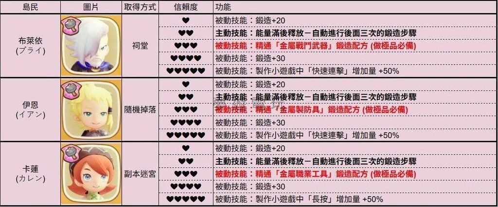 在《幻想生活i》這款遊戲中,總共有50位島民可以跟玩家互動。只要提升跟這些島民的信賴度,就能解鎖他們各自獨特的技能,對你的冒險旅程非常有幫助!本篇攻略將為你詳細整理所有島民在不同信賴度下能解鎖的技能清
