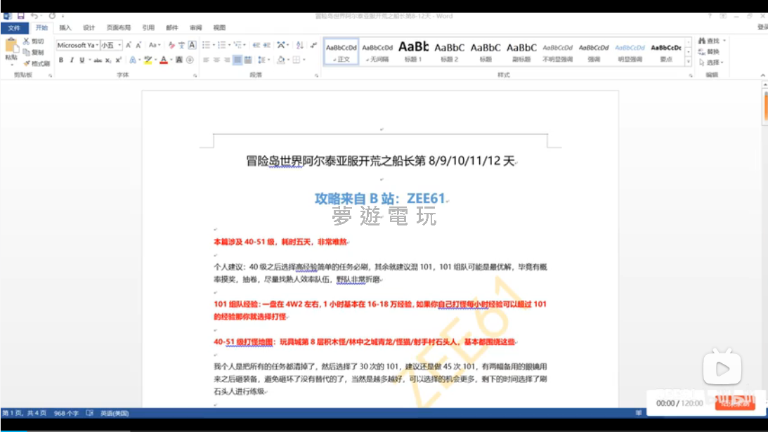 正文摘要:🎮 《Artale楓之谷世界》船長職業完整攻略懶人包 🚢 ✨ 核心重點: • 40-51級是最煎熬的階段,需要5天時間完成 • 40級後建議選擇高經驗簡單任務 + 組隊101刷經驗 • 101組隊一場約4萬2經驗,每小時16-18萬經驗 🎯 推薦練級地點: • 第八層積木怪 • 林中之城青龍怪貓 • 是我村石頭人 💎 必做高價值任務: • 玩具城八層隱藏任務 → 手套攻擊卷軸 • 廢棄都市飛上蓝天任務 → 披風卷軸(超值!) • 同化村 + 虎鲸號任務 → 經驗豐厚且簡單 ⚡ 小撇步: 建議至少做45次101副本,可獲得2副備用眼鏡用來強化裝備! 《Artale楓之谷世界》船長職業40-51級完整練級攻略指南 .video-container { position: relative; padding-bottom: 56.25%; padding-top: 30px; height: 0; overflow: hidden;}.video-container iframe,.video-container object,.video-container embed { position: absolute; top: 0; left: 0; width: 100%; height: 100%;}外連至此bilibili影片連結 船長職業後期練級概況與建議 同化村以及虎鯨號的任務系列,任務獎勵非常豐厚,而且任務內容相對簡單,也是強烈推薦大家去完成的。不過需要提前準備50個粉紅獨眼龍和冰藍獨眼龍的尾巴,這樣就可以直接交任務了。 地球防衛本部的黑暗兔子任務也值得一提,這個任務有機會獲得套裝運氣、套裝智力或套裝敏捷等屬性,但是這個任務需要打很久的時間。 至此,所有從1級到51級的詳細練級分享攻略已經全部完成。後續的升級規劃可以參考我之前發布的影片內容。等我的等級足夠高了,我會把武陵任務系列全部完成,屆時再跟大家分享相關的攻略心得。 練級方式經驗效率優點缺點101組隊副本每小時16-18萬有抽獎機制,可獲得高價值物品需要組隊,可能遇到效率低的隊友獨自打怪視個人能力而定時間自由,不受他人影響無抽獎機制,獎勵相對單一任務導向一次性高經驗獎勵豐富,包含高價值物品任務有限,完成後無法重複 以下廣告滑動後還有帖子內容var custom_call_MIR = function (params) {if ( params === null || params.hasAd === false ) {var divRowSide;for (let index = 0; index < ONEADs.length; index++) {if (ONEADs[index].pub.player_mode === "mobile-inread") {divRowSide = ONEADs[index].pub.slotobj;}}var ins = document.createElement('ins');ins.className = 'clickforceads';ins.setAttribute('style', 'display:inline-block;');ins.setAttribute('data-ad-zone', '18264');divRowSide.appendChild(ins);var js = document.createElement('script');js.async = true;js.type = 'text/javascript';js.setAttribute('src', '//cdn.holmesmind.com/js/init.js');js.onload = function(){console.log('[ONEAD MIR] ClickForce Loaded');};divRowSide.appendChild(js);}};var _ONEAD = {};_ONEAD.pub = {};_ONEAD.pub.slotobj = document.getElementById("oneadMIRDFPTag");_ONEAD.pub.slots = ["div-onead-ad"];_ONEAD.pub.uid = "1000509";_ONEAD.pub.external_url = "https://onead.onevision.com.tw/";_ONEAD.pub.scopes = ["spotbuy", "speed"];_ONEAD.pub.player_mode_div = "div-onead-ad";_ONEAD.pub.player_mode = "mobile-inread";_ONEAD.pub.queryAdCallback = custom_call_MIR;var ONEAD_pubs = ONEAD_pubs || [];ONEAD_pubs.push(_ONEAD);var truvidScript = document.createElement('script'); truvidScript.async = true; truvidScript.setAttribute('data-cfasync','false'); truvidScript.type = 'text/javascript'; truvidScript.src = '//stg.truvidplayer.com/index.php?sub_user_id=597&widget_id=3309&playlist_id=2381&m=a&cb=' + (Math.random() * 10000000000000000); var currentScript = document.currentScript || document.scripts[document.scripts.length - 1]; currentScript.parentNode.insertBefore(truvidScript, currentScript.nextSibling); 常見問題Q&A Q1:40級以後練級為什麼會這麼煎熬? A1:40級以後經驗需求大幅增加,而適合的練級地點相對有限,加上怪物經驗給予量沒有同步提升,所以會感覺練級速度明顯變慢。 Q2:101副本一定要組隊嗎?可以單刷嗎? A2:101副本設計就是組隊副本,無法單人進入。建議找熟悉的玩家組隊,避免遇到效率低下的隊友影響整體進度。 Q3:披風卷軸為什麼這麼值錢? A3:披風卷軸可以提供跳躍速度和回避能力,這些屬性在PVP和高難度副本中非常重要,而且獲得機會相對稀少,所以市場價格很高。 Q4:眼鏡要準備多少副比較保險? A4:建議至少準備2副備用眼鏡,這樣在強化裝備時如果失敗也有替代品。如果經濟允許,準備越多副越好。 Q5:石頭人練級的效率如何? A5:石頭人是40-51級階段相對穩定的練級選擇,雖然經驗效率不如101組隊,但勝在穩定且不需要依賴他人,適合喜歡獨自遊戲的玩家。 Q6:武陵任務什麼時候會開放攻略? A6:等我的角色等級足夠高,能夠完成武陵任務系列後,就會製作相關的攻略影片與大家分享。 Q7:同化村任務需要什麼前置條件? A7:需要提前準備50個粉紅獨眼龍尾巴和50個冰藍獨眼龍尾巴,準備好這些材料就可以直接去交任務了。 |