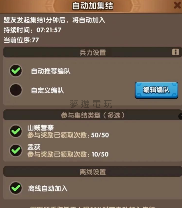 正文摘要:三國冰河時代 新手開局懶人包來啦! 🚀 想當零課大神?想快速上手?跟著這篇攻略做就對了! ✅ 四個必做事項: 馬上加入第一大盟蹭課長禮包、火爐等級優先衝、孟獲跟山寨每天打滿50次、在盟內多聊天多幫忙混個臉熟!💪 四大堅持原則: 出戰盡量帶祝融省體力、第二建築隊列要用得聰明、堅守你的無課之路、每天派兵挖礦不要停。💎 元寶聰明用法: 優先投資在開啟第二隊列和搶重要城池的加速上。想抽武將就等特定轉盤活動。📦 資源規劃路線: 想拚免費呂布,所有資源就存到「最強城主」活動再一次全下;如果想穩穩發育,就以完成「同盟角逐」的個人獎勵為目標。 照著這篇攻略玩,無課也能衝出一片天!🥳 一、新手開局四個「必須」做到的事 剛加入《三國冰河時代》的世界,想知道怎麼玩才能領先別人一步嗎?掌握以下四個核心要點,讓你開局就順風順水! 必須加入第一大盟: 能不能進到伺服器的第一大盟(或稱龍頭盟),對你的成長速度有著決定性的影響。 堅持合理使用第二隊列: 開啟第二建築隊列需要花費一筆元寶,所以每一分每一秒都要用在刀口上。這裡分享一個進階用法:例如,明天是「最強城主」活動第一天,建築戰力會加積分。你可以算好時間,在前一天半夜點下需要升級24小時的火爐(假設同盟幫助能減少3小時),讓它剛好在隔天活動開始後完成,這樣就能瞬間獲得大量積分,把活動獎勵拉滿!這筆元寶投資不小,務必堅持最大化利用。 堅持堅守本心: 如果你決定當個零課或無課玩家,就要有自己的定性,不要被各種禮包誘惑,專注在資源的有效利用上。 堅持每日採礦: 如果你總共有四支隊伍,建議派出三支隊伍進行資源採集,保留一支隊伍掛網打孟獲或山寨營寨。遊戲內可以開啟「自動加入集結」功能,讓你採礦、跟打兩不誤。 三、元寶的四大推薦用途 元寶是遊戲中最珍貴的貨幣,千萬別亂花!對於無課或小課玩家來說,建議集中在以下幾個地方: 搶重要城池的加速: 在攻城戰時,適時使用元寶買加速道具,幫助聯盟拿下關鍵城池,這對全體成員都有好處。 開啟第二隊列: 如前所述,這是提升發展速度最有價值的投資之一。 抽特定武將 (轉盤活動): 不要用元寶去普池抽將。鎖定像華佗、孫尚香這類強力武將的限定轉盤活動,再投入元寶,效益最高。 三顧茅廬: 這個活動每期可以用大量的元寶,拿到除了呂布、趙雲之外幾乎所有武將的基礎角色,是個快速擴充角色池的划算選擇。 爵位: 這部分就看個人選擇,可以買也可以不買,優先級較低。 四、無課玩家的兩條資源規劃路線 對於無課玩家來說,如何儲存和使用資源,是能否逆襲的關鍵。這裡有兩條主流路線供你參考: 路線選擇核心玩法優點風險與注意事項路線一:極限囤積流除了升級火爐必須用的資源外,其他所有資源、道具全部存起來,等到第三次「最強城主」活動時再一次梭哈(All in)。若能衝進總排名前二十,有機會可以免費獲得最強武將「呂布」。風險極高!如果你的伺服器課長太多,你辛苦存一個多月的資源,可能還比不上人家幾天的儲值。搶不到排名就白費心機了。路線二:穩健發育流完全放棄拚「最強城主」的排名獎勵,專注在「同盟角逐」活動,以拿到個人積分600萬的獎勵為目標。穩定獲取資源,即使沒有核心武將孫策也能完成目標,發育曲線平滑。會錯過最強城主活動的保底獎勵,且無法爭奪呂布等稀有大獎。 給無課玩家的額外建議: 在資源兌換上,新手常有個誤區。如果在「神兵」和「鍛造石」之間做選擇,強烈推薦優先換取鍛造石。因為無課玩家基本上沒有機會擔任集結的「車頭」(帶隊者),吃不到自身屬性加成,所以強化隊伍中五位武將的「裝備」才是最重要的。 步兵:優先升級提供「生命值」的裝備。弓兵:優先升級提供「破壞力」的裝備。騎兵:平均提升各項屬性即可。 以下廣告滑動後還有帖子內容var custom_call_MIR = function (params) {if ( params === null || params.hasAd === false ) {var divRowSide;for (let index = 0; index < ONEADs.length; index++) {if (ONEADs[index].pub.player_mode === "mobile-inread") {divRowSide = ONEADs[index].pub.slotobj;}}var ins = document.createElement('ins');ins.className = 'clickforceads';ins.setAttribute('style', 'display:inline-block;');ins.setAttribute('data-ad-zone', '18264');divRowSide.appendChild(ins);var js = document.createElement('script');js.async = true;js.type = 'text/javascript';js.setAttribute('src', '//cdn.holmesmind.com/js/init.js');js.onload = function(){console.log('[ONEAD MIR] ClickForce Loaded');};divRowSide.appendChild(js);}};var _ONEAD = {};_ONEAD.pub = {};_ONEAD.pub.slotobj = document.getElementById("oneadMIRDFPTag");_ONEAD.pub.slots = ["div-onead-ad"];_ONEAD.pub.uid = "1000509";_ONEAD.pub.external_url = "https://onead.onevision.com.tw/";_ONEAD.pub.scopes = ["spotbuy", "speed"];_ONEAD.pub.player_mode_div = "div-onead-ad";_ONEAD.pub.player_mode = "mobile-inread";_ONEAD.pub.queryAdCallback = custom_call_MIR;var ONEAD_pubs = ONEAD_pubs || [];ONEAD_pubs.push(_ONEAD);var truvidScript = document.createElement('script'); truvidScript.async = true; truvidScript.setAttribute('data-cfasync','false'); truvidScript.type = 'text/javascript'; truvidScript.src = '//stg.truvidplayer.com/index.php?sub_user_id=597&widget_id=3309&playlist_id=2381&m=a&cb=' + (Math.random() * 10000000000000000); var currentScript = document.currentScript || document.scripts[document.scripts.length - 1]; currentScript.parentNode.insertBefore(truvidScript, currentScript.nextSibling); 三國冰河時代_常見問題Q&A Q: