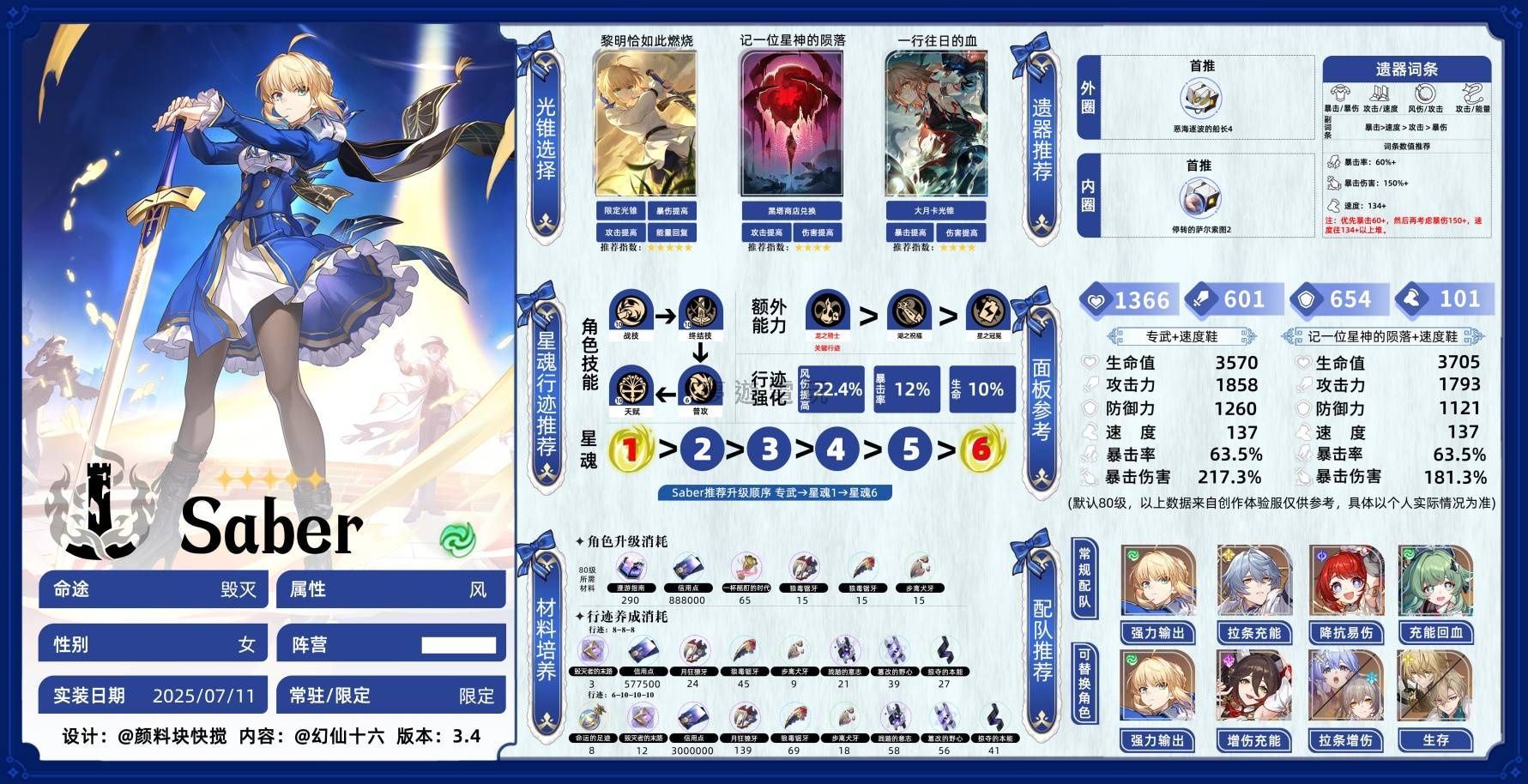 搶先看!《崩壞:星穹鐵道》Saber角色前瞻與養成攻略 星穹列車的開拓者們,準備好迎接與《Fate》聯動的全新角色Saber了嗎?為了幫助大家在卡池開放前,搶先掌握這位強大角色的培養方向與玩法精髓,這篇攻略將為您詳
