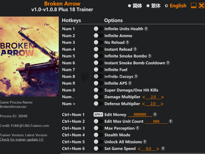 正文摘要:replyreload += ',' + 2397482; 🎮 Broken Arrow斷箭修改器懶人包 🎯 • 支援版本: v1.0-v1.0.8+ (單人模式限定) • 功能特色: 18項超強修改功能 • 核心功能: 無限血量、彈藥、燃料 💪超級傷害/一擊必殺 ⚡金錢編輯、單位數量調整 💰隱身模式、解鎖所有關卡 🔓 使用提醒: 僅限單人遊戲模式使用,多人模式無效! 更新日期: 2025.07.15 最新版本 ✨ Broken Arrow斷箭是一款深受玩家喜愛的策略遊戲,而今天要為大家介紹的是由風靈月影製作的專業修改器,讓你在遊戲中體驗更多樂趣! 👉 GM後台版 遊戲 推薦 ⬇️⬇️⬇️ 快速玩各種二次元動漫手遊app 修改器基本資訊 這款修改器提供了18項強大功能,支援遊戲版本從v1.0到v1.0.8+,最後更新日期為2025年7月15日。特別要注意的是,此修改器僅支援單人模式,在多人遊戲中無法使用。 修改器功能完整列表 基礎戰鬥功能 Num 1 – 無限單位血量Num 2 – 無限彈藥Num 3 – 無需換彈Num 4 – 瞬間換彈Num 0 – 超級傷害/一擊必殺Num . – 傷害倍率調整Num + – 防禦倍率調整 戰術輔助功能 Num 5 – 無限煙霧彈Num 6 – 煙霧彈冷卻時間歸零Num 7 – 無限燃料Num 8 – 無限誘餌Num 9 – 無限APS系統 進階系統功能 Ctrl+Num 1 – 編輯金錢Ctrl+Num 2 – 編輯最大單位數量Ctrl+Num 3 – 最大感知能力Ctrl+Num 4 – 隱身模式Ctrl+Num 5 – 解鎖所有關卡Ctrl+Num 6 – 設定遊戲速度 修改器下載與安裝 下載連結 修改器檔案名稱:Broken Arrow v1.0-v1.0.8 Plus 18 Trainer.exe 下載點: 所有站內附件皆會附上安全掃描報告請會員查看純淨度百分比後判斷使用(adsbygoogle = window.adsbygoogle || []).push({});相關檔案須知:取得檔案前,請先詳細閱讀文章內容避免不必要錯誤與誤會發生。也可多參考文章討論樓層內容了解附件檔案相關討論資訊。 【此文章部分內容隱藏中】 解除隱藏說明教學點擊下方 繼續閱讀文章 後請仔細觀看文章內容 並依照指示進行下一步最後完成解除隱藏後系統會回到此文章自動顯示隱藏內容~繼續閱讀 安裝步驟 首先,點擊上方下載連結,下載修改器檔案接下來,將下載的exe檔案放置在遊戲根目錄或任意位置然後,啟動遊戲並進入單人模式完成後,執行修改器程式最後,按照需要使用對應的熱鍵啟動功能 使用技巧與注意事項 使用這款修改器時,建議先熟悉各項功能的熱鍵配置。對於新手玩家,可以先嘗試基礎的無限血量和彈藥功能,等熟悉後再使用進階的編輯功能。 特別提醒,由於修改器會改變遊戲平衡性,建議在體驗完遊戲原本難度後再使用,這樣能更好地享受遊戲樂趣。 Broken Arrow斷箭修改器_常見問題Q&A Q:修改器可以在多人模式使用嗎? 不可以,此修改器僅支援單人模式,在多人遊戲中無法正常運作。 Q:如果遊戲更新了,修改器還能用嗎? 目前支援到v1.0.8+版本,如果遊戲有重大更新,可能需要等待修改器更新。 Q:使用修改器會影響遊戲存檔嗎? 建議在使用修改器前先備份存檔,避免意外情況發生。 Q:為什麼有些功能按了熱鍵沒反應? 請確保遊戲在前台運行,且已正確啟動修改器程式。 Q:修改器安全嗎?會被防毒軟體誤判嗎? 修改器可能會被部分防毒軟體誤判,使用前請自行評估風險。 replyreload += ',' + 2397482; |