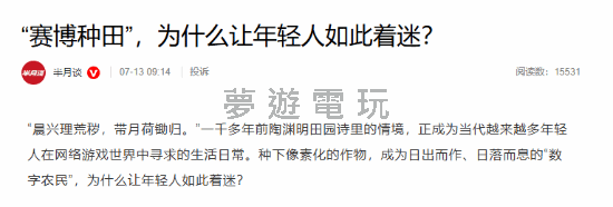 引言:當官方媒體也開始「種田」 近來,中國官媒《新華社》旗下的《半月談》雜誌,針對時下年輕人對《星露穀物語》這類「數位農耕」遊戲的狂熱,發表了一篇引人深思的文章。這股席捲網路的「賽博種田」風潮,究竟是