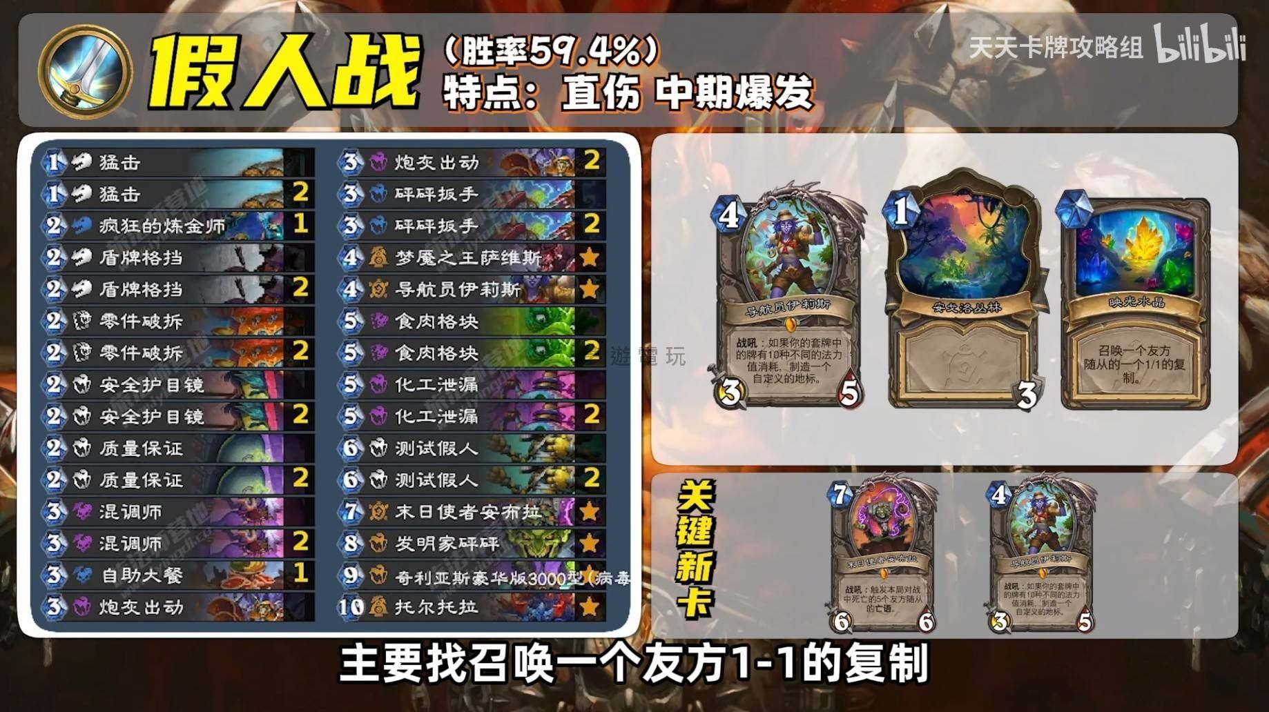 正文摘要:.video-container { position: relative; padding-bottom: 56.25%; padding-top: 30px; height: 0; overflow: hidden;}.video-container iframe,.video-container object,.video-container embed { position: absolute; top: 0; left: 0; width: 100%; height: 100%;}外連至此bilibili影片連結 👉 GM後台版 遊戲 推薦 ⬇️⬇️⬇️ 快速玩各種二次元動漫手遊app 哈囉各位《爐石戰記》的玩家們!今天這篇要為大家帶來一套非常有趣的牌組——「假人戰」。這套牌的核心策略,就是圍繞著那張只需要一定費用、名為「測試假人」的手下展開。透過不斷觸發它的「亡語」效果,就能製造出可觀的傷害輸出,讓你的對手措手不及!如果你也想知道如何活用這套獨特的《爐石戰記》牌組,輕鬆打出高額傷害,那就跟著我們一起深入瞭解假人戰的構築思路與實戰技巧吧! 以下廣告滑動後還有帖子內容var custom_call_MIR = function (params) {if ( params === null || params.hasAd === false ) {var divRowSide;for (let index = 0; index < ONEADs.length; index++) {if (ONEADs[index].pub.player_mode === "mobile-inread") {divRowSide = ONEADs[index].pub.slotobj;}}var ins = document.createElement('ins');ins.className = 'clickforceads';ins.setAttribute('style', 'display:inline-block;');ins.setAttribute('data-ad-zone', '18264');divRowSide.appendChild(ins);var js = document.createElement('script');js.async = true;js.type = 'text/javascript';js.setAttribute('src', '//cdn.holmesmind.com/js/init.js');js.onload = function(){console.log('[ONEAD MIR] ClickForce Loaded');};divRowSide.appendChild(js);}};var _ONEAD = {};_ONEAD.pub = {};_ONEAD.pub.slotobj = document.getElementById("oneadMIRDFPTag");_ONEAD.pub.slots = ["div-onead-ad"];_ONEAD.pub.uid = "1000509";_ONEAD.pub.external_url = "https://onead.onevision.com.tw/";_ONEAD.pub.scopes = ["spotbuy", "speed"];_ONEAD.pub.player_mode_div = "div-onead-ad";_ONEAD.pub.player_mode = "mobile-inread";_ONEAD.pub.queryAdCallback = custom_call_MIR;var ONEAD_pubs = ONEAD_pubs || [];ONEAD_pubs.push(_ONEAD);var truvidScript = document.createElement('script'); truvidScript.async = true; truvidScript.setAttribute('data-cfasync','false'); truvidScript.type = 'text/javascript'; truvidScript.src = '//stg.truvidplayer.com/index.php?sub_user_id=597&widget_id=3309&playlist_id=2381&m=a&cb=' + (Math.random() * 10000000000000000); var currentScript = document.currentScript || document.scripts[document.scripts.length - 1]; currentScript.parentNode.insertBefore(truvidScript, currentScript.nextSibling); 假人戰牌組代碼 以下是本篇攻略推薦的「假人戰」牌組代碼,你可以直接複製到遊戲中組合: AAECAbyRBQidoATHpAaTqAaOvwax/QbDgweCmAf1mAcLhqAEjtQE6J8Gh6AGj6gGkKgGkagGkqgGlKgGhr8GiuIGAAED9LMGx6QG97MGx6QG7t4Gx6QGAAA= |