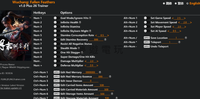 正文摘要:replyreload += ',' + 2398900; 《明末: 渊虚之羽》風靈月影修改器 教學懶人包 ✨ 卡關卡到心累?被小怪虐到懷疑人生?這篇攻略就是你的救星! 本篇將帶你一步一步安裝與使用《明末: 渊虚之羽》的風靈月影修改器,讓你輕鬆闖蕩江湖! 🚀 核心功能速覽: 戰鬥無雙:上帝模式、無限生命、一擊秒殺,輕鬆擊敗所有敵人! 資源自由:紅汞、材料、物品數量通通自己改,再也不用農半天! 跑圖神器:自訂移動速度、即時傳送,探索地圖超方便! 完全潛行:開啟潛行模式,當個來無影去無蹤的刺客大師! 別再受苦了,跟著教學,三分鐘變高手!🎮 各位在《明末: 渊虚之羽》這款硬派動作遊戲中奮戰的玩家們,大家好!是不是有時候覺得敵人太強、資源難集,或是單純想輕鬆體驗一下劇情呢?別擔心,今天就要來為大家介紹知名的「風靈月影」大神製作的修改器,內含26項超實用功能,從戰鬥到資源管理,讓你瞬間從被虐的小蝦米,搖身一變成橫行無阻的武林高手! 修改器下載 在開始之前,請先到下面的連結下載修改器檔案。這是使用一切功能的基礎喔! 檔案名稱: Wuchang Fallen Feathers v1.0 Plus 26 Trainer Updated.exe 下載連結: 所有站內附件皆會附上安全掃描報告請會員查看純淨度百分比後判斷使用(adsbygoogle = window.adsbygoogle || []).push({});相關檔案須知:取得檔案前,請先詳細閱讀文章內容避免不必要錯誤與誤會發生。也可多參考文章討論樓層內容了解附件檔案相關討論資訊。 【此文章部分內容隱藏中】 解除隱藏說明教學點擊下方 繼續閱讀文章 後請仔細觀看文章內容 並依照指示進行下一步最後完成解除隱藏後系統會回到此文章自動顯示隱藏內容~繼續閱讀 修改器安裝與使用教學 下載好了嗎?接下來我們就一步一步來看看這個修改器要怎麼使用,過程非常簡單,跟著做就對了! 第一步:解壓縮檔案 首先,將你剛剛下載的壓縮檔解壓縮到任何你方便存取的地方。 (小提醒: 有時候防毒軟體可能會把修改器誤判為病毒,這是因為修改器會讀取並修改遊戲記憶體的關係。可以先暫時關閉防毒軟體,或將修改器加入信任清單中。) 第二步:啟動遊戲 接著,像平常一樣打開《明末: 渊虚之羽》並進入遊戲主畫面。 👉 GM後台版 遊戲 推薦 ⬇️⬇️⬇️ 快速玩各種二次元動漫手遊app 第三步:執行修改器 回到你解壓縮的資料夾,找到修改器程式(就是那個 .exe 檔案),然後以「系統管理員身分」執行它。 第四步:啟用修改器 執行修改器後,通常會聽到一聲提示音,代表修改器已經成功跟遊戲連結上了。 第五步:開始使用熱鍵! 現在你可以切換回遊戲畫面,按下對應的熱鍵來開啟或關閉你想要的功能了!下面會詳細列出所有功能的熱鍵。 修改器功能與熱鍵說明 這裡為大家整理了所有功能的對照表,方便你快速查找!記得,熱鍵中的「Num」是指鍵盤右側的數字九宮格按鍵喔。 熱鍵 (Hotkey)功能說明 (Function)Num 1上帝模式 / 無視傷害Num 2無限生命 (鎖血)Num 3無限耐力Num 4無限淵虛之力Num 5調整耐力消耗率Num 6修改耐力恢復速度Num 7抵抗所有負面狀態Num 8潛行模式Num 9一擊造成失衡Num 0超級傷害 / 一擊秒殺Num .傷害倍率調整Num +防禦倍率調整Ctrl+Num 1修改紅汞數量Ctrl+Num 2修改紅汞精粹數量Ctrl+Num 3修改心魔數量Ctrl+Num 4修改背包物品數量Ctrl+Num 5修改背包材料數量Ctrl+Num 6修改倉庫物品數量Ctrl+Num 7修改倉庫材料數量Alt+Num 1設定遊戲整體速度Alt+Num 2設定移動速度Alt+Num 3設定玩家角色速度Alt+Num 4設定 AI 速度Alt+Num /儲存目前位置Alt+Num *傳送到儲存的位置Alt+Num –返回傳送前的位置 以下廣告滑動後還有帖子內容var custom_call_MIR = function (params) {if ( params === null || params.hasAd === false ) {var divRowSide;for (let index = 0; index < ONEADs.length; index++) {if (ONEADs[index].pub.player_mode === "mobile-inread") {divRowSide = ONEADs[index].pub.slotobj;}}var ins = document.createElement('ins');ins.className = 'clickforceads';ins.setAttribute('style', 'display:inline-block;');ins.setAttribute('data-ad-zone', '18264');divRowSide.appendChild(ins);var js = document.createElement('script');js.async = true;js.type = 'text/javascript';js.setAttribute('src', '//cdn.holmesmind.com/js/init.js');js.onload = function(){console.log('[ONEAD MIR] ClickForce Loaded');};divRowSide.appendChild(js);}};var _ONEAD = {};_ONEAD.pub = {};_ONEAD.pub.slotobj = document.getElementById("oneadMIRDFPTag");_ONEAD.pub.slots = ["div-onead-ad"];_ONEAD.pub.uid = "1000509";_ONEAD.pub.external_url = "https://onead.onevision.com.tw/";_ONEAD.pub.scopes = ["spotbuy", "speed"];_ONEAD.pub.player_mode_div = "div-onead-ad";_ONEAD.pub.player_mode = "mobile-inread";_ONEAD.pub.queryAdCallback = custom_call_MIR;var ONEAD_pubs = ONEAD_pubs || [];ONEAD_pubs.push(_ONEAD);var truvidScript = document.createElement('script'); truvidScript.async = true; truvidScript.setAttribute('data-cfasync','false'); truvidScript.type = 'text/javascript'; truvidScript.src = '//stg.truvidplayer.com/index.php?sub_user_id=597&widget_id=3309&playlist_id=2381&m=a&cb=' + (Math.random() * 10000000000000000); var currentScript = document.currentScript || document.scripts[document.scripts.length - 1]; currentScript.parentNode.insertBefore(truvidScript, currentScript.nextSibling); 《明末: 渊虚之羽》修改器常見問題Q&A Q:修改器下載了卻打不開,或是按了熱鍵沒反應,該怎麼辦? A:請嘗試以下幾個方法: 確認遊戲版本是否為 v1.0 或以上。嘗試以「系統管理員身分」執行修改器。檢查防毒軟體是否阻擋了修改器,可以先暫時關閉或將其加入白名單。確保你是先開啟