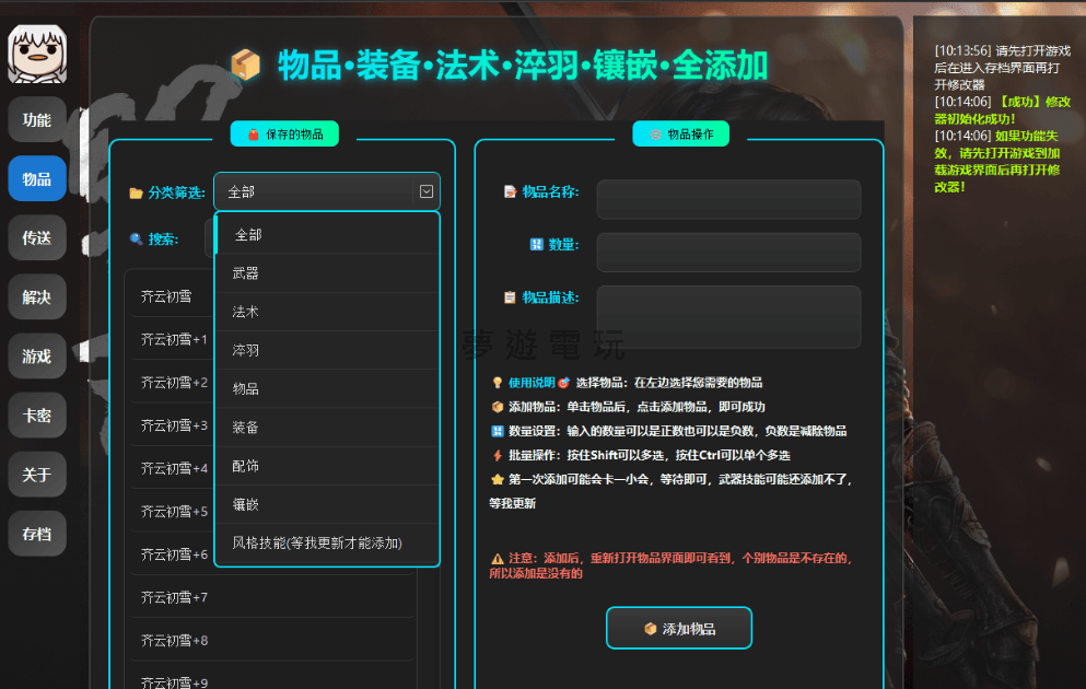 正文摘要:replyreload += ',' + 2398936;《明末淵虛之羽》38項修改器懶人包 🎮 功能超齊全:無限血量、無限耐力、自由飛行樣樣行! 📦 物品自由拿:武器、法術、裝備、寶石,一鍵塞滿背包! 🏆 成就秒解鎖:懶人福音,輕鬆達成全成就! 🚀 傳送系統:想去哪就去哪,座標隨你存! 👇 下載點和教學都在文章內,馬上變身武林高手! 各位在《明末:淵虛之羽》的世界裡闖蕩的玩家們,大家好!是不是覺得遊戲有點難度,或是想體驗更自由的玩法呢?今天就要來為大家介紹一款超實用的工具——「大母鵝修改器」,擁有多達38項的強大功能,讓你的江湖路更加順遂! 修改器有什麼神功能?38項功能完整介紹 這款修改器功能非常全面,從基礎的角色數值到各種物品的添加,幾乎無所不包。讓我們來看看它有哪些亮點功能: 修改器下載點 說了這麼多,大家是不是都等不及了呢?這邊提供兩個下載點,請選擇你方便的連結下載即可。 一般 https://wwvb.lanzout.com/b00b4vhb9a 高速: 所有站內附件皆會附上安全掃描報告請會員查看純淨度百分比後判斷使用(adsbygoogle = window.adsbygoogle || []).push({});相關檔案須知:取得檔案前,請先詳細閱讀文章內容避免不必要錯誤與誤會發生。也可多參考文章討論樓層內容了解附件檔案相關討論資訊。 【此文章部分內容隱藏中】 解除隱藏說明教學點擊下方 繼續閱讀文章 後請仔細觀看文章內容 並依照指示進行下一步最後完成解除隱藏後系統會回到此文章自動顯示隱藏內容~繼續閱讀 使用前請注意 開發者有提到,修改器本身是佛心製作,大部分功能如「一鍵生成所有物品」都是免費的。 不過,其中「自選添加物品」這個比較進階的欄目,需要啟用後才能使用。如果想支持作者,或是想獲得更個人化的體驗,可以考慮啟用。 另外,也可以加入他們的交流群組,官方近期每天都會抽大概10位幸運兒贈送啟用碼喔! 《明末淵虛之羽》修改器_常見問題Q&A Q:使用這個修改器會被官方鎖帳號嗎? A:這類單機遊戲的修改器主要影響個人遊戲體驗,通常風險較低。但若遊戲未來有連線或排行榜功能,建議謹慎使用或避免在連線模式下開啟,風險需自行承擔。 Q:為什麼下載後防毒軟體會跳警告? A:修改器通常會需要讀取和修改遊戲的記憶體數據,這種行為容易被防毒軟體誤判為病毒。使用前請自行評估風險,或將其加入防毒軟體的信任清單。 Q:為什麼「自選添加物品」的功能是灰色的不能按? A:根據說明,這個功能需要「啟用」後才能使用。你可以使用免費的「一鍵生成所有物品」功能,或是加入官方社群看看有沒有免費啟用碼的活動。 Q:如果遊戲更新了,修改器還能用嗎? A:不一定。遊戲大版本更新後,修改器通常也需要更新才能對應新的遊戲程式。好消息是這款修改器支援自動檢測更新,可以多加留意。 Q:下載連結失效了怎麼辦? A:可以試試看另一個備用連結。如果兩個都失效了,建議可以到相關的遊戲論壇或社群尋找最新的下載點。 replyreload += ',' + 2398936; |