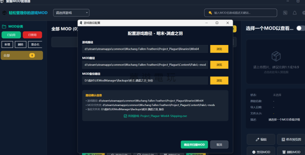 正文摘要:replyreload += ',' + 2399215; 🎮 《明末:淵虛之羽》MOD管理器懶人包 🎮 ✨ 重點功能: 支援所有虛幻引擎遊戲MOD管理一鍵導入、停用啟用、刪除MOD可加入預覽圖片和備註資訊支援中英文介面切換 💾 使用超簡單:下載安裝後,直接拖曳壓縮包就能導入MOD! 🆕 版本資訊:1.7.31最新版,功能更完整更好用! 👍 支援多選操作、MOD分類、卡片/列表視圖切換等實用功能 想要輕鬆管理《明末:淵虛之羽》的MOD嗎?愛醬虛幻引擎遊戲MOD管理器1.7.31版本正式發布!這款管理器不只支援《明末:淵虛之羽》,更能管理所有虛幻引擎遊戲的MOD,讓你告別手動管理MOD的麻煩時代。 管理器介面預覽 來看看這款MOD管理器的實際操作介面,簡潔明瞭的設計讓新手也能快速上手: 👉 GM後台版 遊戲 推薦 ⬇️⬇️⬇️ 快速玩各種二次元動漫手遊app 愛醬MOD管理器 v1.7.31 核心功能介紹 這款管理器專為虛幻引擎遊戲設計,功能相當完整: MOD導入與管理功能 MOD一鍵導入:支援單一檔案或壓縮包格式,不用再手動解壓縮MOD停用啟用:想暫時關閉某個MOD?一鍵就能搞定MOD刪除功能:不需要的MOD可以直接移除多選操作:支援Ctrl或Shift多選,批次處理更有效率 視覺化管理功能 MOD預覽圖片:可以為每個MOD加入預覽圖,一眼就知道是什麼內容名稱與資訊備註:自訂MOD名稱和詳細說明,管理更清楚MOD分類功能:將MOD依類型分類整理,尋找更方便視圖切換:支援卡片視圖和列表視圖,依個人喜好選擇 介面與語言設定 中英文切換:點擊右上角齒輪圖示就能切換語言直觀操作介面:簡潔的設計讓管理MOD變得輕鬆愉快 下載與安裝教學 安裝過程相當簡單,跟著以下步驟就能完成: 點擊下方連結下載管理器安裝檔執行下載的UEModManager_v1.7.31_Setup(1).zip檔案依照安裝精靈指示完成安裝首次啟動時會出現捐贈提示,這是支援開發者的方式 下載連結: 所有站內附件皆會附上安全掃描報告請會員查看純淨度百分比後判斷使用(adsbygoogle = window.adsbygoogle || []).push({});相關檔案須知:取得檔案前,請先詳細閱讀文章內容避免不必要錯誤與誤會發生。也可多參考文章討論樓層內容了解附件檔案相關討論資訊。 【此文章部分內容隱藏中】 解除隱藏說明教學點擊下方 繼續閱讀文章 後請仔細觀看文章內容 並依照指示進行下一步最後完成解除隱藏後系統會回到此文章自動顯示隱藏內容~繼續閱讀 使用方法與操作技巧 安裝完成後,使用方式非常直覺: 拖曳導入:直接將MOD檔案或壓縮包拖曳到管理器視窗點擊導入:使用管理器內建的導入按鈕選擇檔案批次管理:利用Ctrl或Shift選取多個MOD進行批次操作分類整理:將相同類型的MOD歸類,方便日後管理 明末:淵虛之羽 MOD管理器常見問題Q&A Q:這款管理器只能用於《明末:淵虛之羽》嗎? 不是的,愛醬MOD管理器支援所有虛幻引擎遊戲,包括劍星、其他UE遊戲都能使用。 Q:MOD導入失敗怎麼辦? 確認MOD檔案格式正確,支援單一檔案和壓縮包格式。如果還是有問題,試試重新啟動管理器。 Q:如何切換中英文介面? 點擊管理器右上角的齒輪圖示,就能找到語言切換選項。 Q:可以同時管理多款遊戲的MOD嗎? 可以的,管理器支援MOD分類功能,你可以依遊戲分類管理不同的MOD。 Q:首次安裝的捐贈提示可以關閉嗎? 捐贈提示是支援開發者持續更新的方式,不過通常只會在首次安裝時出現一次。 replyreload += ',' + 2399215; |