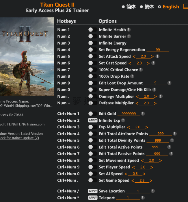 正文摘要:replyreload += ',' + 2400463; 🎮 泰坦之旅2修改器懶人包 ✨ 26項功能:無限血量、護盾、能量等基礎修改 🎯 戰鬥強化:100%暴擊、超級傷害、一擊必殺 💰 資源管理:編輯金幣、經驗值、屬性點數 ⚡ 速度控制:移動速度、遊戲速度自由調整 📍 瞬移功能:保存位置、瞬間傳送超方便 🔧 適用版本:搶先體驗版本以上都能用 泰坦之旅2修改器功能介紹 這款泰坦之旅2修改器總共提供了26項實用功能,讓你在冒險過程中能夠更輕鬆地享受遊戲樂趣。不管是想要無敵模式還是快速練等,這個工具都能滿足你的需求。 👉 GM後台版 遊戲 推薦 ⬇️⬇️⬇️ 快速玩各種二次元動漫手遊app 基礎生存功能 想要在泰坦之旅2中暢行無阻嗎?以下這些基礎功能絕對是你的好幫手: Num 1 – 無限血量:再也不用擔心角色死亡Num 2 – 無限護盾:提供額外的防護保障Num 3 – 無限能量:技能隨便放不用省Num 4 – 設定能量回復速度:調整能量恢復的快慢 戰鬥強化系統 如果你想要體驗碾壓敵人的快感,這些戰鬥相關的功能一定要試試: Num 5 – 設定攻擊速度:讓你的攻擊變得超級快Num 6 – 設定施法速度:魔法技能瞬發不是夢Num 7 – 100%暴擊機率:每次攻擊都是暴擊Num 0 – 超級傷害/一擊必殺:直接秒殺任何敵人Num . – 傷害倍數調整:自由控制傷害輸出Num + – 防禦倍數調整:讓角色變得更加堅韌 掉寶與金幣管理 想要快速累積財富和裝備嗎?這些功能絕對不能錯過: Num 8 – 100%掉寶率:每個敵人都會掉落物品Num 9 – 編輯掉寶數量:控制每次掉落的物品數量Ctrl+Num 1 – 編輯金幣:直接修改你的錢包 角色成長加速 厭倦了漫長的練等過程?以下功能讓你快速成長: Ctrl+Num 2 – 無限經驗值:經驗值永遠用不完Ctrl+Num 3 – 經驗值倍數:加快升等速度Ctrl+Num 4 – 編輯總屬性點數:自由分配角色屬性Ctrl+Num 5 – 編輯總神性點數:提升角色神性能力Ctrl+Num 6 – 編輯總主動點數:增加主動技能點數Ctrl+Num 7 – 編輯總被動點數:強化被動技能 速度控制系統 想要改變遊戲節奏嗎?這些速度調整功能超級實用: Ctrl+Num 8 – 設定移動速度:讓角色移動如飛Ctrl+Num 9 – 設定玩家速度:整體提升玩家操作速度Ctrl+Num 0 – 設定AI速度:調整敵人的行動速度Ctrl+Num . – 設定遊戲速度:整體加快或放慢遊戲進行 瞬移傳送功能 最後還有超方便的瞬移系統,讓你在地圖間快速移動: Ctrl+Num / – 保存位置:記錄當前位置座標Ctrl+Num * – 瞬間傳送:傳送到保存的位置Ctrl+Num – – 撤銷傳送:返回傳送前的位置 修改器下載與使用 這個修改器檔案名稱為 Titan Quest II Early Access Plus 26 Trainer.exe,支援搶先體驗版本以上的泰坦之旅2。使用前請確保遊戲已經正常啟動,然後執行修改器檔案,按下對應的熱鍵就能啟用相關功能。 下載連結: 所有站內附件皆會附上安全掃描報告請會員查看純淨度百分比後判斷使用(adsbygoogle = window.adsbygoogle || []).push({});相關檔案須知:取得檔案前,請先詳細閱讀文章內容避免不必要錯誤與誤會發生。也可多參考文章討論樓層內容了解附件檔案相關討論資訊。 【此文章部分內容隱藏中】 解除隱藏說明教學點擊下方 繼續閱讀文章 後請仔細觀看文章內容 並依照指示進行下一步最後完成解除隱藏後系統會回到此文章自動顯示隱藏內容~繼續閱讀 泰坦之旅2修改器_常見問題Q&A Q:修改器支援哪些版本的泰坦之旅2? 支援搶先體驗版本以上的所有版本,確保遊戲更新到最新版本可以獲得最佳相容性。 Q:使用修改器會不會影響遊戲存檔? 建議在使用修改器前先備份存檔,雖然這類修改器通常不會損壞存檔,但預防總是比事後補救來得好。 Q:為什麼按了熱鍵沒有反應? 請確保遊戲在前景執行狀態,修改器也要以管理員身分執行,有些防毒軟體可能會阻擋修改器運作。 Q:可以同時使用多個功能嗎? 當然可以,這26項功能都能同時啟用,你可以根據自己的需求選擇要開啟哪些輔助功能。 Q:修改器會被遊戲偵測到嗎? 泰坦之旅2主要是單機遊戲,使用修改器的風險相對較低,但建議避免在線上模式使用以免產生問題。 replyreload += ',' + 2400463; |