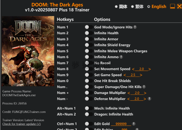正文摘要:replyreload += ',' + 2401683; 🔥《毀滅戰士:黑暗時代》修改器攻略懶人包 🔥 還在被虐到不要不要的嗎?這篇直接給你超猛的解決方案! ⚡ 18項超強功能:一鍵開啟上帝模式、無限生命、無限彈藥!💥 一擊必殺:不管是小怪還是Boss,通通一發帶走。🤖 載具無敵:機甲、飛龍通通鎖血,盡情輾壓!💰 資源修改:金幣、紅寶石、怨靈石想改就改。🔽 直接下載:文章內附上最新版修改器載點,馬上就能用! 本文章目錄 修改器功能介紹document.currentScript.previousElementSibling.href = location.href.split('#')[0] + '#features'; 檔案下載點 🔽document.currentScript.previousElementSibling.href = location.href.split('#')[0] + '#download'; [goto=faq]常見問題Q&A 毀滅戰士:黑暗時代 修改器攻略 各位玩家好!這次要分享的是由知名開發者風靈月影製作的《毀滅戰士:黑暗時代》專用修改器。如果你在遊戲中卡關,或只是想體驗一下當神的感覺,這款擁有18項功能的修改器絕對能滿足你的需求。本篇將提供完整的功能介紹與下載點,幫助你輕鬆上手! 👉 GM後台版 遊戲 推薦 ⬇️⬇️⬇️ 快速玩各種二次元動漫手遊app 修改器功能介紹 (v1.0-v20250807+) 這款修改器提供了多達18項的實用功能,涵蓋了戰鬥、資源、甚至載具等各個方面。以下是詳細的功能列表與對應的熱鍵: 玩家與戰鬥功能 數字鍵 1 – 上帝模式/無視傷害數字鍵 2 – 無限生命數字鍵 3 – 無限護甲數字鍵 4 – 無限護盾能量數字鍵 5 – 無限近戰武器充能數字鍵 6 – 無限彈藥數字鍵 7 – 無後座力數字鍵 8 – 自訂移動速度數字鍵 9 – 自訂遊戲速度數字鍵 0 – 一擊破盾數字鍵 . – 超級傷害/一擊必殺數字鍵 + – 傷害倍率調整數字鍵 - – 防禦倍率調整 載具相關功能 Alt+數字鍵 1 – 機甲:無限生命Alt+數字鍵 2 – 飛龍:無限生命 資源編輯功能 Ctrl+數字鍵 1 – 編輯金幣數量Ctrl+數字鍵 2 – 編輯紅寶石數量Ctrl+數字鍵 3 – 編輯怨靈石數量 檔案下載點 使用前請確認遊戲版本是否對應,以確保修改器能正常運作。 檔案名稱: DOOM The Dark Ages v1.0-v20250807 Plus 18 Trainer.exe 下載連結: 所有站內附件皆會附上安全掃描報告請會員查看純淨度百分比後判斷使用(adsbygoogle = window.adsbygoogle || []).push({});相關檔案須知:取得檔案前,請先詳細閱讀文章內容避免不必要錯誤與誤會發生。也可多參考文章討論樓層內容了解附件檔案相關討論資訊。 【此文章部分內容隱藏中】 解除隱藏說明教學點擊下方 繼續閱讀文章 後請仔細觀看文章內容 並依照指示進行下一步最後完成解除隱藏後系統會回到此文章自動顯示隱藏內容~繼續閱讀 毀滅戰士:黑暗時代 修改器_常見問題Q&A Q:為什麼我啟動修改器後,功能沒有效果? A:請先確認幾件事:第一,遊戲版本是否與修改器支援的版本(v1.0-v20250807+)相符。第二,請嘗試以「系統管理員」身分執行修改器。最後,某些防毒軟體可能會誤判並阻擋修改器,可以暫時關閉或將其加入信任清單。 Q:使用資源編輯功能(金幣、紅寶石)沒有反應怎麼辦? A:通常這類功能需要先在遊戲中讓數值變動一次後才能成功讀取。你可以試著先打開道具欄或商店介面,然後再切換回修改器按下對應熱鍵,通常就能成功修改。 Q:這款修改器可以在線上模式使用嗎? A:強烈建議不要!這類修改器是專為單人遊戲體驗設計的,在線上或多人模式中使用不僅會破壞他人遊戲體驗,也極有可能導致你的帳號被封鎖。請在單機模式下享受就好。 replyreload += ',' + 2401683; |