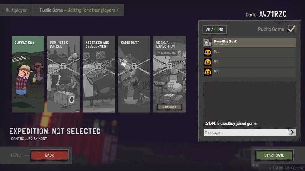 正文摘要:《槍途末路》想跟朋友一起玩?🎮 超簡單!用專屬房間碼就能秒邀戰友,記得設定私人模式更安心!馬上開團一起打怪啦! 本篇攻略目錄 《槍途末路》連線組隊教學:跟朋友一起打怪囉!document.currentScript.previousElementSibling.href = location.href.split('#')[0] + '#multiplayer_guide'; 自己開房間:邀請朋友一起玩!document.currentScript.previousElementSibling.href = location.href.split('#')[0] + '#create_room'; 加入朋友的房間:輸入邀請碼輕鬆入隊!document.currentScript.previousElementSibling.href = location.href.split('#')[0] + '#join_room'; 《槍途末路》連線組隊常見問題Q&Adocument.currentScript.previousElementSibling.href = location.href.split('#')[0] + '#faq'; 《槍途末路》連線組隊教學:跟朋友一起打怪囉! 《槍途末路》這款遊戲支援1到4名玩家在線上進行合作遊玩,如果你還不清楚要怎麼跟戰友們一起連線組隊的話,別擔心!本篇攻略將手把手教你如何透過遊戲獨特的房間碼系統,輕鬆揪團一起並肩作戰! 自己開房間:邀請朋友一起玩! 想要擔任隊長,自己創立房間邀請朋友嗎?操作步驟非常簡單,跟著以下指引一步步來: 啟動遊戲並進入「多人模式」:首先,開啟你的《槍途末路》,然後點選進入多人連線的遊戲模式。 建立專屬房間:在多人模式的介面中,你會看到一些目前公開的房間,但我們先不用理會這些。請直接找到畫面右下角的「創建房間」按鈕並點下去。 取得房間碼:系統會自動幫你產生一組獨一無二的「房間碼」。這組代碼就是你的朋友要用來加入的關鍵,請務必記下來或複製起來! 複製並設定為「私人」:請務必將這組房間碼複製下來,然後將你的房間設定為「私人」模式。這樣一來,就只有你指定分享房間碼的朋友才能加入,不用擔心會有不認識的陌生人亂入囉!(如果你不設定私人,那麼伺服器內所有玩家都能隨意加入。) 加入朋友的房間:輸入邀請碼輕鬆入隊! 如果你是收到朋友房間碼的玩家,想要加入他們一起遊玩,請依照以下步驟操作: 啟動遊戲並進入「多人模式」:跟開房間的朋友一樣,先開啟遊戲並進入多人連線模式。 使用房間碼加入:在多人模式的介面中,請找到畫面右上角的「透過代碼加入房間」這個選項並點擊。 輸入房間碼:接著,把朋友分享給你的那組專屬房間碼輸入進去,確認無誤後就可以成功加入他們的隊伍囉! 小提醒:設定為私人房間後,請務必只將房間碼分享給你信任的指定朋友,這樣才能確保你們的連線體驗安全又順暢喔! 👉 GM後台版 遊戲 推薦 ⬇️⬇️⬇️ 快速玩各種二次元動漫手遊app 以下廣告滑動後還有帖子內容var custom_call_MIR = function (params) {if ( params === null || params.hasAd === false ) {var divRowSide;for (let index = 0; index < ONEADs.length; index++) {if (ONEADs[index].pub.player_mode === "mobile-inread") {divRowSide = ONEADs[index].pub.slotobj;}}var ins = document.createElement('ins');ins.className = 'clickforceads';ins.setAttribute('style', 'display:inline-block;');ins.setAttribute('data-ad-zone', '18264');divRowSide.appendChild(ins);var js = document.createElement('script');js.async = true;js.type = 'text/javascript';js.setAttribute('src', '//cdn.holmesmind.com/js/init.js');js.onload = function(){console.log('[ONEAD MIR] ClickForce Loaded');};divRowSide.appendChild(js);}};var _ONEAD = {};_ONEAD.pub = {};_ONEAD.pub.slotobj = document.getElementById("oneadMIRDFPTag");_ONEAD.pub.slots = ["div-onead-ad"];_ONEAD.pub.uid = "1000509";_ONEAD.pub.external_url = "https://onead.onevision.com.tw/";_ONEAD.pub.scopes = ["spotbuy", "speed"];_ONEAD.pub.player_mode_div = "div-onead-ad";_ONEAD.pub.player_mode = "mobile-inread";_ONEAD.pub.queryAdCallback = custom_call_MIR;var ONEAD_pubs = ONEAD_pubs || [];ONEAD_pubs.push(_ONEAD);var truvidScript = document.createElement('script'); truvidScript.async = true; truvidScript.setAttribute('data-cfasync','false'); truvidScript.type = 'text/javascript'; truvidScript.src = '//stg.truvidplayer.com/index.php?sub_user_id=597&widget_id=3309&playlist_id=2381&m=a&cb=' + (Math.random() * 10000000000000000); var currentScript = document.currentScript || document.scripts[document.scripts.length - 1]; currentScript.parentNode.insertBefore(truvidScript, currentScript.nextSibling); 《槍途末路》連線組隊常見問題Q&A Q:房間碼是隨機生成的嗎? A:是的,每次你點擊「創建房間」時,系統都會自動生成一組全新的、獨一無二的房間碼。 Q:私人房間跟公開房間有什麼差別? A:設定為私人房間後,只有擁有該房間碼的玩家才能加入,提供更私密的遊戲體驗。而公開房間則允許所有伺服器內的玩家自由加入。 Q:如果我的朋友輸入房間碼後無法加入怎麼辦? A:請先確認房間碼是否輸入正確,大小寫和符號都要一致。同時,也要確認網路連線是否穩定,並檢查遊戲版本是否一致。有時候,重新啟動遊戲或重新創建房間也能解決問題喔。 |