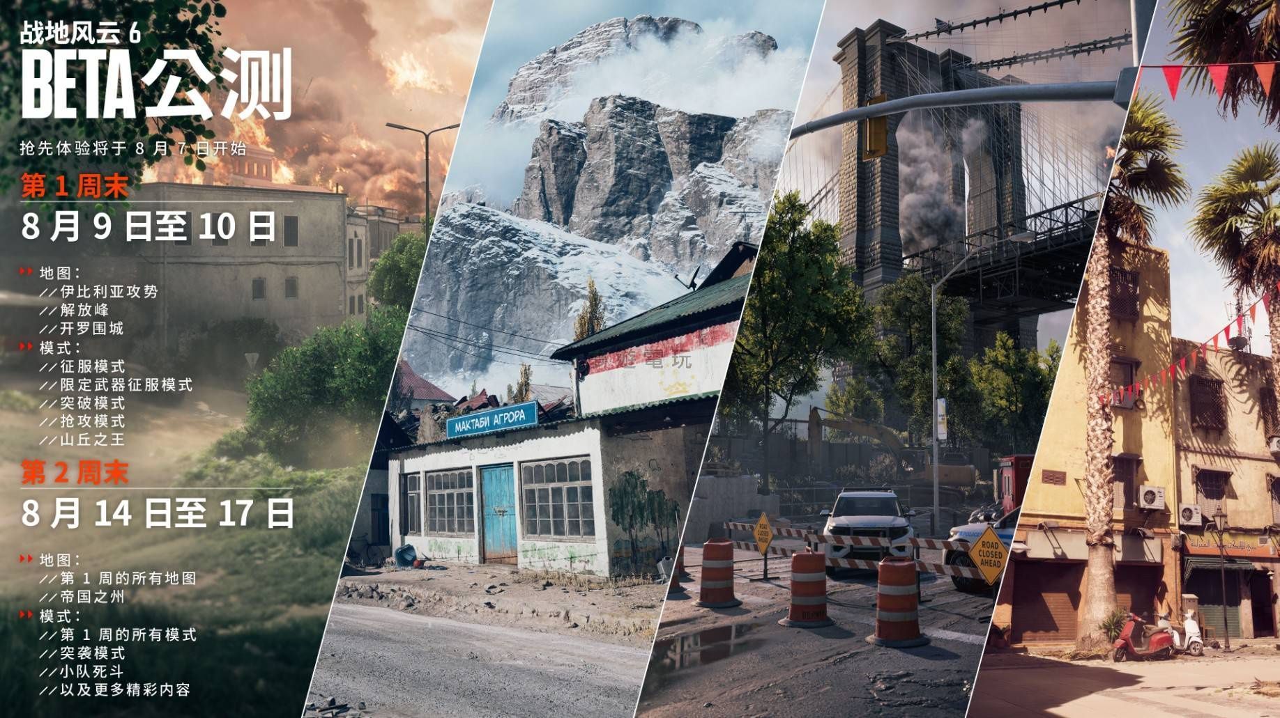 正文摘要:《戰地風雲6》BETA測試懶人包! 🔥 暢玩多張經典戰場地圖,體驗征服、突破等刺激模式! 🎯 完成週挑戰,爽領獨家造型獎勵,正式版就能用! 🎮 自由搭配兵種與裝備,打造你的專屬戰鬥風格! 快來參戰,主宰《戰地風雲》的戰場吧! 本篇攻略目錄 《戰地風雲》核心玩法特色document.currentScript.previousElementSibling.href = location.href.split('#')[0] + '#game_intro'; 第一週BETA測試內容總覽document.currentScript.previousElementSibling.href = location.href.split('#')[0] + '#week1_content'; 第一週開放地圖搶先看document.currentScript.previousElementSibling.href = location.href.split('#')[0] + '#week1_maps'; 經典與激戰模式整理document.currentScript.previousElementSibling.href = location.href.split('#')[0] + '#core_modes'; 第一週挑戰任務與限定獎勵document.currentScript.previousElementSibling.href = location.href.split('#')[0] + '#week1_challenges'; 第二週BETA測試全新內容document.currentScript.previousElementSibling.href = location.href.split('#')[0] + '#week2_content'; 第二週新增地圖揭祕document.currentScript.previousElementSibling.href = location.href.split('#')[0] + '#week2_maps'; 第二週新增模式介紹document.currentScript.previousElementSibling.href = location.href.split('#')[0] + '#week2_modes'; 第二週挑戰任務與限定獎勵document.currentScript.previousElementSibling.href = location.href.split('#')[0] + '#week2_challenges'; 《戰地風雲6》BETA測試常見問題Q&Adocument.currentScript.previousElementSibling.href = location.href.split('#')[0] + '#faq'; 《戰地風雲》核心玩法特色 第二週新增模式介紹 除了第一週開放的所有模式之外,第二週還將新增以下刺激的模式: 突襲模式 (Raid): 這個模式中,進攻方需要放置並拆除爆炸物,而防守方則圍繞一系列軍事通訊系統展開激烈的爭奪。進攻方必須在每個系統上安放爆炸物,並阻止防守方在爆炸物引爆前將其拆除。所有軍事通訊系統被摧毀後,戰鬥將推進至下一個區域。當所有軍事通訊系統都被摧毀,或者進攻方的重生次數耗盡時,比賽即告結束。 小隊死鬥 (Squad Deathmatch): 拿起你的武器,和你的隊友一起參與這場快節奏的近距離死鬥!四支小隊將同場競技,目標只有一個:率先達成擊殺目標的小隊,即可獲得最終勝利。 第二週挑戰任務與限定獎勵 是時候鎖定你的目標,在第二個週末的三個挑戰中贏取更多豐厚獎勵了! 挑戰: 在征服、搶攻或山丘之王模式中,佔領一定數量的旗點 獎勵: 「戰爭機器」載具外觀 挑戰: 完成一定數量的擊殺或助攻 獎勵: 「蝙蝠連」名牌 挑戰: 在突破或突襲模式中,佔領一定數量的區域 獎勵: 「統治」武器包 當你的隊友不在激烈的戰鬥中時,你可以選擇在他們身邊重生,快速回到戰局。同時,別忘了嘗試遊戲中的四種不同兵種,探索每個兵種如何為戰鬥帶來獨特的優勢。你也可以試試新的裝備——每種裝備都為戰鬥增添了新的維度。例如,可部署的掩體就是一種加固的防彈盾牌,可以暫時保護你免受子彈和其他彈藥的攻擊。 以下廣告滑動後還有帖子內容var custom_call_MIR = function (params) {if ( params === null || params.hasAd === false ) {var divRowSide;for (let index = 0; index < ONEADs.length; index++) {if (ONEADs[index].pub.player_mode === "mobile-inread") {divRowSide = ONEADs[index].pub.slotobj;}}var ins = document.createElement('ins');ins.className = 'clickforceads';ins.setAttribute('style', 'display:inline-block;');ins.setAttribute('data-ad-zone', '18264');divRowSide.appendChild(ins);var js = document.createElement('script');js.async = true;js.type = 'text/javascript';js.setAttribute('src', '//cdn.holmesmind.com/js/init.js');js.onload = function(){console.log('[ONEAD MIR] ClickForce Loaded');};divRowSide.appendChild(js);}};var _ONEAD = {};_ONEAD.pub = {};_ONEAD.pub.slotobj = document.getElementById("oneadMIRDFPTag");_ONEAD.pub.slots = ["div-onead-ad"];_ONEAD.pub.uid = "1000509";_ONEAD.pub.external_url = "https://onead.onevision.com.tw/";_ONEAD.pub.scopes = ["spotbuy", "speed"];_ONEAD.pub.player_mode_div = "div-onead-ad";_ONEAD.pub.player_mode = "mobile-inread";_ONEAD.pub.queryAdCallback = custom_call_MIR;var ONEAD_pubs = ONEAD_pubs || [];ONEAD_pubs.push(_ONEAD);var truvidScript = document.createElement('script'); truvidScript.async = true; truvidScript.setAttribute('data-cfasync','false'); truvidScript.type = 'text/javascript'; truvidScript.src = '//stg.truvidplayer.com/index.php?sub_user_id=597&widget_id=3309&playlist_id=2381&m=a&cb=' + (Math.random() * 10000000000000000); var currentScript = document.currentScript || document.scripts[document.scripts.length - 1]; currentScript.parentNode.insertBefore(truvidScript, currentScript.nextSibling); [anchor=faq]《戰地風雲6》BETA測試常見問題Q&A Q:這次BETA測試有哪些地圖可以玩? 這次BETA測試分為兩週開放內容,第一週有「開羅圍城」、「解放峯」和「伊比利亞攻勢」三張地圖;第二週則會新增「帝國之州」這張地圖。 Q:遊戲模式有哪些? 第一週可體驗「征服」、「封閉式武器突破」、「突破」、「搶攻」和「山丘之王」模式;第二週會再新增「突襲」和「小隊死鬥」模式。 Q:完成挑戰的獎勵能在正式版遊戲中使用嗎? 是的!只要在BETA測試期間完成挑戰,所獲得的玩家名片、角色外觀、武器飾品、武器包和貼紙等獎勵,都可以在遊戲正式發行後使用。 Q:兵種有哪些選擇?各自有什麼特色? 遊戲中共有突擊兵、醫護兵、工程兵和偵察兵四種兵種。突擊兵適合積極推進、醫護兵負責救援隊友、工程兵擅長處理載具、偵察兵則能提供情報偵察,每個兵種都有其獨特的戰術價值。 Q:如果我對遊戲不熟悉,有什