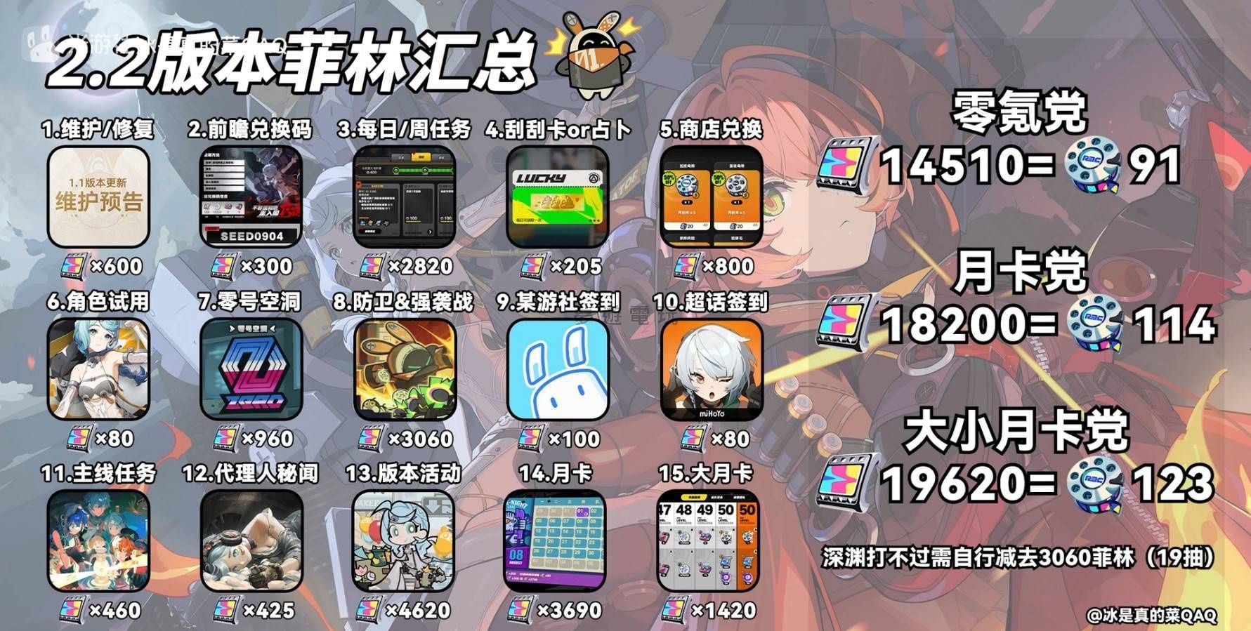 正文摘要:《絕區零》2.2版本菲林獲取總覽 快速閱讀精華 🗓️ 版本時程: 《絕區零》2.2版本預計從9月4日上線,持續到10月14日,總共41天!✨ 卡池輪替: 上半場: 席德、扳機、安比、妮可(9月4日~9月14日中午12點)下半場: 奧菲絲&「鬼火」、伊芙琳、露西、安東(9月14日中午12點~10月14日) ⚠️ 重要提醒: 本份攻略著重提供版本開放期間與卡池輪替資訊,協助玩家預先規劃。至於免課玩傢俱體能獲取多少菲林或抽卡次數,則需以遊戲內實際公告或後續完整攻略內容為準喔! 本文章目錄.article-toc { border: 1px solid #ddd; padding: 15px; background: #f9f9f9; border-radius: 6px; margin: 20px 0; width: 95%;}.toc-title { /* --- 以下是合併進來的 H2 樣式 --- */ font-size: 1.25em; /* 125% */ border-left: 5px solid #2A98DA; border-radius: 2px; padding: 5px 0px 5px 10px; font-weight: bold; margin: 0 0 15px 0; /* 調整了 margin,只留下方 15px */ color: #333; line-height: 1.5; background-color: #f8f8f8; /* --- 樣式合併結束 --- */}.toc-list { list-style: none; padding-left: 0;}.toc-list li { margin: 8px 0;}.toc-list a { color: #2A98DA; text-decoration: none;}.toc-list a:hover { text-decoration: underline;}.back-to-top { display: block; margin-top: 10px; font-size: 0.9em; color: #666;}2.2版本菲林獲取時程概覽document.currentScript.previousElementSibling.href = location.href.split('#')[0] + '#intro'; 2.2版本卡池角色與開放時間document.currentScript.previousElementSibling.href = location.href.split('#')[0] + '#banners'; 《絕區零》2.2版本菲林獲取 常見問題Q&Adocument.currentScript.previousElementSibling.href = location.href.split('#')[0] + '#faq'; 《絕區零》2.2版本菲林獲取時程概覽:掌握關鍵時機! 各位代理人好!大家最關心的《絕區零》2.2版本「菲林」獲取資訊來囉!這次我們為免課玩家們整理了2.2版本的關鍵時程與卡池角色,讓你能提早規劃抽卡策略。2.2版本預計將在9月4日正式上線,並持續到10月14日,總共為期41天。 由於這份彙整僅為初步資訊,具體的菲林獲取數量與最終結果,仍請以遊戲內實際更新公告為準喔!這些資訊僅供大家參考,幫助你預先掌握版本脈絡。 👉 GM後台版 遊戲 推薦 ⬇️⬇️⬇️ 快速玩各種二次元動漫手遊app 2.2版本卡池角色與開放時間 在2.2版本中,卡池將分為上半場與下半場,各有不同的角色登場,代理人們可以根據自己的需求和喜好來安排抽卡時間: 🚀 上半場卡池: 開放時間:9月4日上線後 ~ 9月14日中午12點登場角色:席德、扳機、安比、妮可 ✨ 下半場卡池: 開放時間:9月14日中午12點 ~ 10月14日登場角色:奧菲絲&「鬼火」、伊芙琳、露西、安東 請務必注意上下半場卡池的確切開放與結束時間,纔不會錯過你心儀的角色喔! 以下廣告滑動後還有帖子內容var custom_call_MIR = function (params) {if ( params === null || params.hasAd === false ) {var divRowSide;for (let index = 0; index < ONEADs.length; index++) {if (ONEADs[index].pub.player_mode === "mobile-inread") {divRowSide = ONEADs[index].pub.slotobj;}}var ins = document.createElement('ins');ins.className = 'clickforceads';ins.setAttribute('style', 'display:inline-block;');ins.setAttribute('data-ad-zone', '18264');divRowSide.appendChild(ins);var js = document.createElement('script');js.async = true;js.type = 'text/javascript';js.setAttribute('src', '//cdn.holmesmind.com/js/init.js');js.onload = function(){console.log('[ONEAD MIR] ClickForce Loaded');};divRowSide.appendChild(js);}};var _ONEAD = {};_ONEAD.pub = {};_ONEAD.pub.slotobj = document.getElementById("oneadMIRDFPTag");_ONEAD.pub.slots = ["div-onead-ad"];_ONEAD.pub.uid = "1000509";_ONEAD.pub.external_url = "https://onead.onevision.com.tw/";_ONEAD.pub.scopes = ["spotbuy", "speed"];_ONEAD.pub.player_mode_div = "div-onead-ad";_ONEAD.pub.player_mode = "mobile-inread";_ONEAD.pub.queryAdCallback = custom_call_MIR;var ONEAD_pubs = ONEAD_pubs || [];ONEAD_pubs.push(_ONEAD);var truvidScript = document.createElement('script'); truvidScript.async = true; truvidScript.setAttribute('data-cfasync','false'); truvidScript.type = 'text/javascript'; truvidScript.src = '//stg.truvidplayer.com/index.php?sub_user_id=597&widget_id=3309&playlist_id=2381&m=a&cb=' + (Math.random() * 10000000000000000); var currentScript = document.currentScript || document.scripts[document.scripts.length - 1]; currentScript.parentNode.insertBefore(truvidScript, currentScript.nextSibling); 《絕區零》2.2版本菲林獲取 常見問題Q&A Q:菲林是什麼? A:菲林是《絕區零》遊戲中的重要貨幣,主要用於抽取新角色(抽卡)和武器等遊戲內容,是玩家擴充隊伍與提升戰力的關鍵資源。 Q:2.2版本總共會持續多久? A:根據目前的消息,《絕區零》2.2版本預計從9月4日上線後,持續到10月14日,總共約為41天。 Q:免課玩家要怎麼最大化菲林獲取? A:免課玩家想要獲取更多菲林,建議要積極參與版本活動、完成每日與每週任務、推動主線劇情、探索區域以及挑戰各種副本。通常遊戲會在版本更新時推出大量送菲林的活動,務必不要錯過喔! Q:什麼時候會公佈確切的免課菲林獲取數量? A:通常官方會在版本更新前夕或更新後,透過遊戲內公告、官方社羣媒體或詳細的攻略文章,公佈當前版本可獲取的總菲林數量。建議玩家密切留意官方的最新消息。 Q:卡池上半場跟下半場有什麼差別? A:卡池的上半場與下半場是版本期間內不同的抽卡階段,會輪替推出不同的限定角色或武器。玩家可以根據自己的角色收集目標,選擇在特定時間點進行抽卡。 |