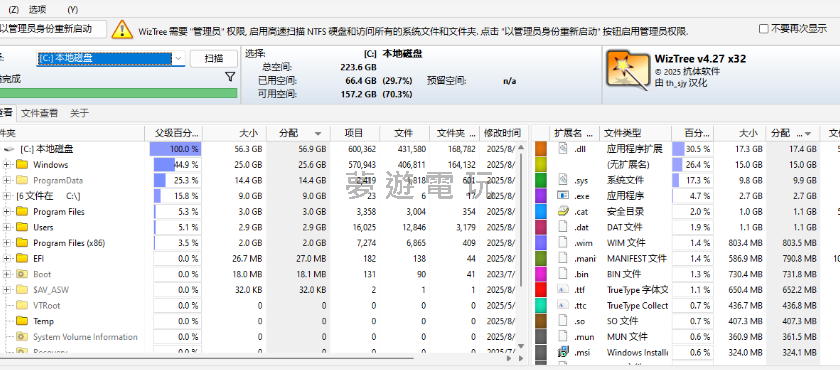正文摘要:《WizTree》電腦C槽清理神器 快速閱讀精華 🧹 它是什麼: 一款超高速的磁碟空間分析工具,專門用來揪出佔用你C槽空間的肥貓檔案。🚀 最大特色: 掃描速度世界第一快!直接讀取硬碟底層資料,幾秒鐘就能分析完畢,比同類軟體快上好幾倍。📊 功能一覽: 視覺化圖表,讓你一眼看出哪個資料夾最佔空間。檔案大小排序,輕鬆找到最大的檔案。支援所有Windows系統與硬碟格式(NTFS, FAT32等)。完全免費、無廣告、無彈出式視窗(推薦版本)。 🔽 檔案下載點: 不想看到簡體字或廣告?推薦下載中文化去廣告免安裝版。也提供官方原版下載連結。 本文章目錄.article-toc { border: 1px solid #ddd; padding: 15px; background: #f9f9f9; border-radius: 6px; margin: 20px 0; width: 95%;}.toc-title { /* --- 以下是合併進來的 H2 樣式 --- */ font-size: 1.25em; /* 125% */ border-left: 5px solid #2A98DA; border-radius: 2px; padding: 5px 0px 5px 10px; font-weight: bold; margin: 0 0 15px 0; /* 調整了 margin,只留下方 15px */ color: #333; line-height: 1.5; background-color: #f8f8f8; /* --- 樣式合併結束 --- */}.toc-list { list-style: none; padding-left: 0;}.toc-list li { margin: 8px 0;}.toc-list a { color: #2A98DA; text-decoration: none;}.toc-list a:hover { text-decoration: underline;}.back-to-top { display: block; margin-top: 10px; font-size: 0.9em; color: #666;}WizTree是什麼?為什麼我需要它?document.currentScript.previousElementSibling.href = location.href.split('#')[0] + '#intro';WizTree 強大功能特色document.currentScript.previousElementSibling.href = location.href.split('#')[0] + '#features';WizTree 使用教學:5步驟揪出肥貓檔案document.currentScript.previousElementSibling.href = location.href.split('#')[0] + '#guide';WizTree 軟體下載點 🔽document.currentScript.previousElementSibling.href = location.href.split('#')[0] + '#download';《WizTree》電腦清理重點回顧document.currentScript.previousElementSibling.href = location.href.split('#')[0] + '#summary';參考資料document.currentScript.previousElementSibling.href = location.href.split('#')[0] + '#references';WizTree 常見問題Q&Adocument.currentScript.previousElementSibling.href = location.href.split('#')[0] + '#faq'; WizTree是什麼?為什麼我需要它? 電腦用久了,是不是常常發現C槽空間莫名其妙就變紅了?想裝新遊戲、新軟體空間卻不夠用,又不知道該刪除哪些檔案?這時候,你需要的就是這款電腦清理神器——WizTree! WizTree 是一款極速的磁碟空間分析軟體,它能用最快的速度掃描你的硬碟,並以視覺化的方式告訴你,到底是哪些檔案或資料夾佔用了你寶貴的空間。它體積小巧(僅約4MB),而且沒有煩人的廣告或彈出視窗,讓你能夠精準打擊,輕鬆釋放出C槽容量! 👉 GM後台版 遊戲 推薦 ⬇️⬇️⬇️ 快速玩各種二次元動漫手遊app WizTree 強大功能特色 你可能會想,市面上這麼多清理工具,為什麼要選 WizTree?答案很簡單:速度! 《WizTree》電腦清理重點回顧 選定目標: 開啟WizTree,選擇亮紅燈的C槽或其他磁碟。秒速掃描: 按下「掃描」,讓WizTree在幾秒內完成分析。揪出元兇: 切換到「檔案檢視」,找出佔用空間最大的檔案。果斷處理: 確認檔案不再需要後,右鍵選擇刪除或移動到其他地方。 以下廣告滑動後還有帖子內容var custom_call_MIR = function (params) {if ( params === null || params.hasAd === false ) {var divRowSide;for (let index = 0; index < ONEADs.length; index++) {if (ONEADs[index].pub.player_mode === "mobile-inread") {divRowSide = ONEADs[index].pub.slotobj;}}var ins = document.createElement('ins');ins.className = 'clickforceads';ins.setAttribute('style', 'display:inline-block;');ins.setAttribute('data-ad-zone', '18264');divRowSide.appendChild(ins);var js = document.createElement('script');js.async = true;js.type = 'text/javascript';js.setAttribute('src', '//cdn.holmesmind.com/js/init.js');js.onload = function(){console.log('[ONEAD MIR] ClickForce Loaded');};divRowSide.appendChild(js);}};var _ONEAD = {};_ONEAD.pub = {};_ONEAD.pub.slotobj = document.getElementById("oneadMIRDFPTag");_ONEAD.pub.slots = ["div-onead-ad"];_ONEAD.pub.uid = "1000509";_ONEAD.pub.external_url = "https://onead.onevision.com.tw/";_ONEAD.pub.scopes = ["spotbuy", "speed"];_ONEAD.pub.player_mode_div = "div-onead-ad";_ONEAD.pub.player_mode = "mobile-inread";_ONEAD.pub.queryAdCallback = custom_call_MIR;var ONEAD_pubs = ONEAD_pubs || [];ONEAD_pubs.push(_ONEAD);var truvidScript = document.createElement('script'); truvidScript.async = true; truvidScript.setAttribute('data-cfasync','false'); truvidScript.type = 'text/javascript'; truvidScript.src = '//stg.truvidplayer.com/index.php?sub_user_id=597&widget_id=3309&playlist_id=2381&m=a&cb=' + (Math.random() * 10000000000000000); var currentScript = document.currentScript || document.scripts[document.scripts.length - 1]; currentScript.parentNode.insertBefore(truvidScript, currentScript.nextSibling); 參考資料 WizTree Official Website https://diskanalyzer.com/ WizTree 常見問題Q&A Q:WizTree 這款軟體安全嗎?會不會有病毒? A:WizTree 是一款知名的工具軟體,本身是安全的。本篇提供的官方連結可保證檔案純淨。若您擔心,建議使用官方版本,或下載後用防毒軟體掃描一次。Q:為什麼 WizTree 的掃描速度可以這麼快? A:因為它採用了獨特的技術,在掃描NTFS格式的硬碟時,直接讀取硬碟底層的主檔案資料表 (MFT),而不是透過Windows系統一層一層去詢問,所以速度有飛躍性的提升。Q:我不小心刪錯系統檔案怎麼辦? A:這就是為什麼教學中會特別提醒!在刪除任何位於 `C:\Windows` 或 `C:\Program Files` 等系統路徑下的檔案前,請務必再三確認。如果不確定該檔案的用途,建議先上網搜尋其檔名,不要貿然刪除。Q:這