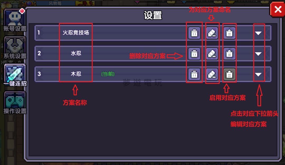 正文摘要:《我的勇者外傳》忍者連點器連招 快速閱讀精華 🚀 核心主題: 運用遊戲內建連點器,優化忍者在「首領秘境」與「競技場」中的技能循環,最大化輸出!⚙️ 前置條件: 各屬性連招方案多數要求 45% 冷卻時間 (CD),水忍世界組隊需 50% 冷卻時間 來開啟迪。🔥 火忍連招: 適用:首領秘境、競技場。注意:阿米魂系技能需手動釋放。競技場:時間球消失時啟動阿米,菁英怪刷新後踩完紅陣開啟連招。首領秘境:開局釋放阿米魂系,等普攻疊完31層上官星火增益後開啟連招。 💧 水忍秘境: 注意:開局手動開啟亂花,第二個魂系技能通常不需要。軸中冰斬在橘色技能前釋放,有助於卡鬼環。為構成長軸循環,第8刀延後兩秒。 🌳 木忍秘境: 注意:釋放位移技能(如櫻衝、山海復甦)時,需手動拉開距離。第二個魂系技能通常不需要,爆發後亂花需手動連點。此連招約持續45秒,之後需手動點擊除了普攻外的所有亮起技能。 🌊 水忍世界組隊: 引用「彼神」的連招軸。操作:開局按普攻、開亂花,118時放疾跑啟動連招,冰旋放畢結束。接著災厄驟至冷卻完瞬間再啟動,冰旋放畢結束。災厄驟至CD跳至0.9秒開克羅魂系,災厄驟至冷卻完瞬間再啟動,之後即可放鬆雙手。小提醒:點墨非全覆蓋,可選擇手動或不理會。 💡 連點器優化建議: 目前連點器方案較少、單個方案事件次數上限只有50個,且單一事件無法對多按鍵同時點擊。希望能增加單次啟用多套連招的功能。 本文章目錄.article-toc { border: 1px solid #ddd; padding: 15px; background: #f9f9f9; border-radius: 6px; margin: 20px 0; width: 95%;}.toc-title { /* --- 以下是合併進來的 H2 樣式 --- */ font-size: 1.25em; /* 125% */ border-left: 5px solid #2A98DA; border-radius: 2px; padding: 5px 0px 5px 10px; font-weight: bold; margin: 0 0 15px 0; /* 調整了 margin,只留下方 15px */ color: #333; line-height: 1.5; background-color: #f8f8f8; /* --- 樣式合併結束 --- */}.toc-list { list-style: none; padding-left: 0;}.toc-list li { margin: 8px 0;}.toc-list a { color: #2A98DA; text-decoration: none;}.toc-list a:hover { text-decoration: underline;}.back-to-top { display: block; margin-top: 10px; font-size: 0.9em; color: #666;}前言document.currentScript.previousElementSibling.href = location.href.split('#')[0] + '#intro'; 一、內建連點器介紹document.currentScript.previousElementSibling.href = location.href.split('#')[0] + '#clicker_intro'; 二、火忍首領秘境&競技場連招方案document.currentScript.previousElementSibling.href = location.href.split('#')[0] + '#fire_ninja'; 三、水忍首領秘境連招方案document.currentScript.previousElementSibling.href = location.href.split('#')[0] + '#water_ninja'; 四、木忍首領秘境連招方案document.currentScript.previousElementSibling.href = location.href.split('#')[0] + '#wood_ninja'; 五、水忍世界組隊連點方案document.currentScript.previousElementSibling.href = location.href.split('#')[0] + '#water_team'; 六、對連點器的建議與展望document.currentScript.previousElementSibling.href = location.href.split('#')[0] + '#feedback'; 《我的勇者外傳》忍者連點器連招 重點回顧document.currentScript.previousElementSibling.href = location.href.split('#')[0] + '#summary'; 常見問題Q&Adocument.currentScript.previousElementSibling.href = location.href.split('#')[0] + '#faq'; [anchor=intro]前言 各位《我的勇者外傳》的玩家大家好!今天我們要來深入探討忍者角色在遊戲中內建的連點器功能,以及如何在「首領秘境」和「競技場」等不同情境下,透過精心設計的連招方案,讓你的忍者發揮最大戰力。這篇攻略將會為大家詳細介紹連點器的設定方式,並提供火、水、木三種屬性忍者的實戰連招影片,希望能幫助大家輕鬆掌握高效率的技能循環! [anchor=clicker_intro]一、內建連點器介紹 遊戲內建的連點器是個非常實用的功能,能幫助玩家自動執行複雜的技能序列,特別是對於需要精確時機和高頻操作的忍者角色來說,更是不可或缺。本章節將簡單帶大家認識連點器的基本功能。 連招效果影片與注意事項: 這套連招軸是參考彼神水忍世界攻略的。 開局操作: 按住普攻,開啟「亂花」。在時間點118時釋放「疾跑」,隨後啟動連招。當「冰旋」釋放完畢後,結束這次連招。 中段循環: 待「災厄驟至」冷卻完畢的瞬間,再次開啟連招。「冰旋」釋放完畢後,再次結束這次連招。當「災厄驟至」的冷卻時間跳至0.9秒時,開啟「克羅魂系」。「災厄驟至」冷卻完畢的瞬間,第三次開啟連招。 後續操作: 從此刻起,你就可以釋放雙手,讓連點器自動運行了! 「點墨」覆蓋: 這套連招中的「點墨」技能並非全程覆蓋。如果你追求完美覆蓋,可以選擇自己持續手動連點;如果想省事,不理會它也沒關係,因為每次攻擊都能吃到效果。 小提醒: 影片中開局的「亂花」點擊次數過多,請勿模仿。 [anchor=feedback]六、對連點器的建議與展望 目前《我的勇者外傳》的內建連點器雖然實用,但在功能上仍有改進空間。以下是玩家們普遍希望能夠優化的地方: 方案數量不足: 目前可儲存的連點器方案數量偏少,不夠應付多樣化的戰鬥需求。 單一方案事件次數上限: 每個連點方案的「事件次數」上限只有50個,這在編排複雜連招時顯得捉襟見肘,希望能增加上限。 單一事件多按鍵設定: 目前一個事件只能設定一個按鍵點擊。若要實現多個按鍵同時點擊,只能透過多個事件來模擬,這會大幅浪費有限的事件次數。希望能增加單一事件同時設定多個按鍵點擊的功能。 錄製操作獨立化: 建議將「錄製